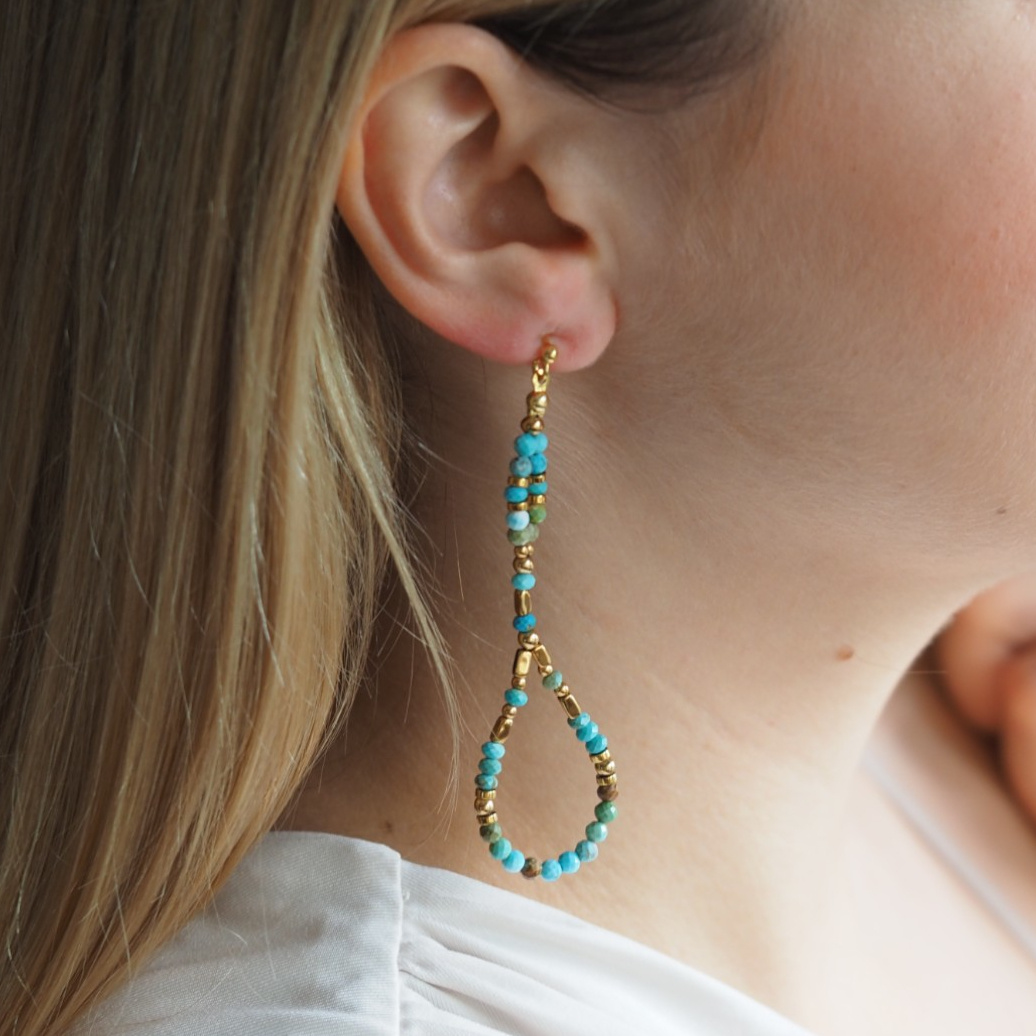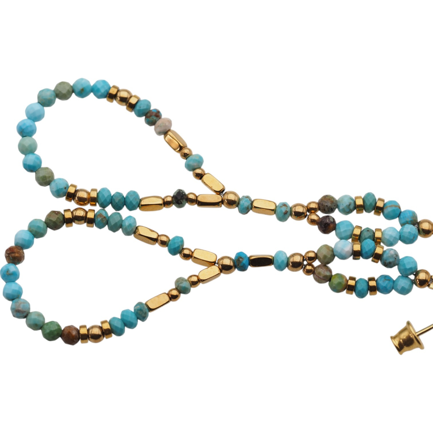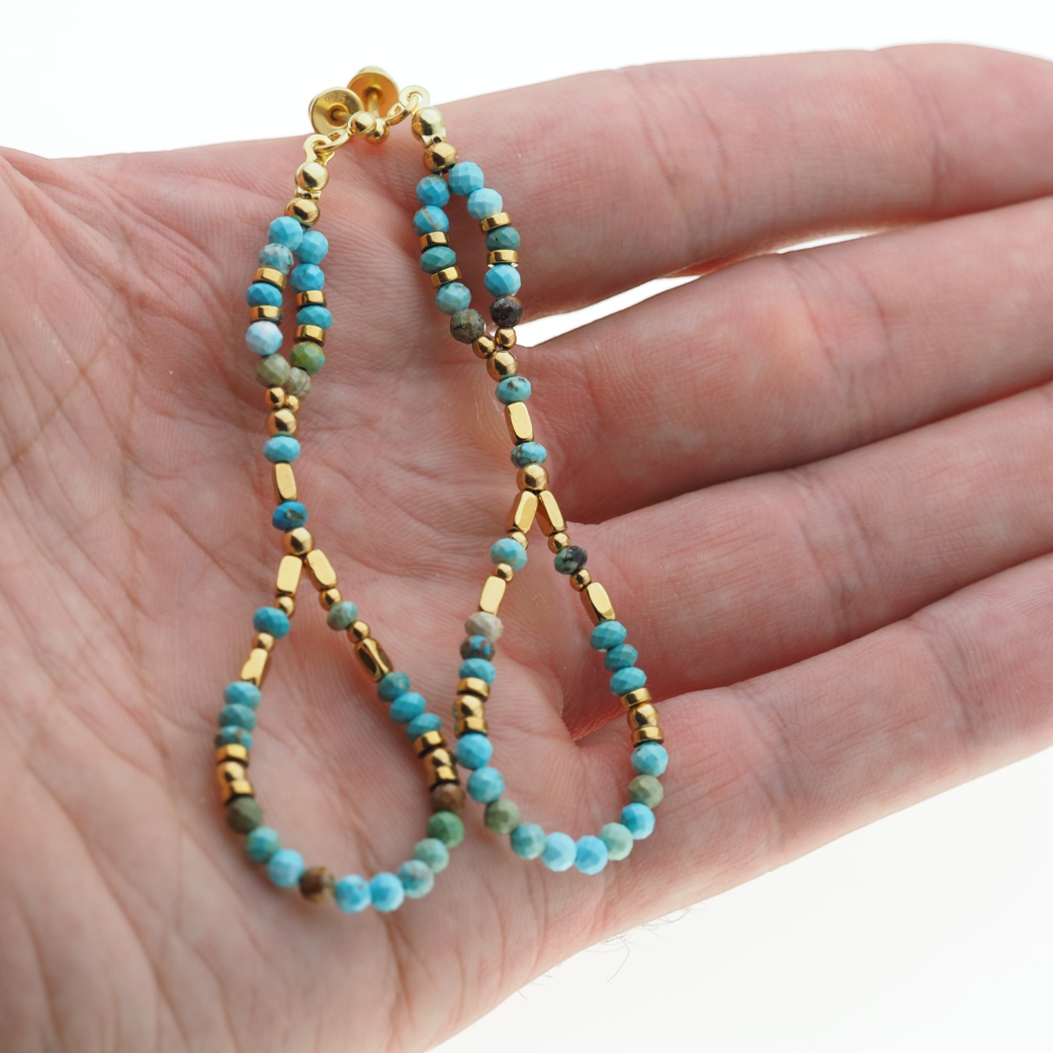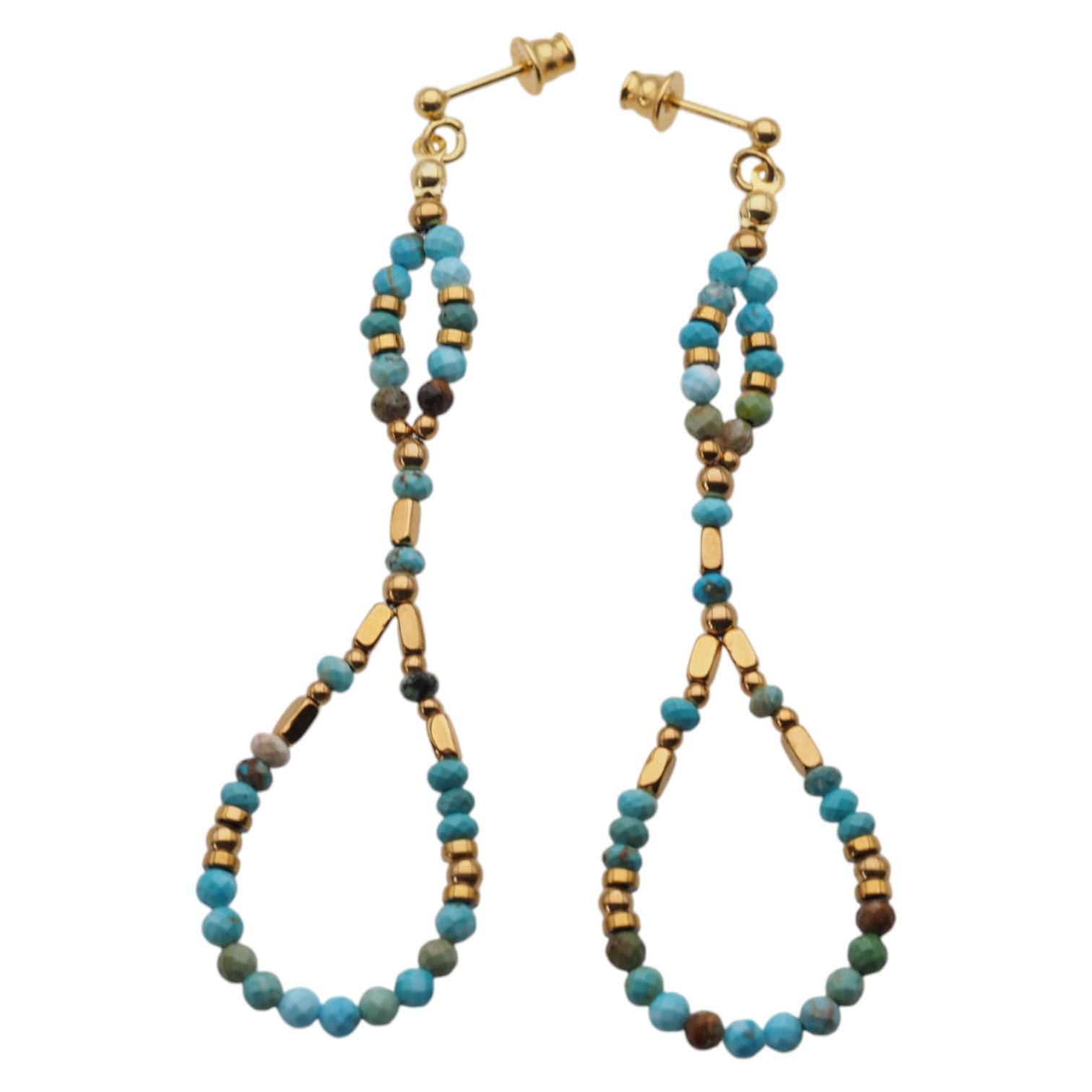 Kolczyki srebrne złocone z Turkusem, złotym Hematytem został wykonany ręcznie.