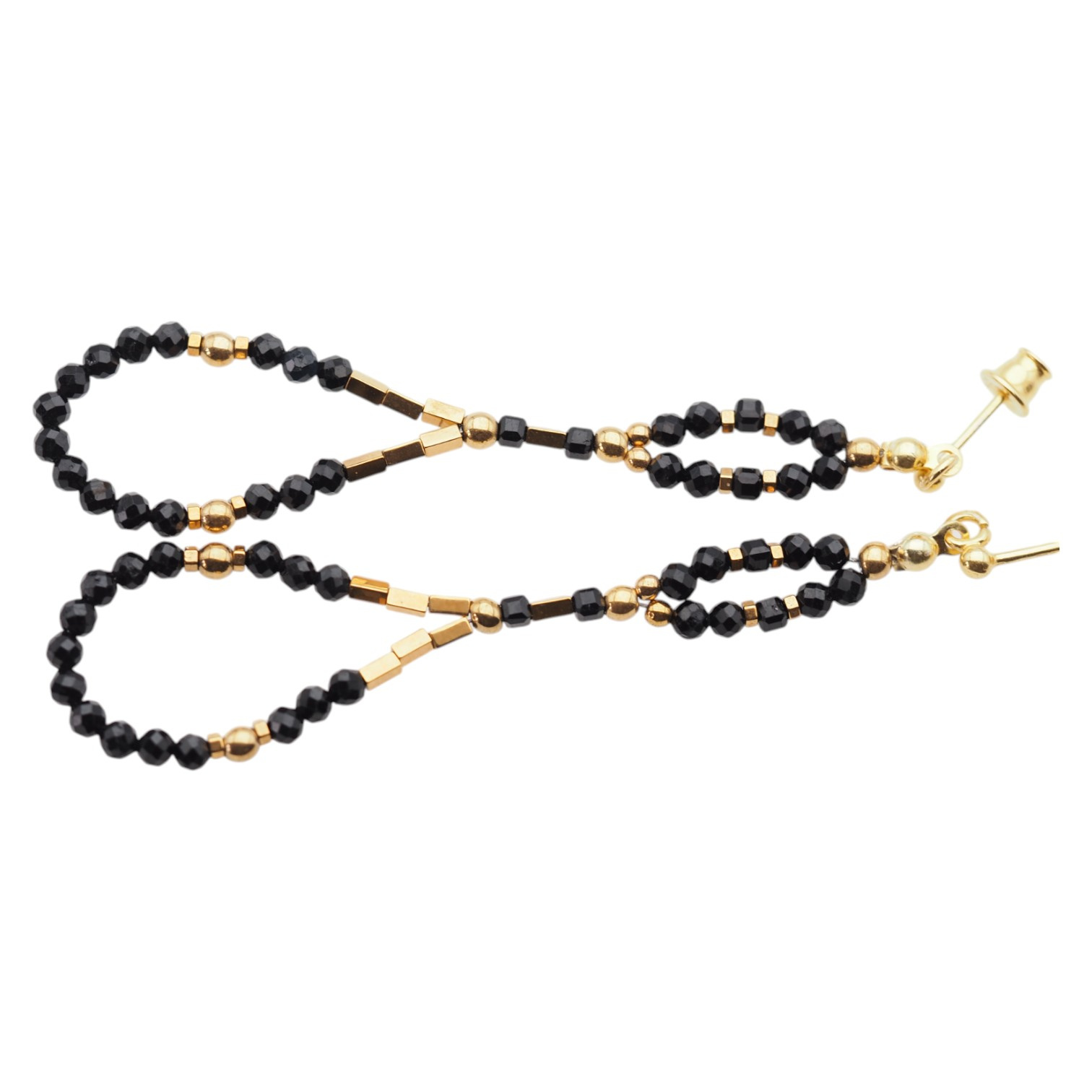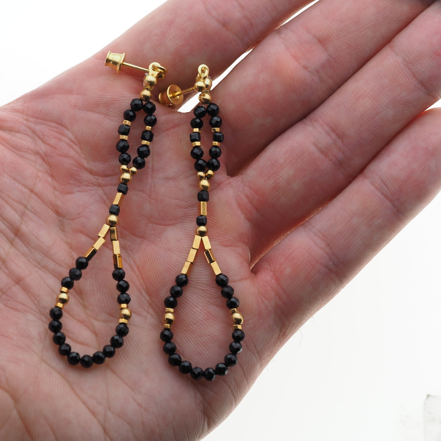 Kolczyki wiszące sztyfty - Turmalin czarny i srebro złocone