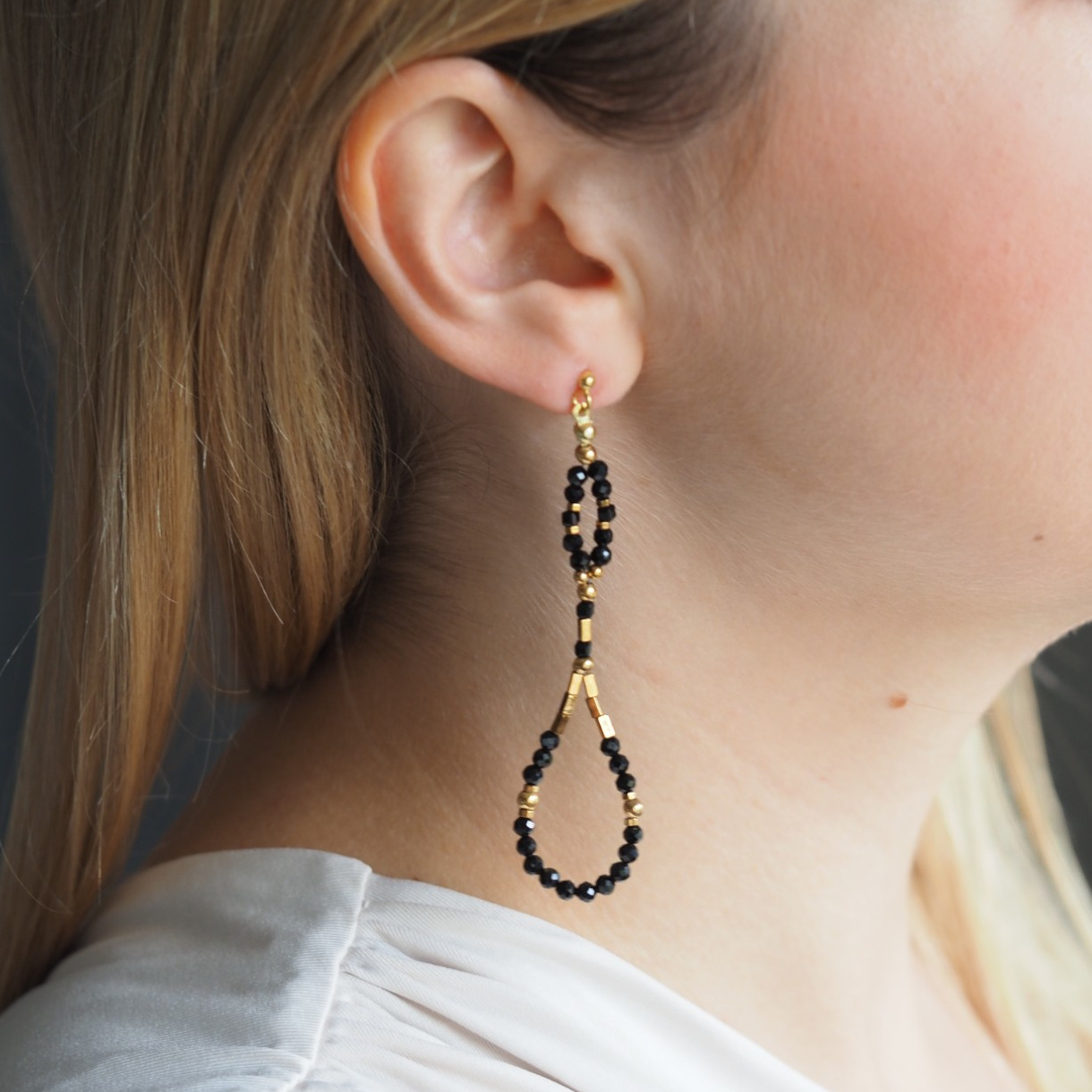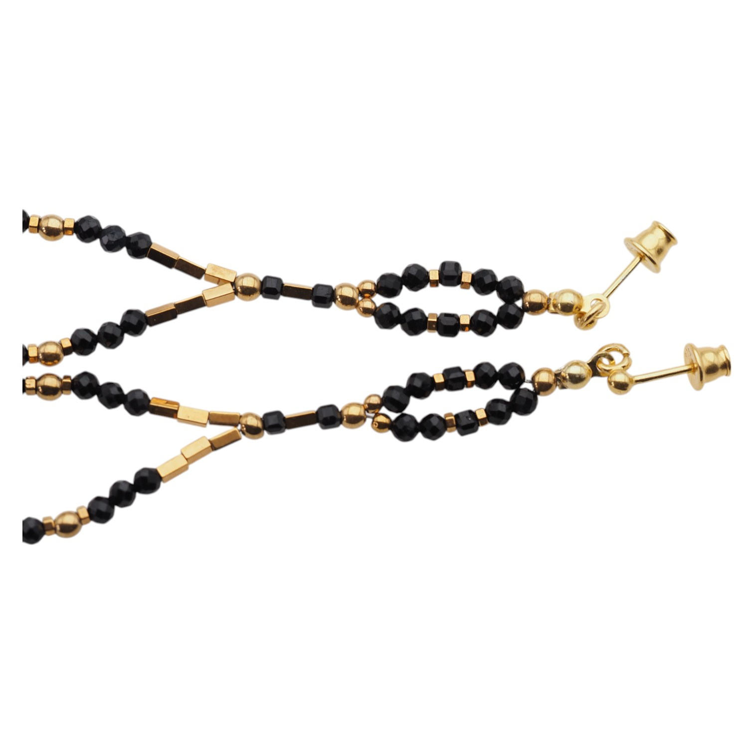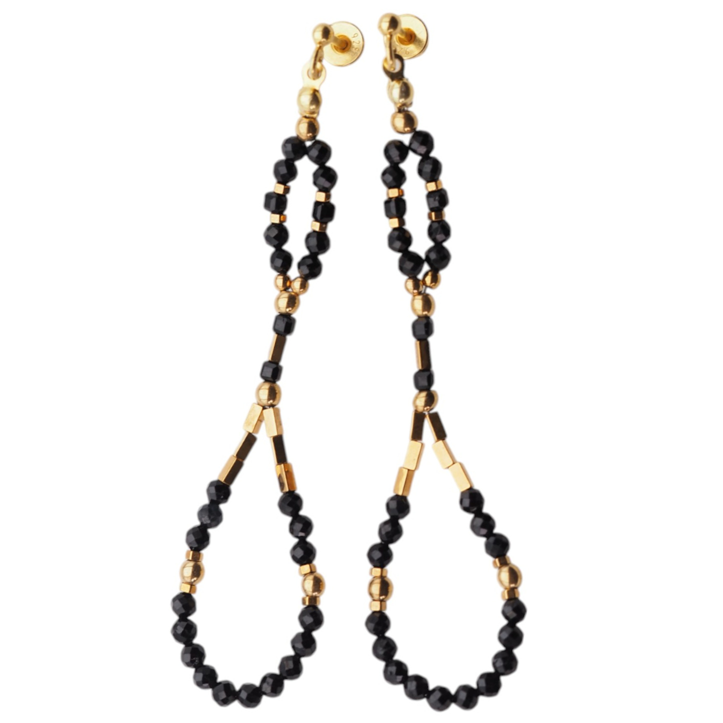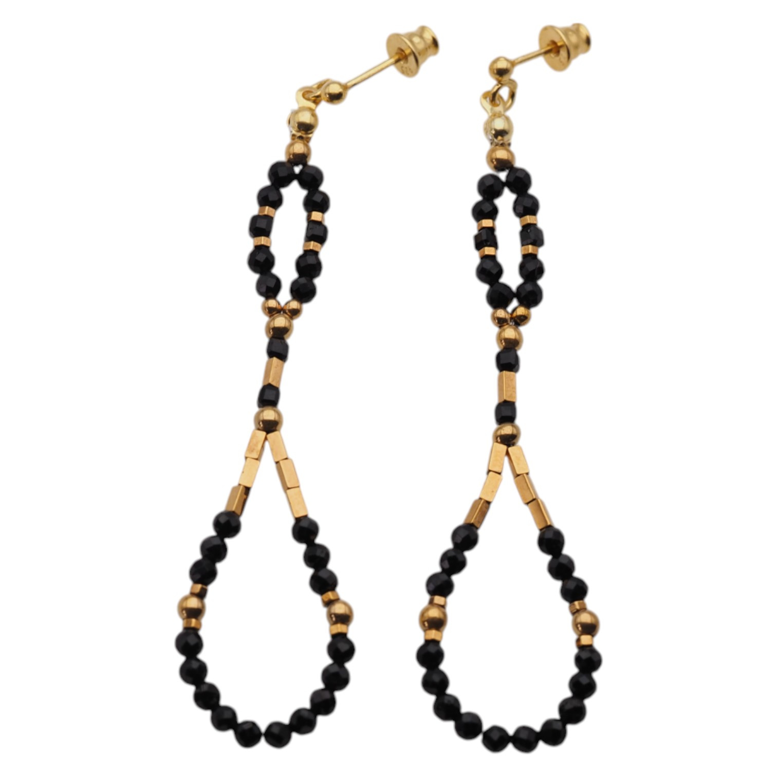 Kolczyki srebrne złocone z czarnym Turmalinem, złotym Hematytem został wykonany ręcznie.