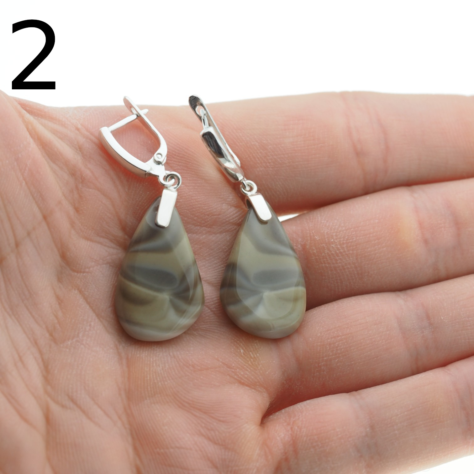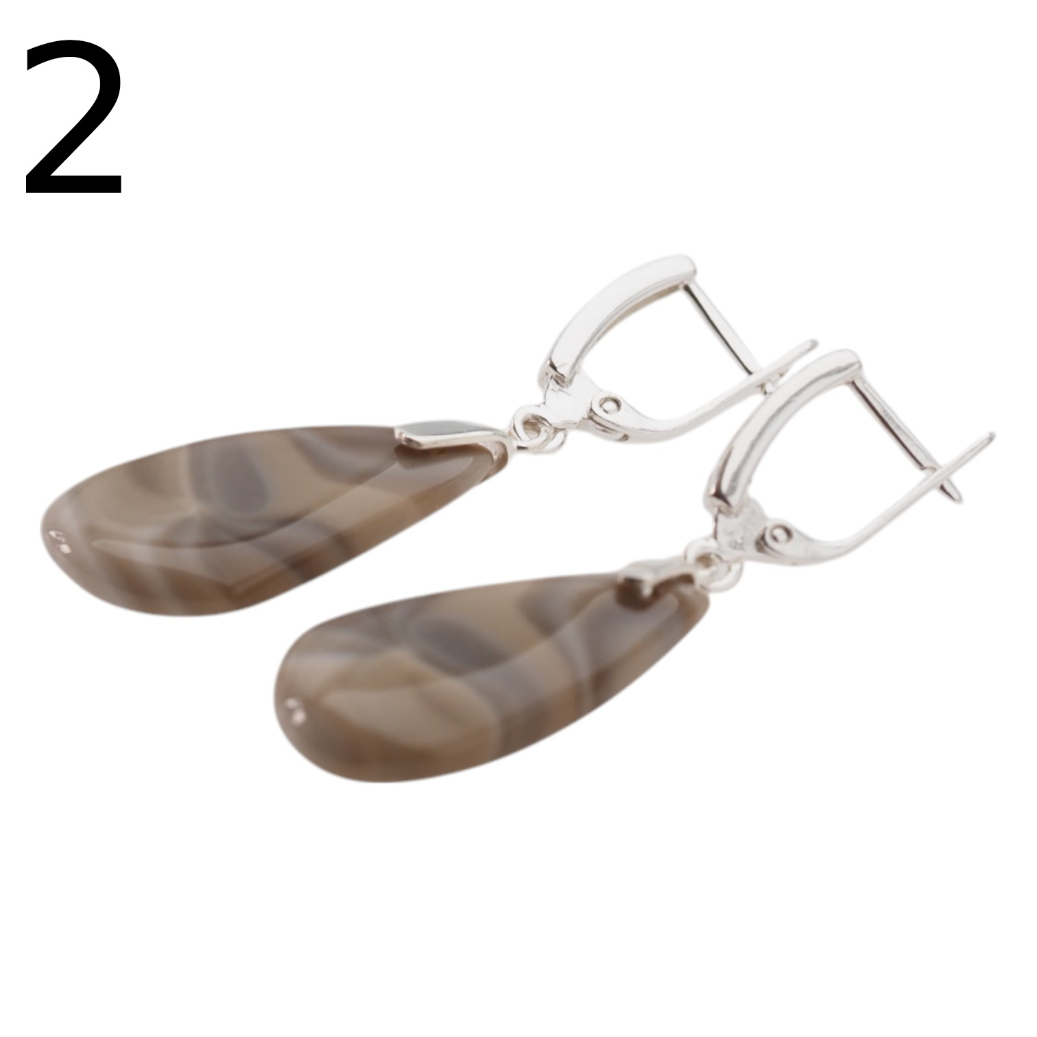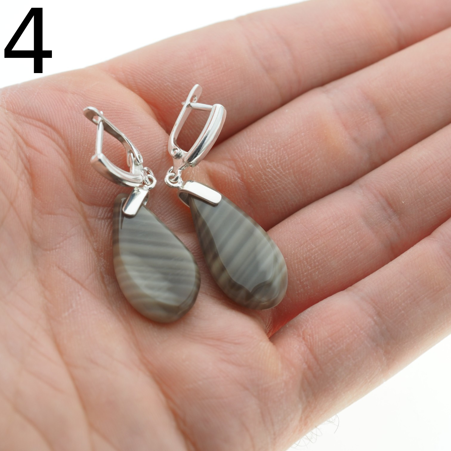 Kolczyki z Krzemieniem Pasiastym - łezki w srebrze