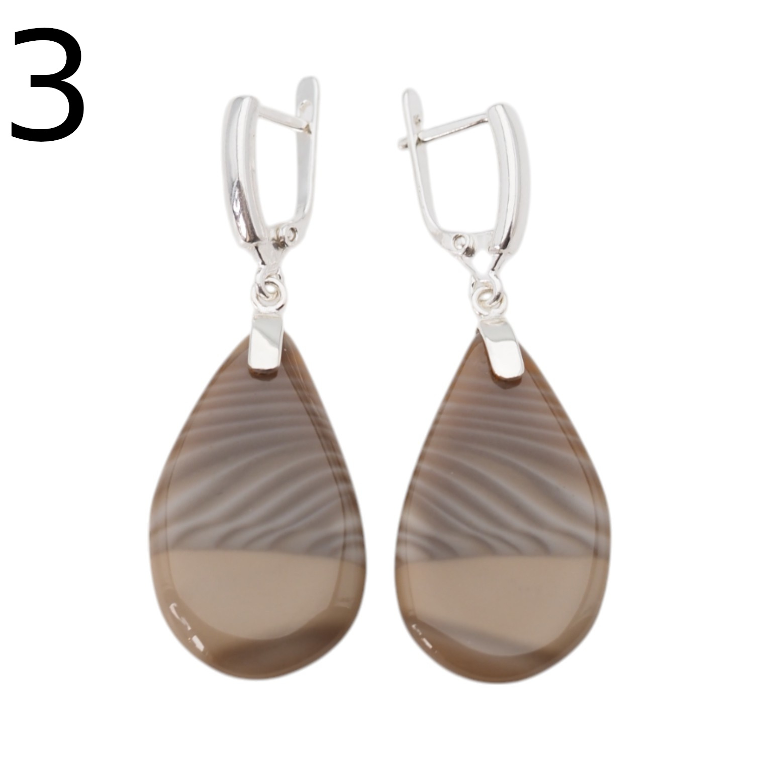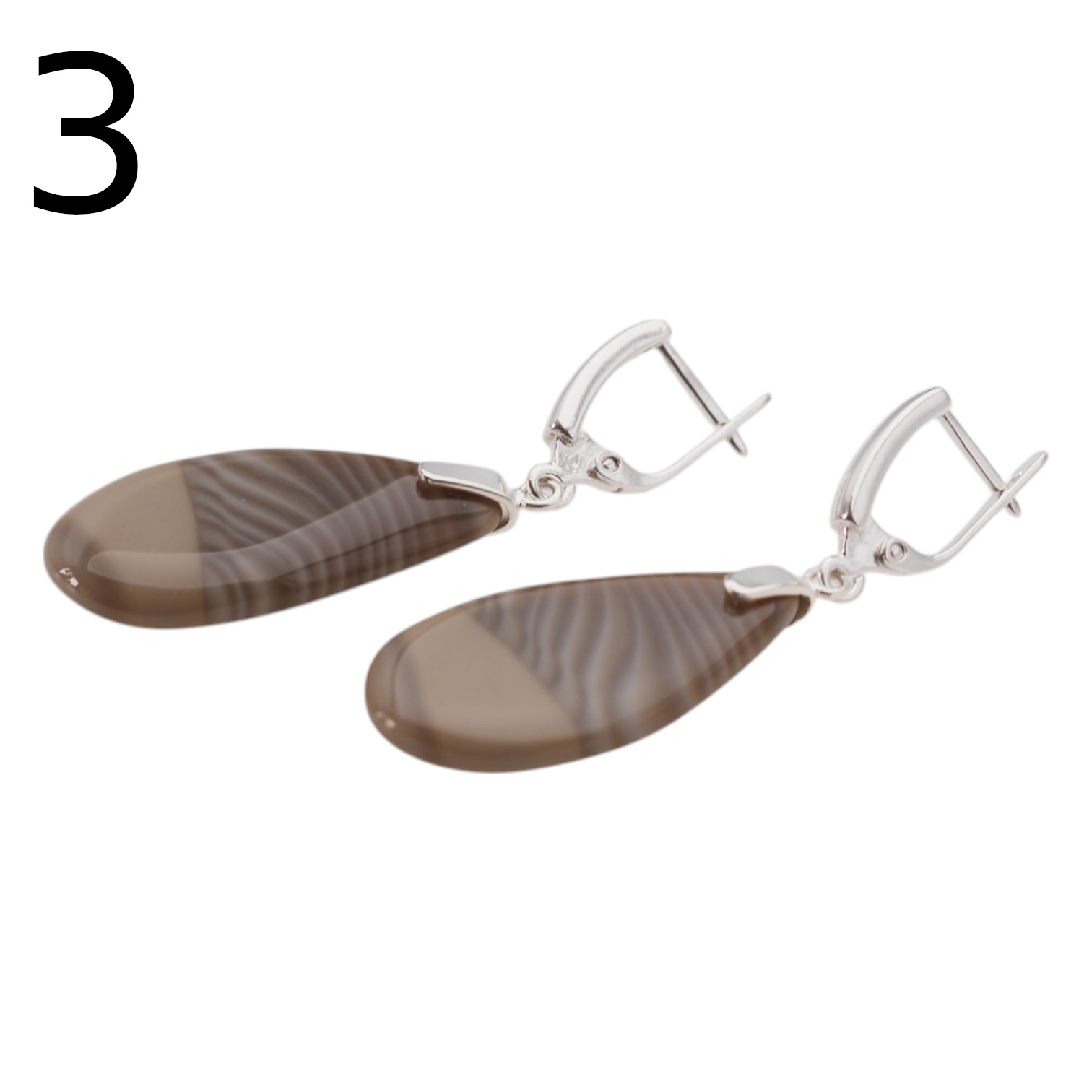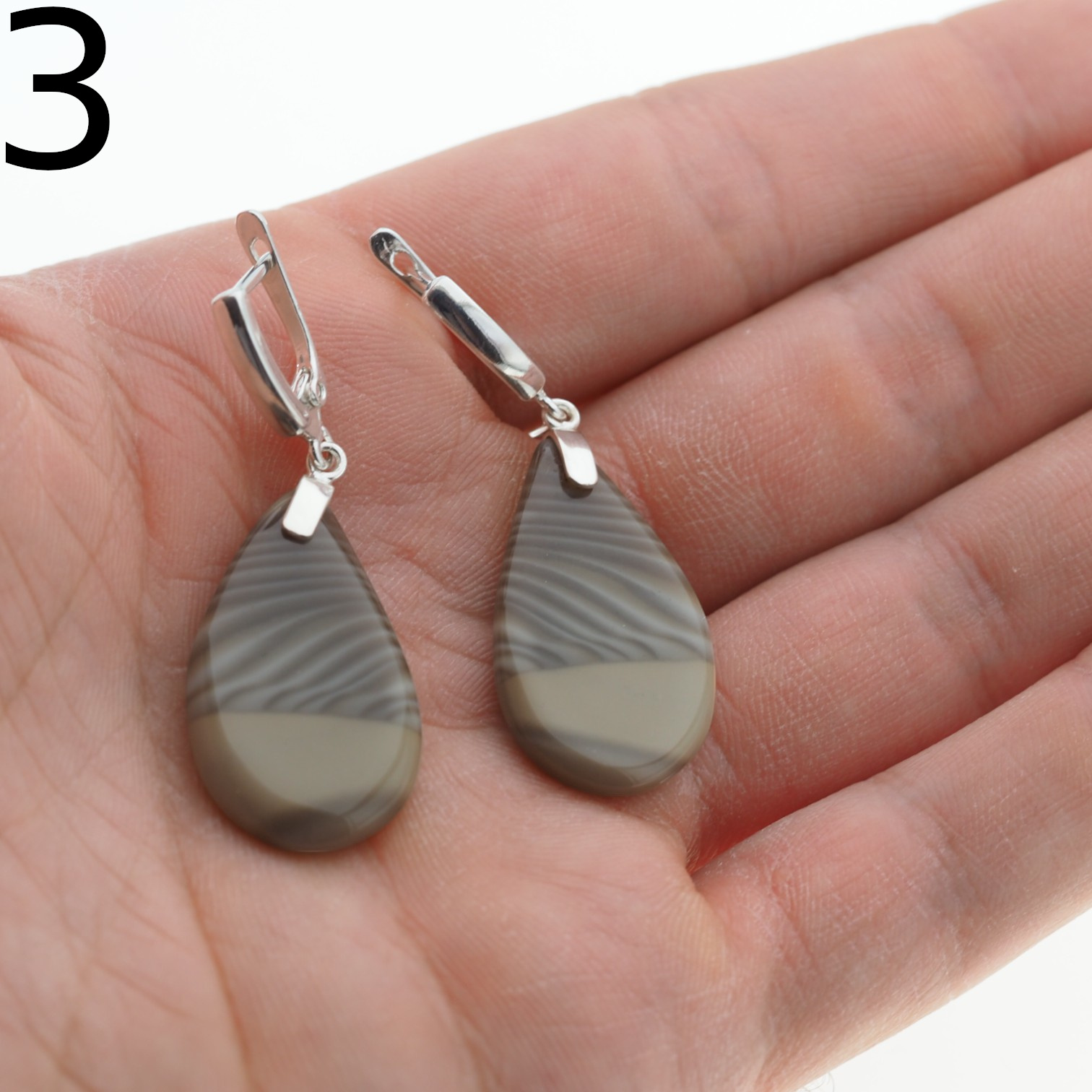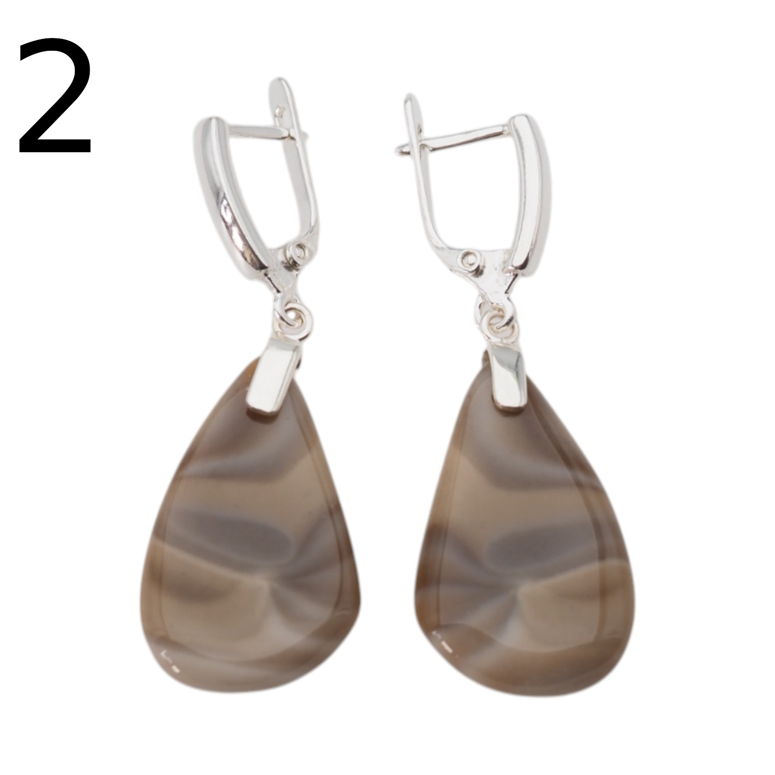 Kolczyki z Krzemieniem Pasiastym - łezki w srebrze
