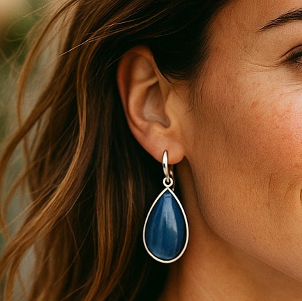 Kolczyki z Kyanitem | Srebro 925 | Ręcznie wykonane | Kształt łzy