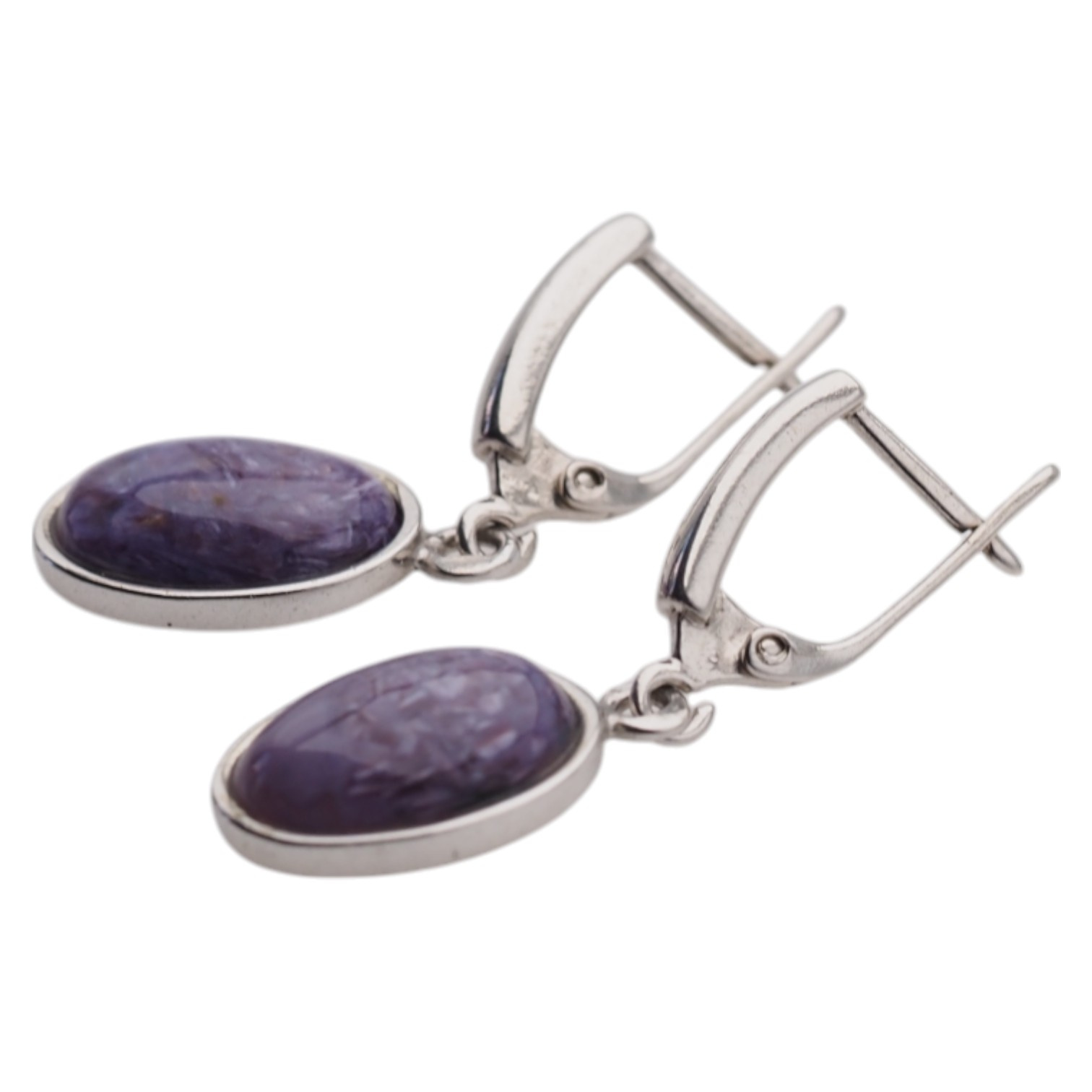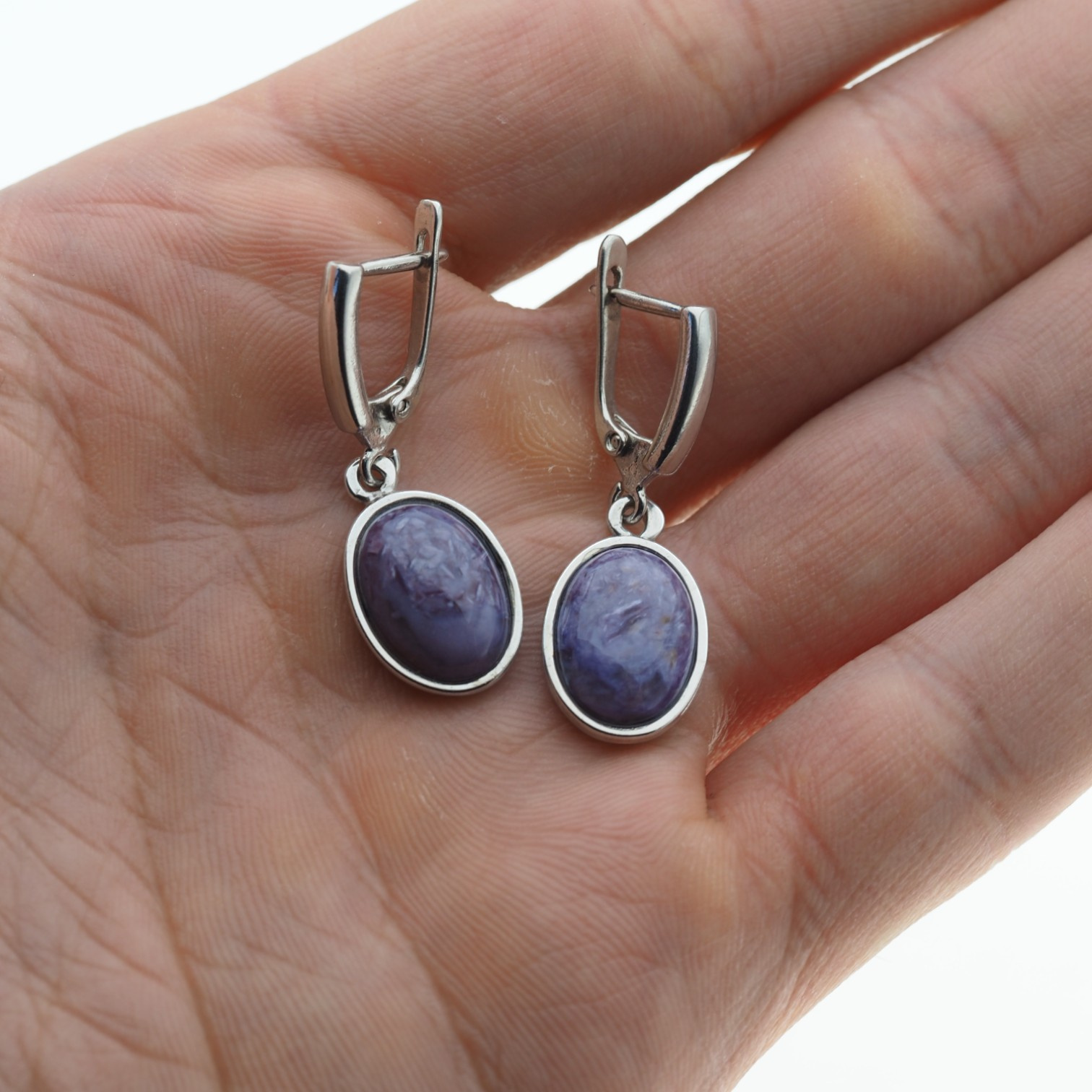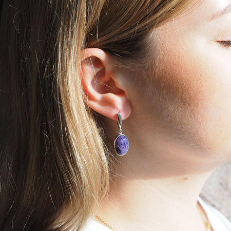 Kolczyki z owalnymi czaroitami w srebrze rodowanym