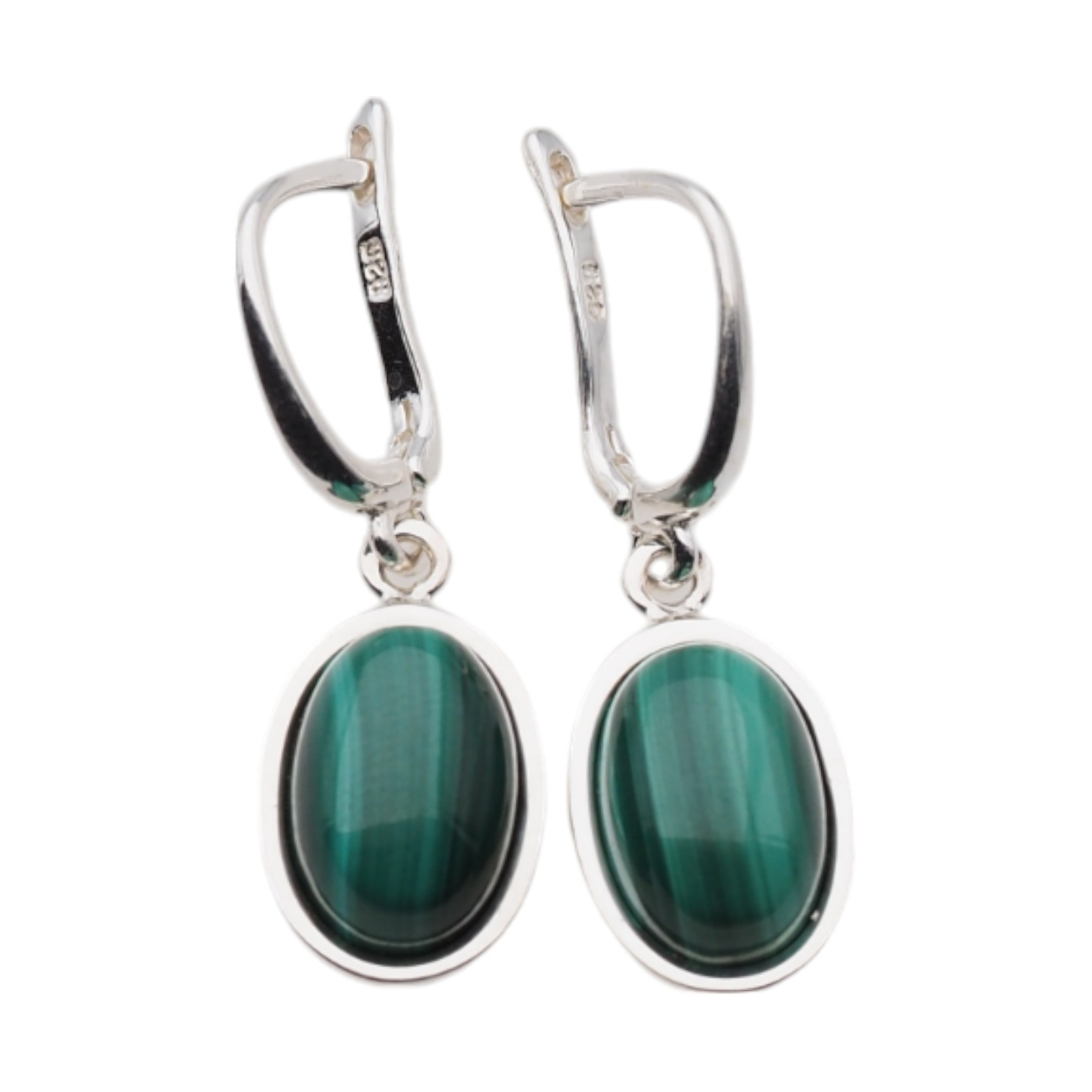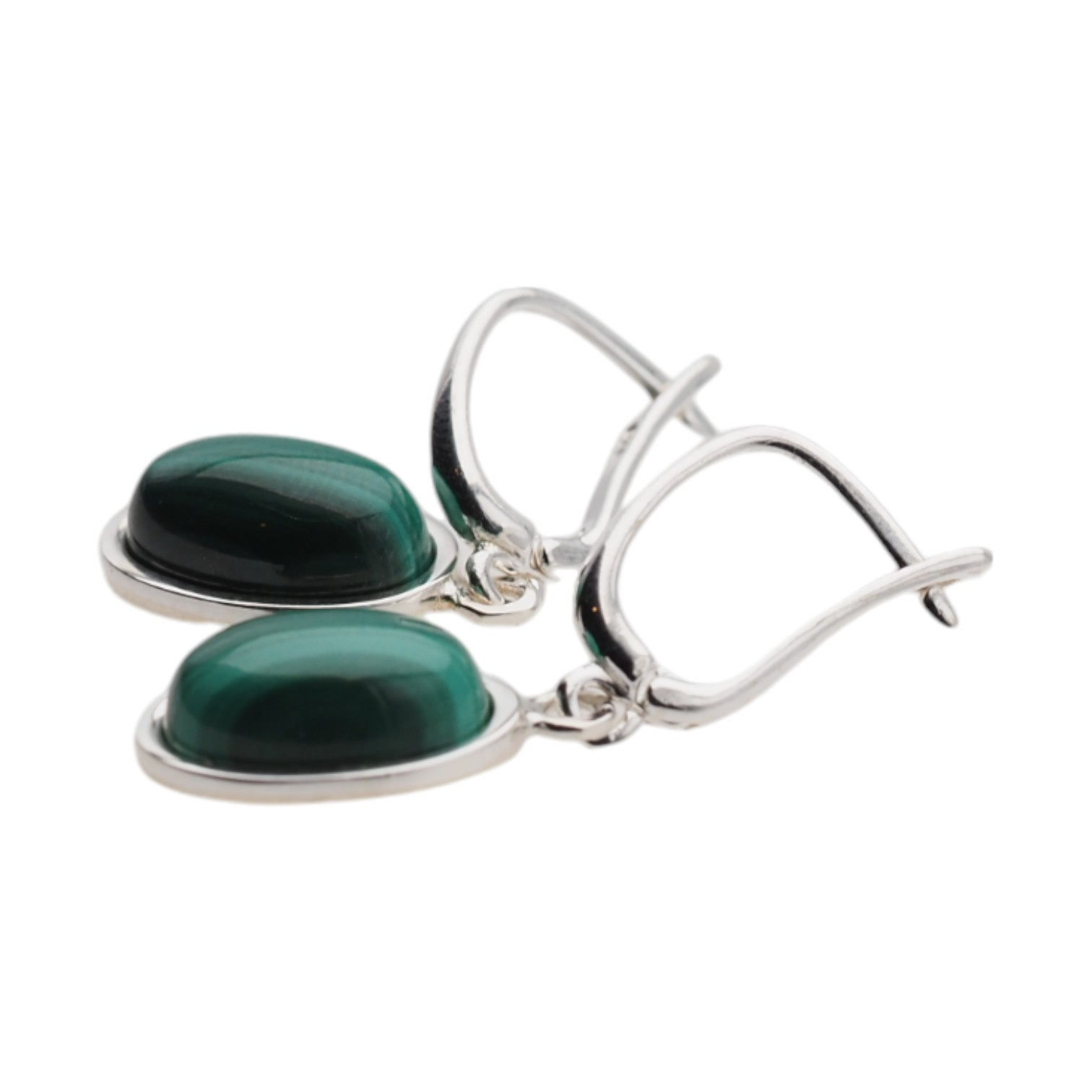 Kolczyki z owalnymi malachitami w srebrze