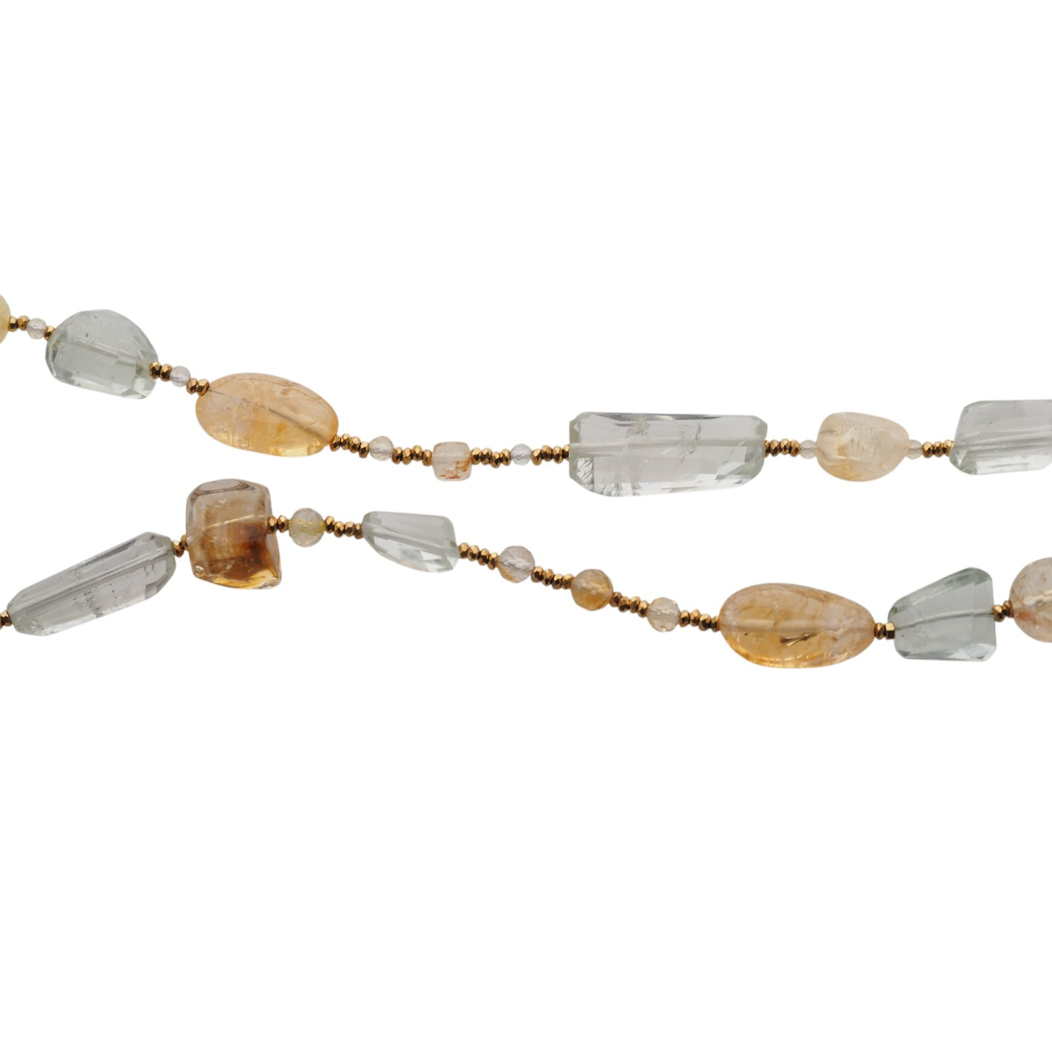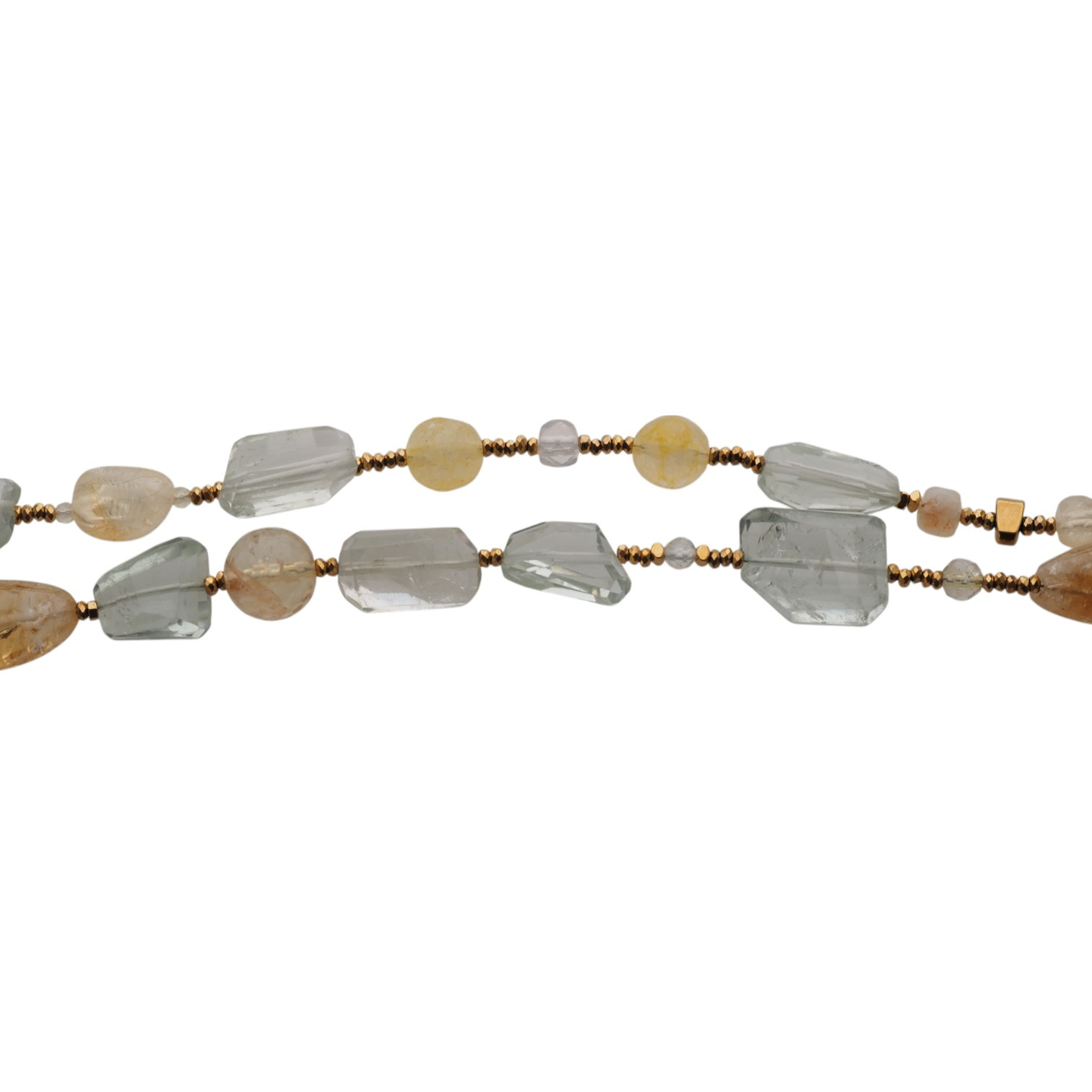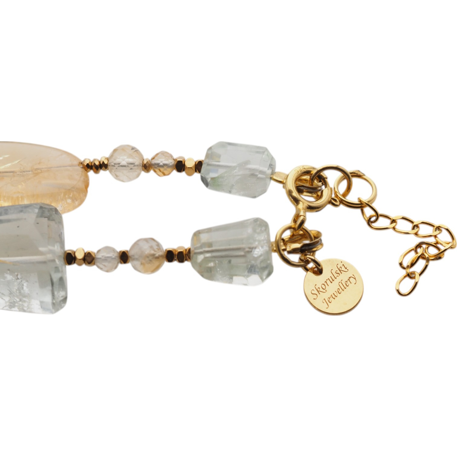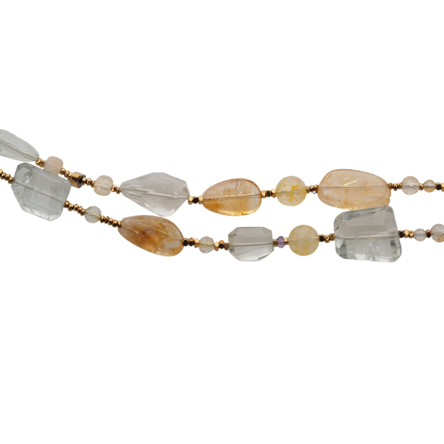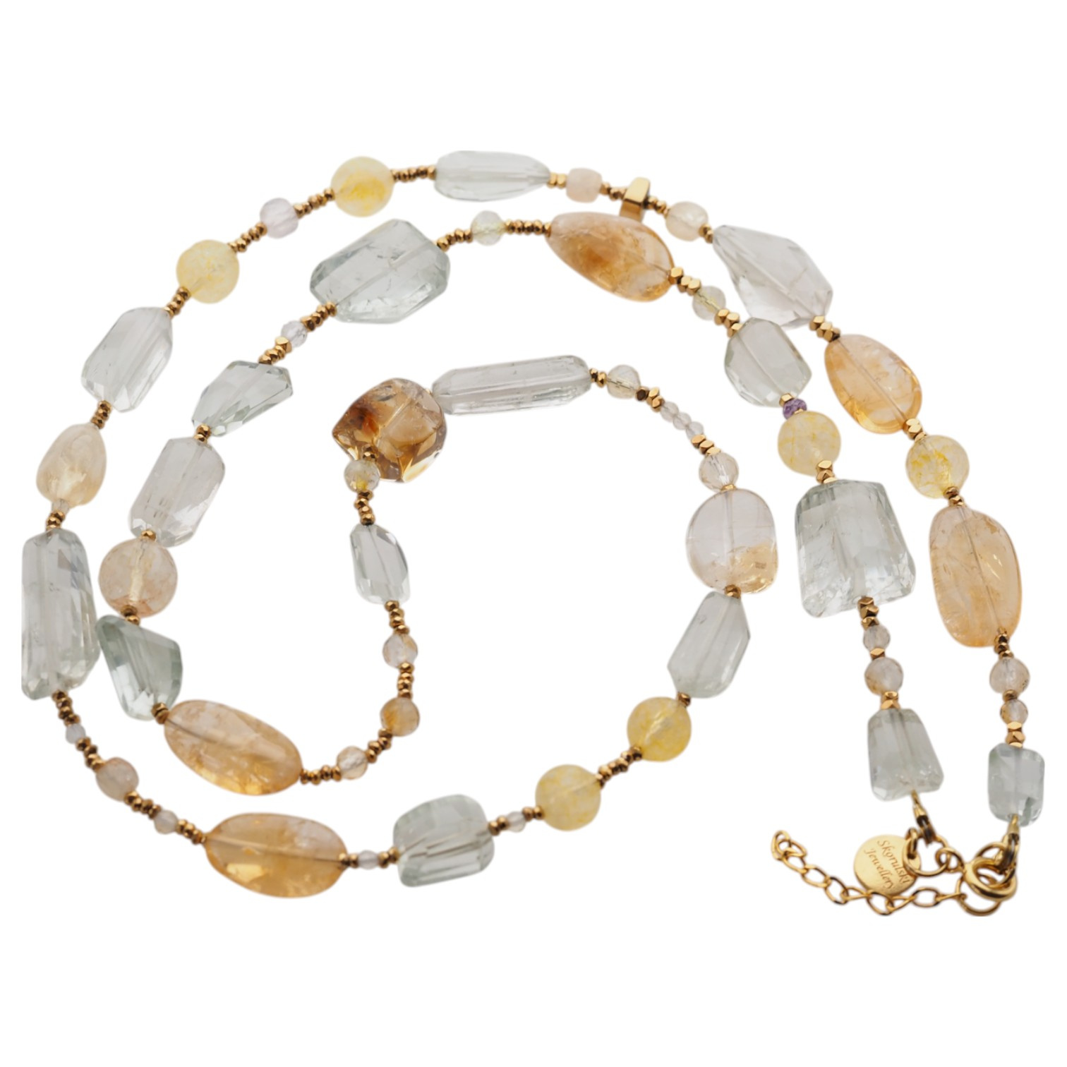 Naszyjnik długi - Cytryn, Ametyst zielony i srebro złocone