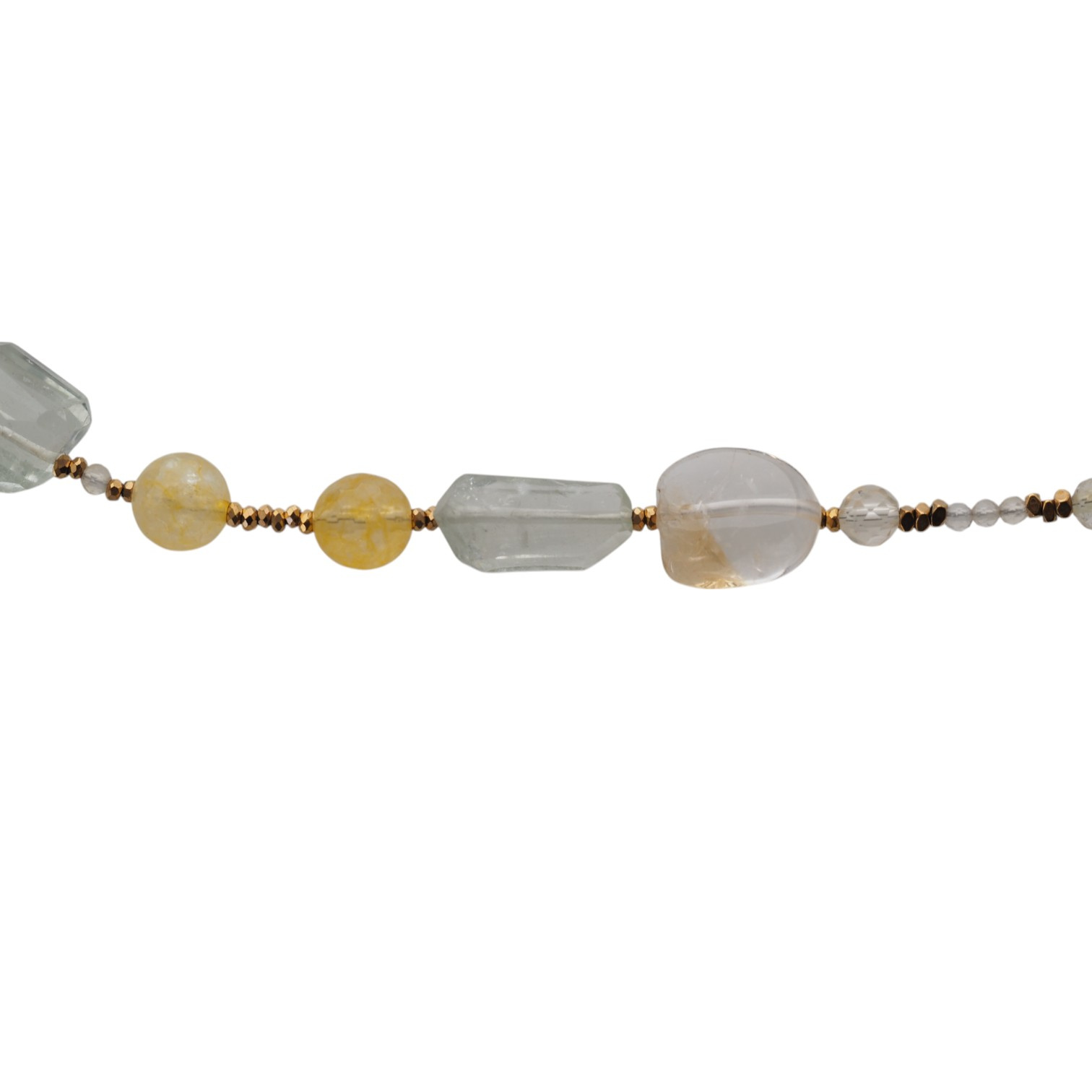 Naszyjnik z Cytrynem, Ametystem zielonym, hematytem został zrobiony ręcznie na lince stalowej.