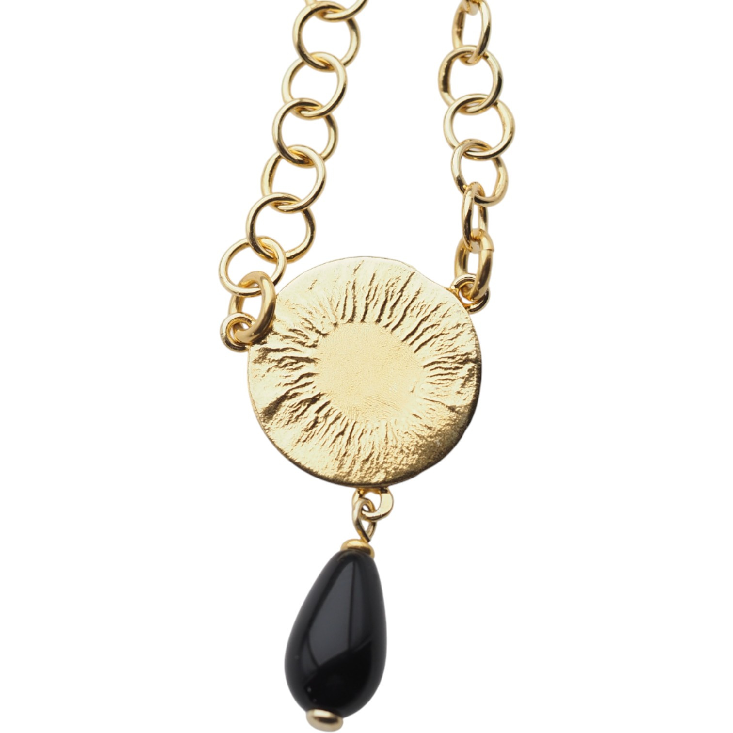 Wyrób składa się z kamieni w kształcie kulek, kropli; złotego Hematytu i elementów srebrnych złoconych.