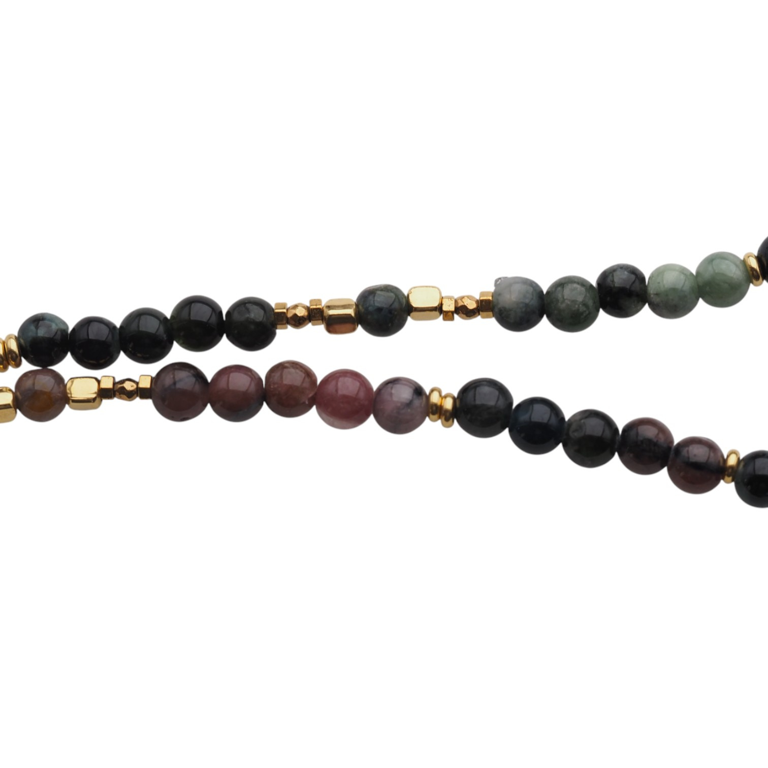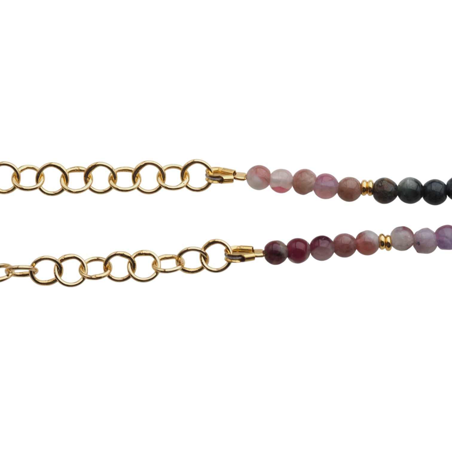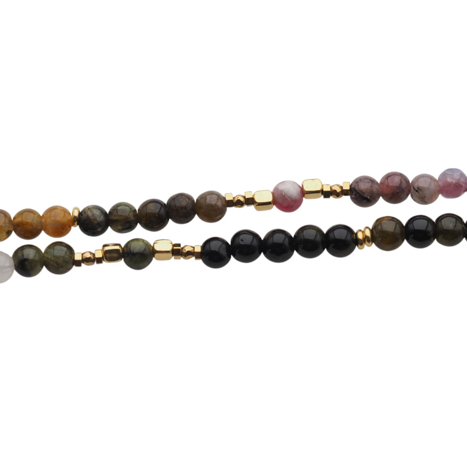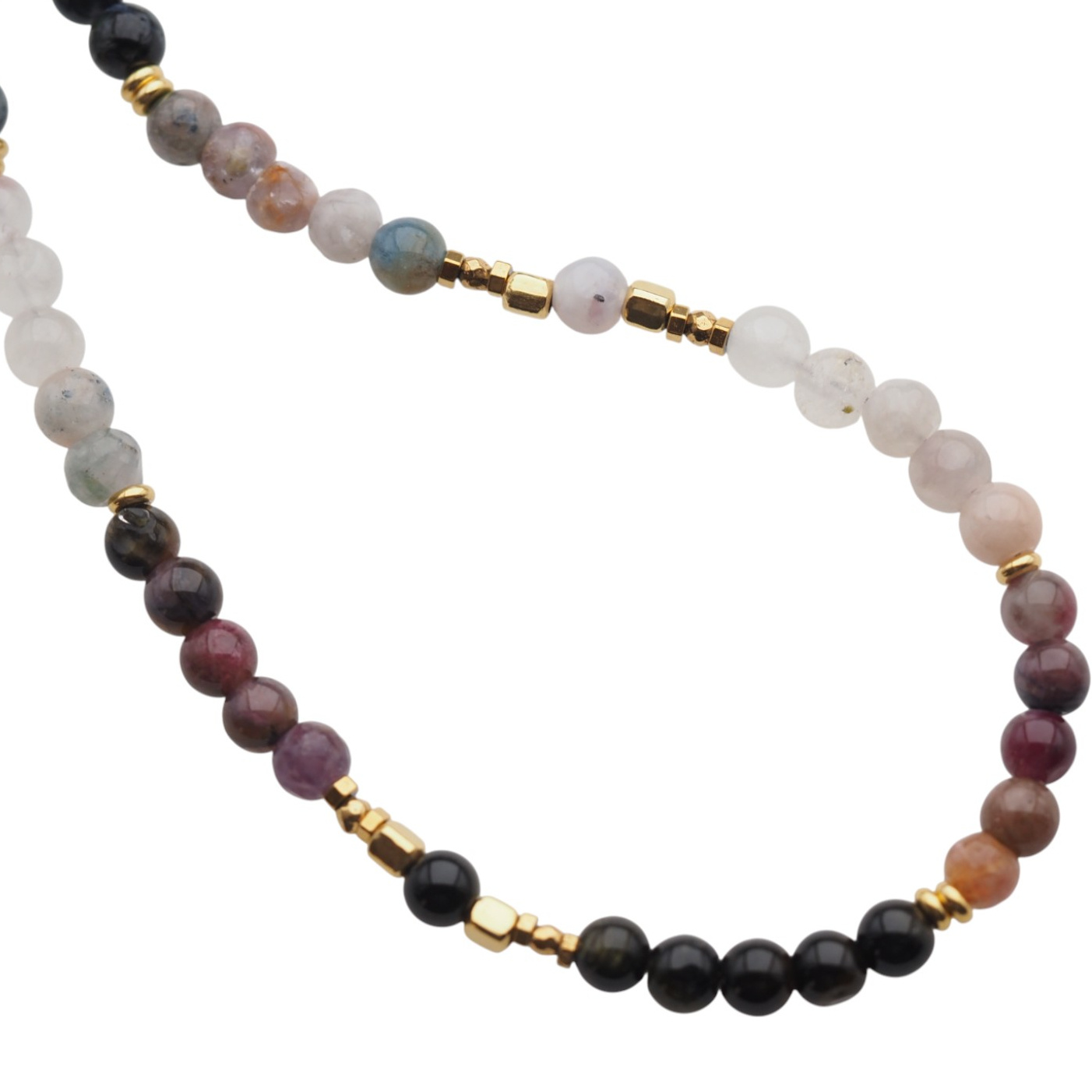 Naszyjnik z Turmalinem kolorowym i czarnym został zrobiony ręcznie na lince stalowej.