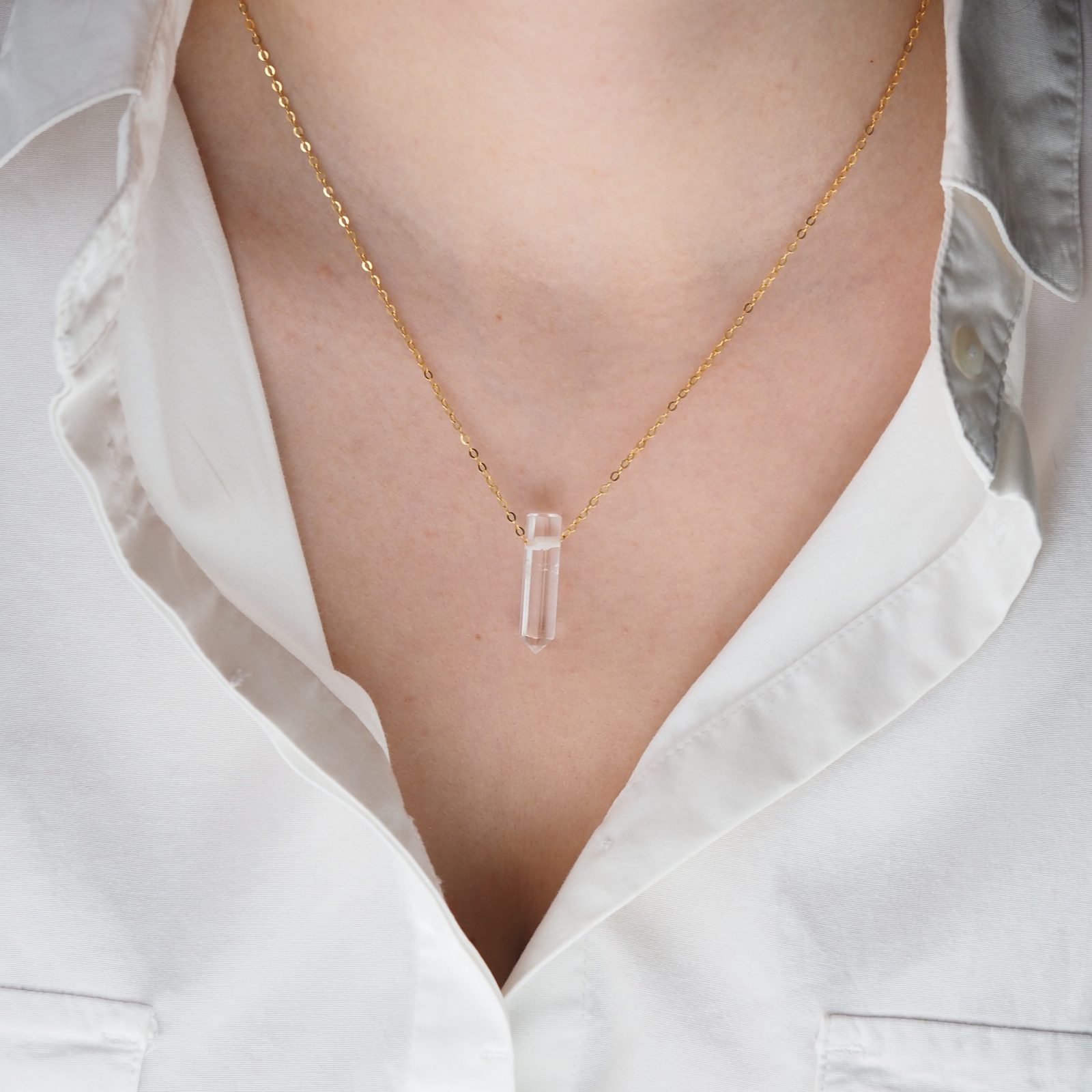 Naszyjnik z Kryształem Górskim - mały sopel (kryształ) na łańcuszku.