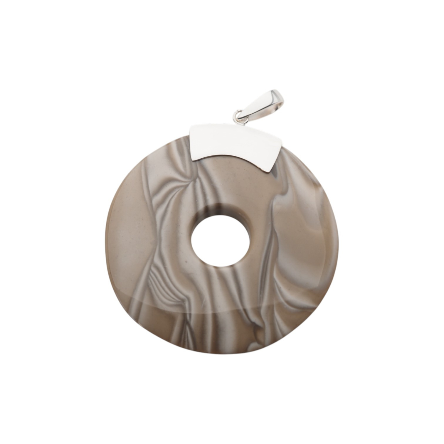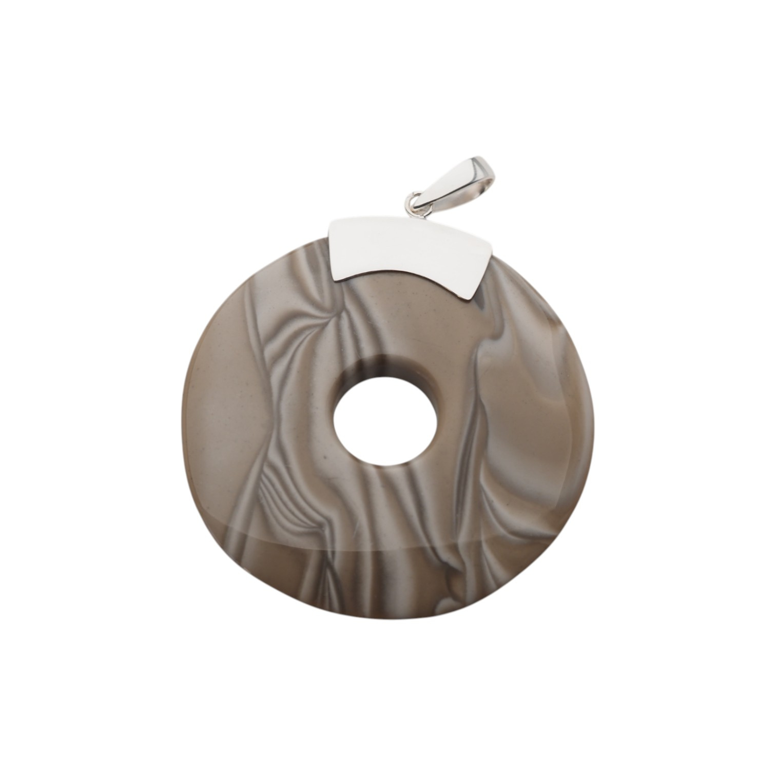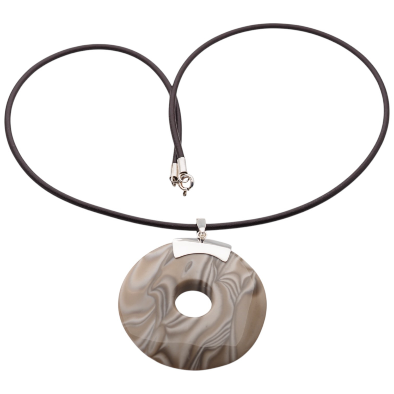 Naszyjnik - Krzemień Pasiasty na naturalnym rzemieniu ze srebrnymi końcówkami.
