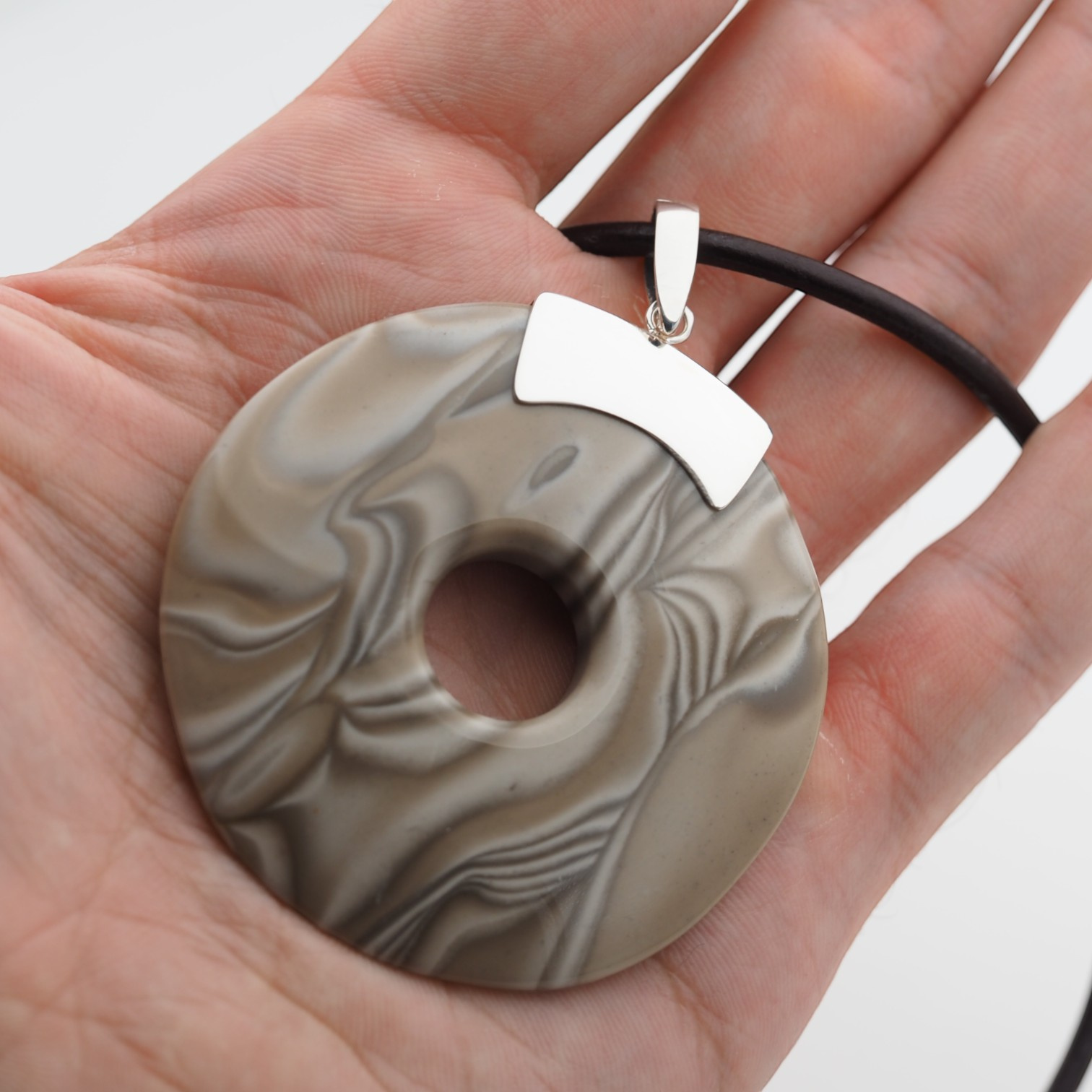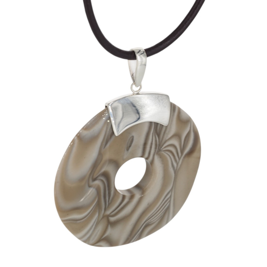 Naszyjnik - Krzemień Pasiasty na rzemieniu ze srebrnymi końcówkami
