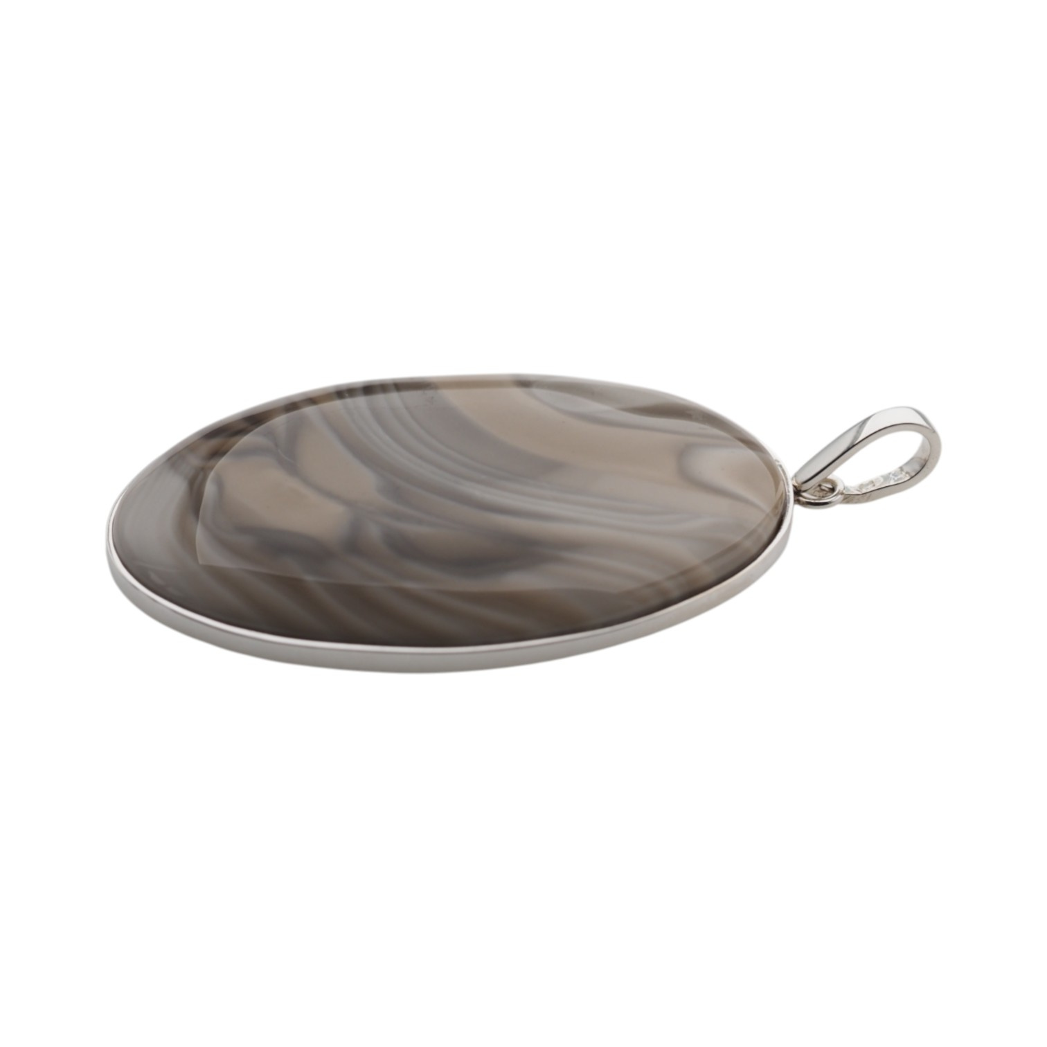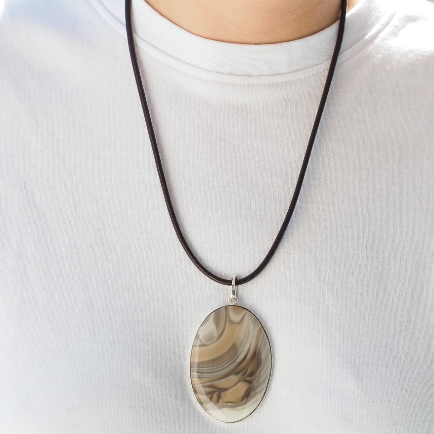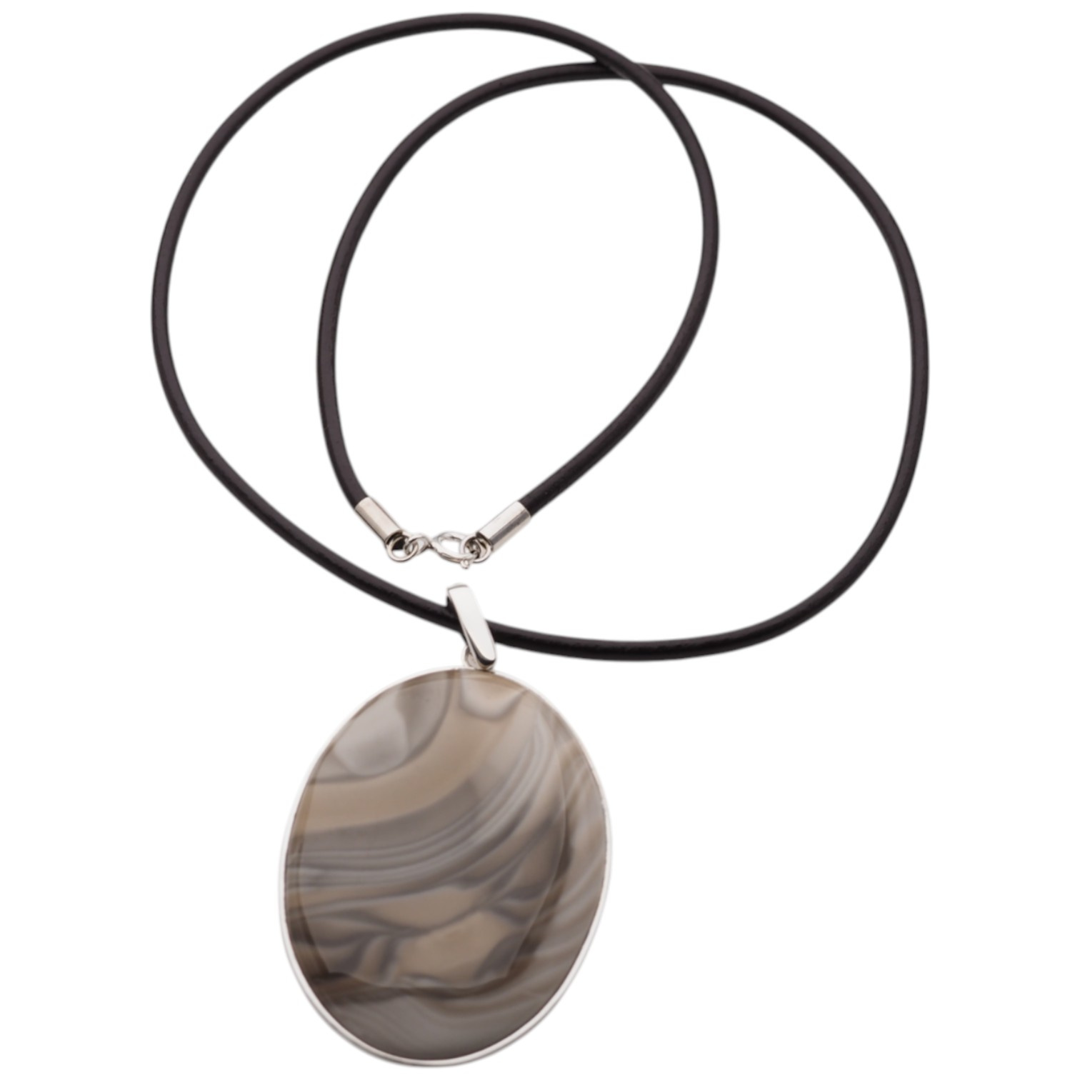 Naszyjnik - Krzemień Pasiasty owal na rzemieniu ze srebrnymi końcówkami