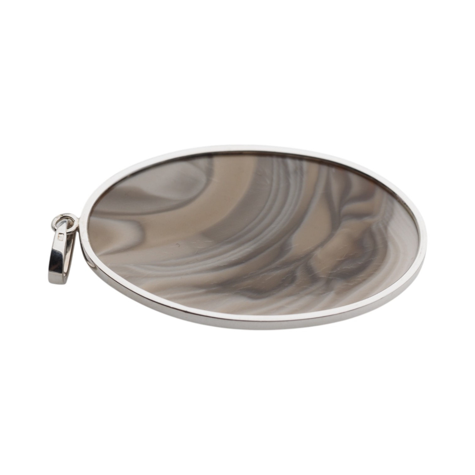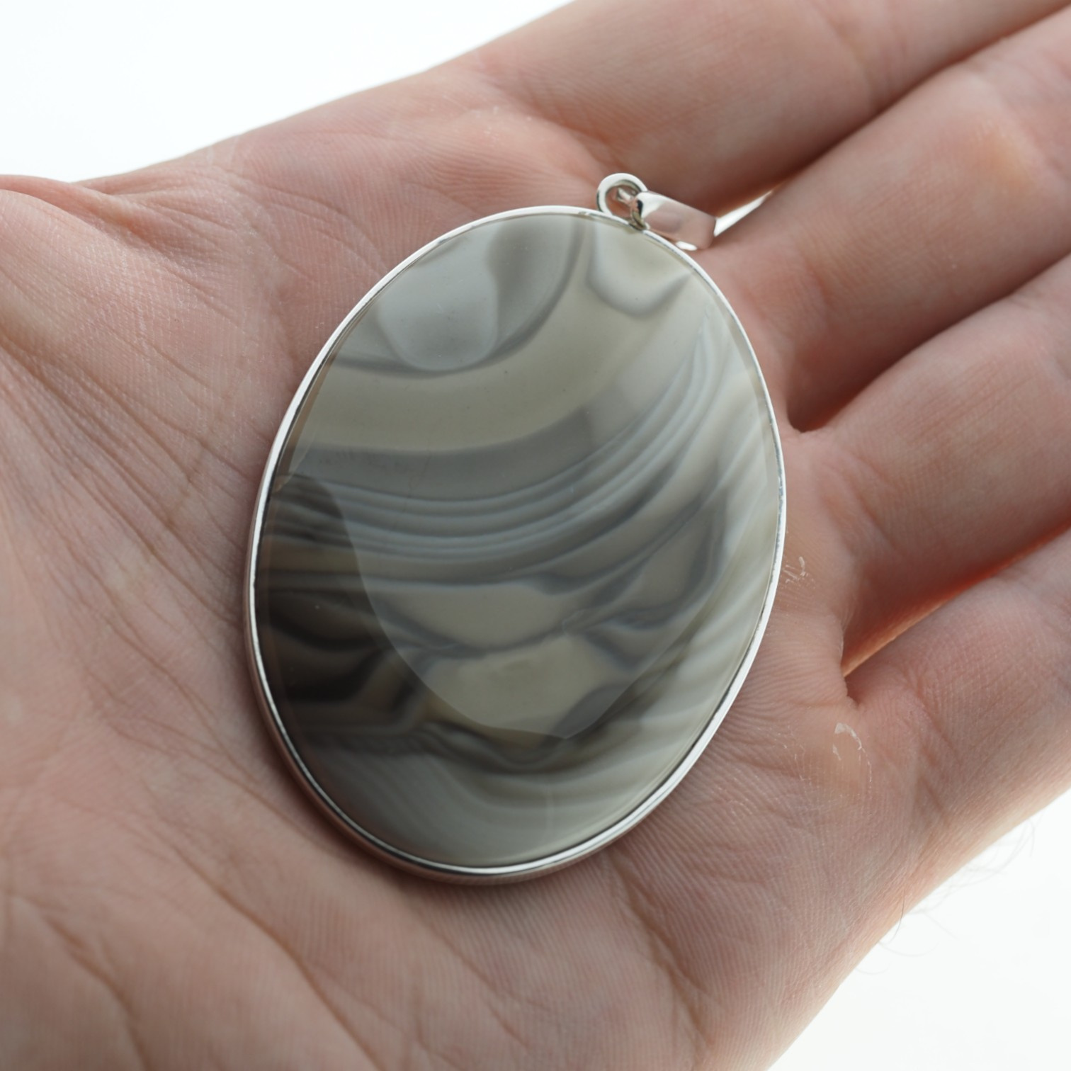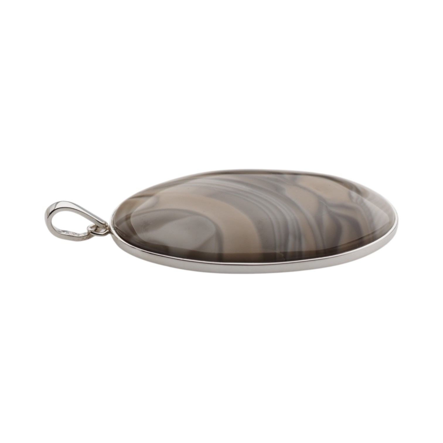 Naszyjnik - Krzemień Pasiasty owal na rzemieniu ze srebrnymi końcówkami