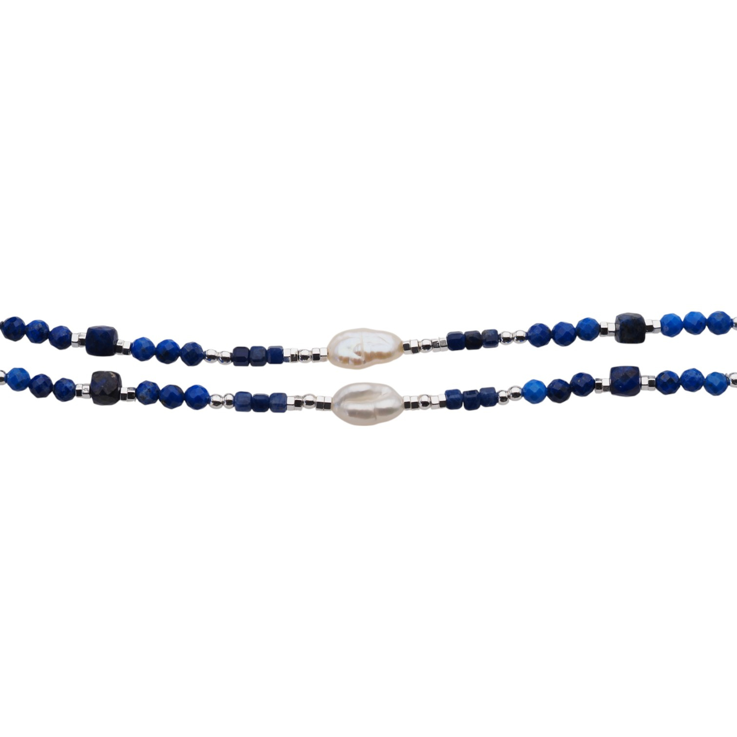 Naszyjnik - Lapis Lazuli, Perła, Hematyt i srebro