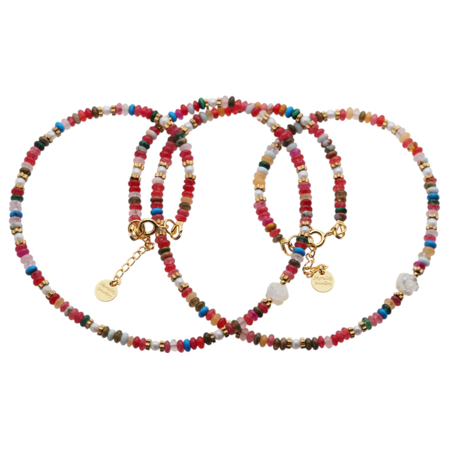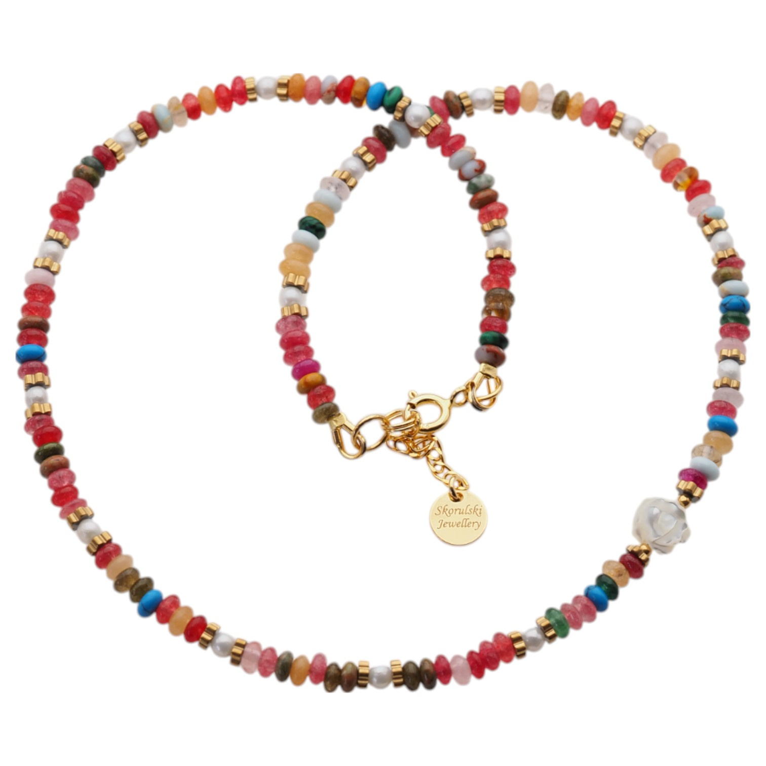Naszyjnik z mixem kamieni naturalnych | Srebro pozłacane 925 | Ręczna robota