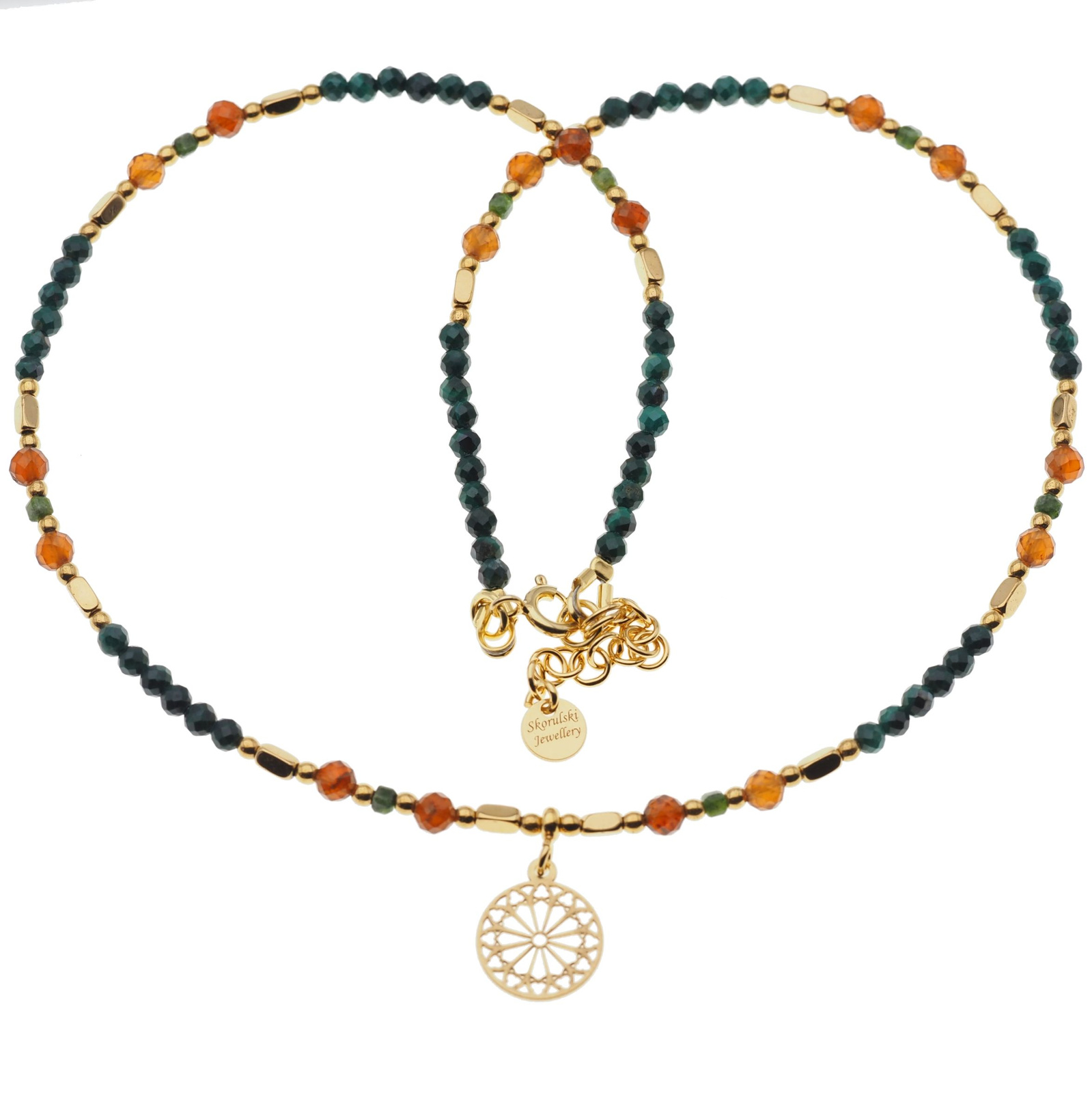 Naszyjnik mix - Malachit, Granat brązowy, Hematyt i srebro złocone