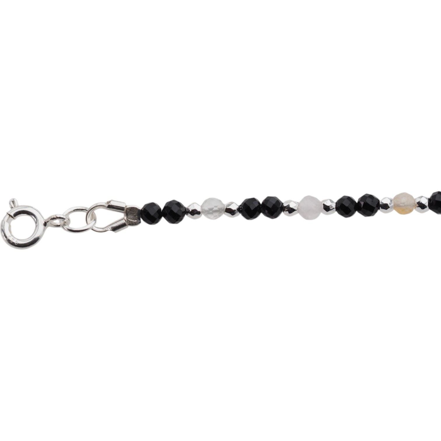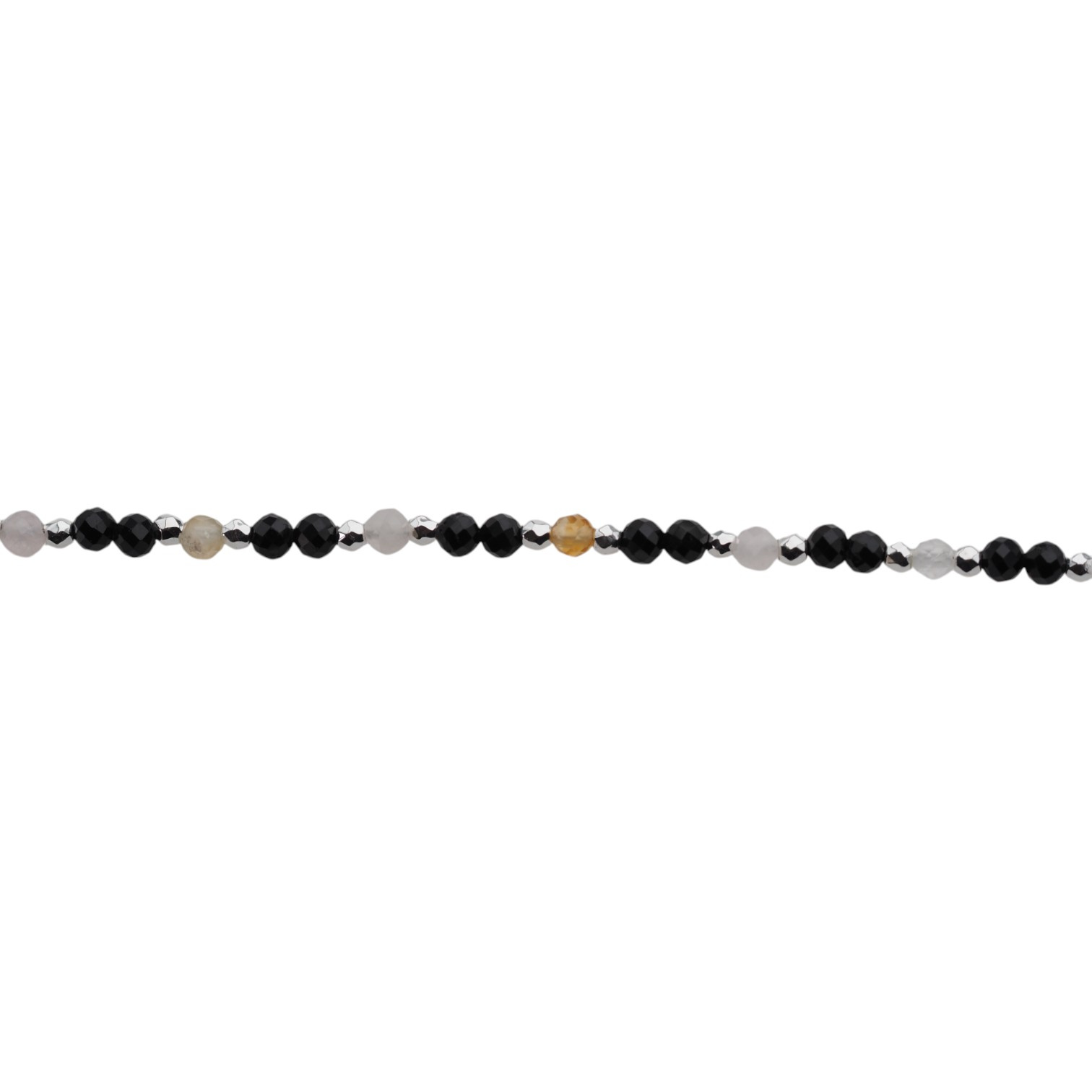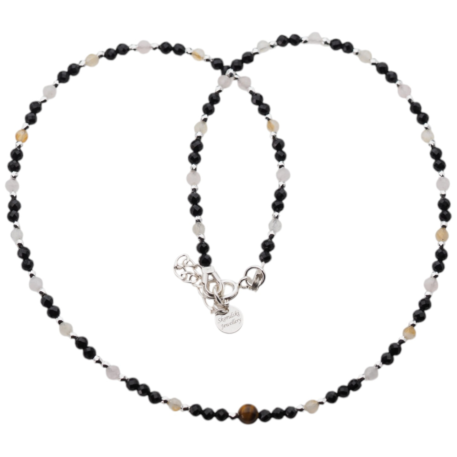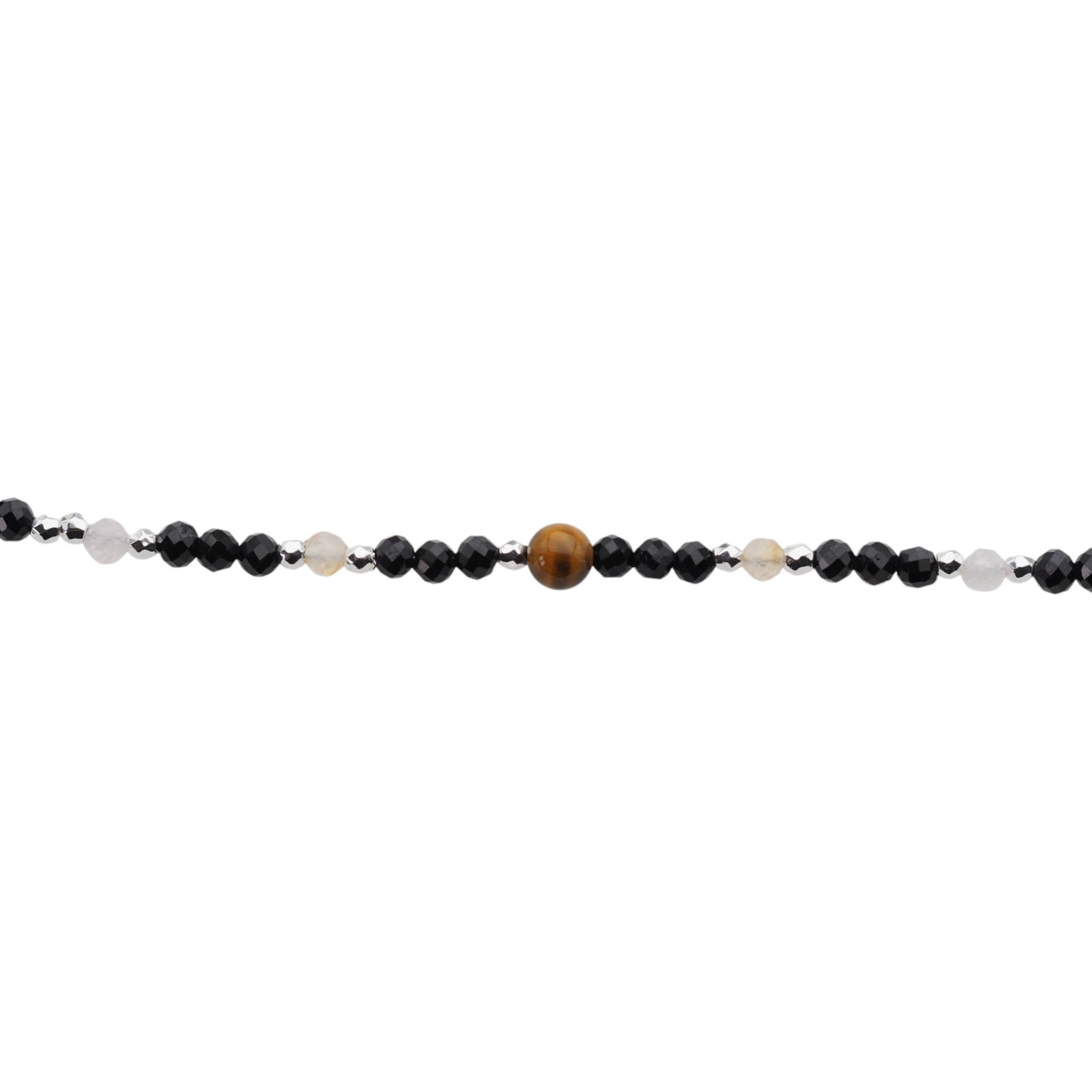 Naszyjnik z Tygrysim Okiem, czarnym Turmalinem, Cytrynem, Kwarcem Różowym i Hematytem został wykonany ręcznie na lince stalowej.