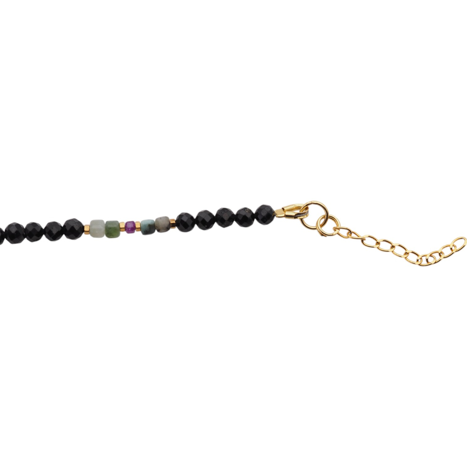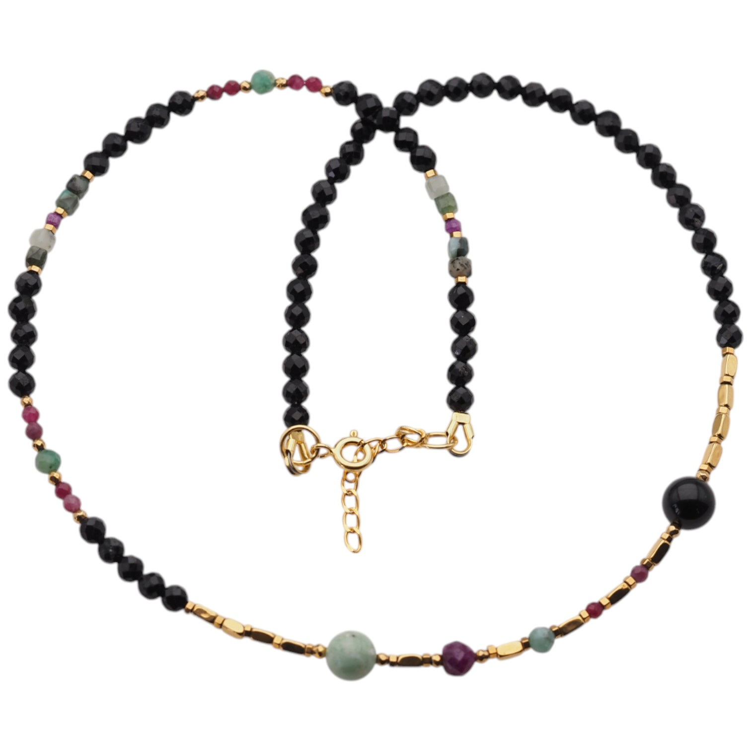 Naszyjnik ze Szmaragdem, czarnym Turmalinem, Rubinem i złotym Hematytem | Srebro pozłacane 24K | Ręcznie wykonany
