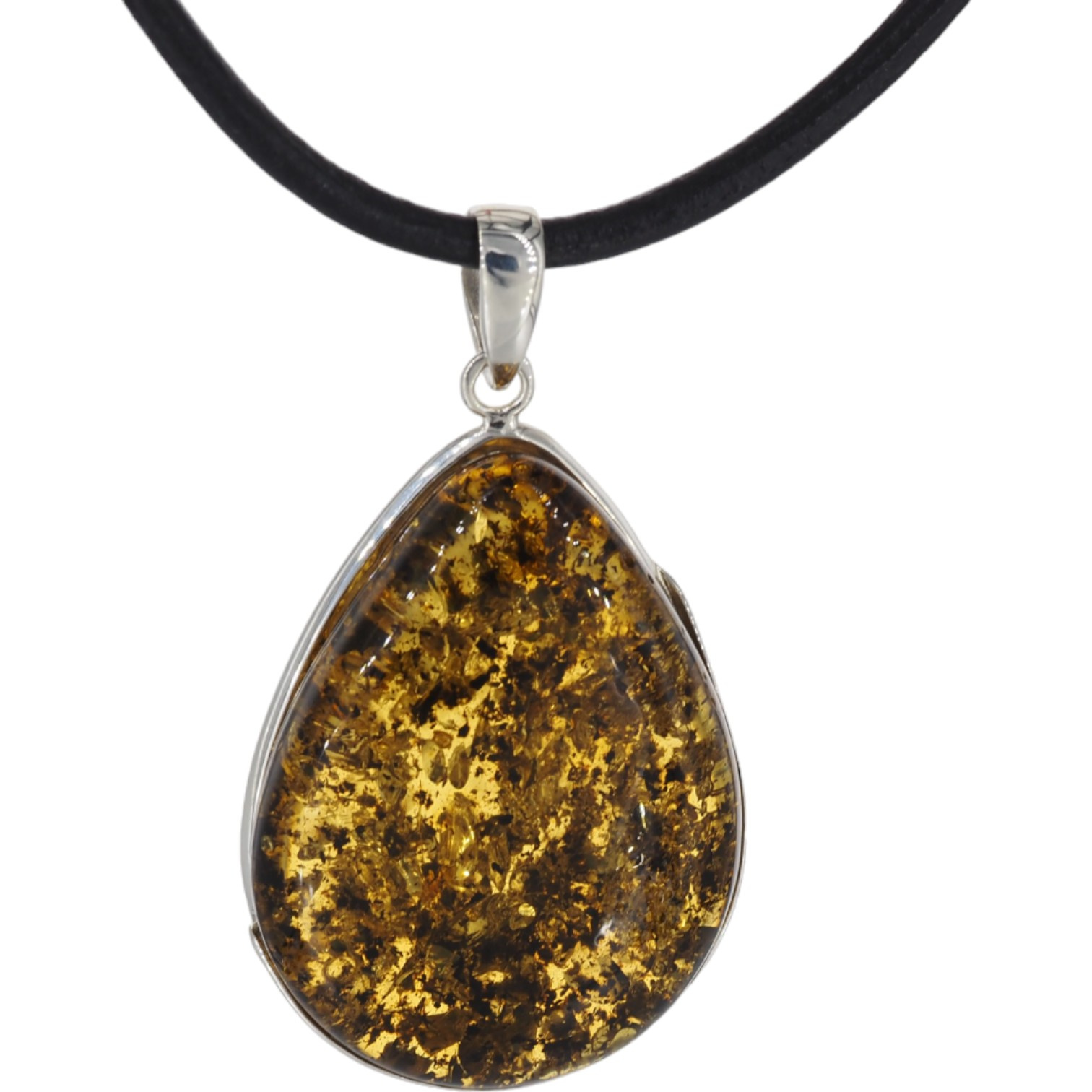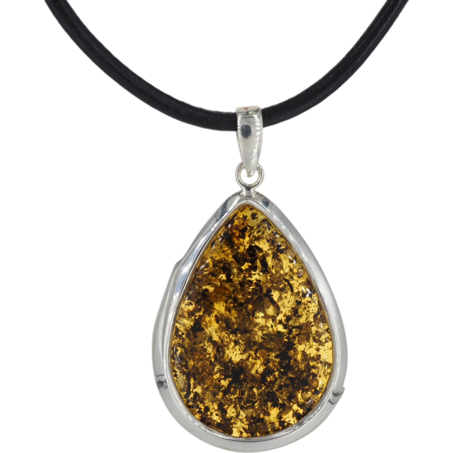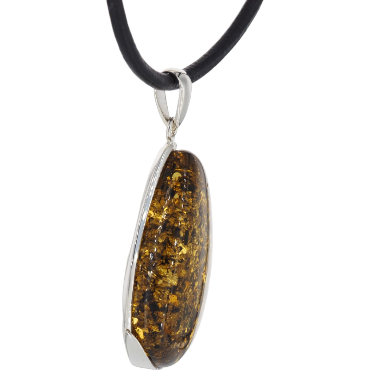 Naszyjnik na rzemieniu - zielony Bursztyn z łuskami w srebrze
