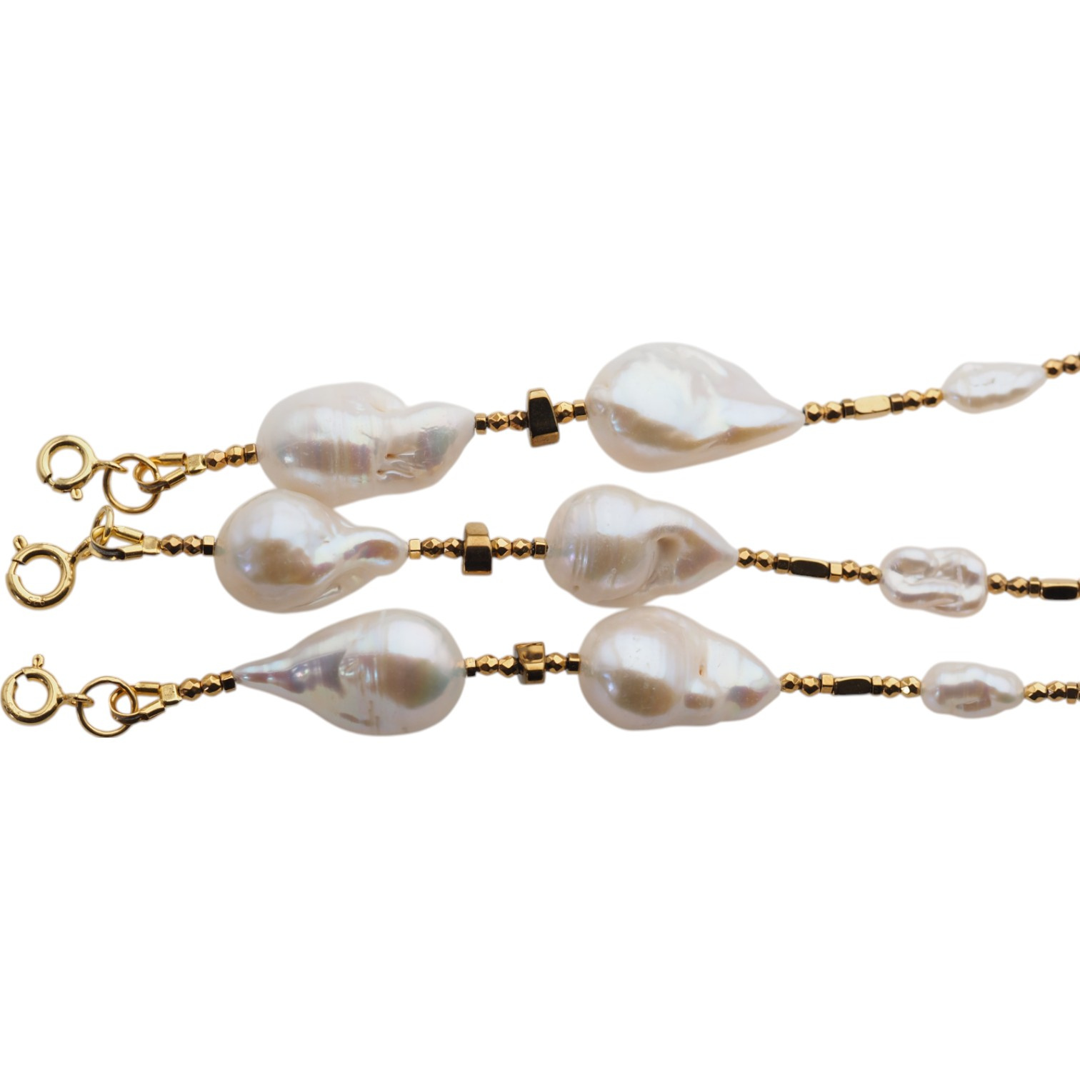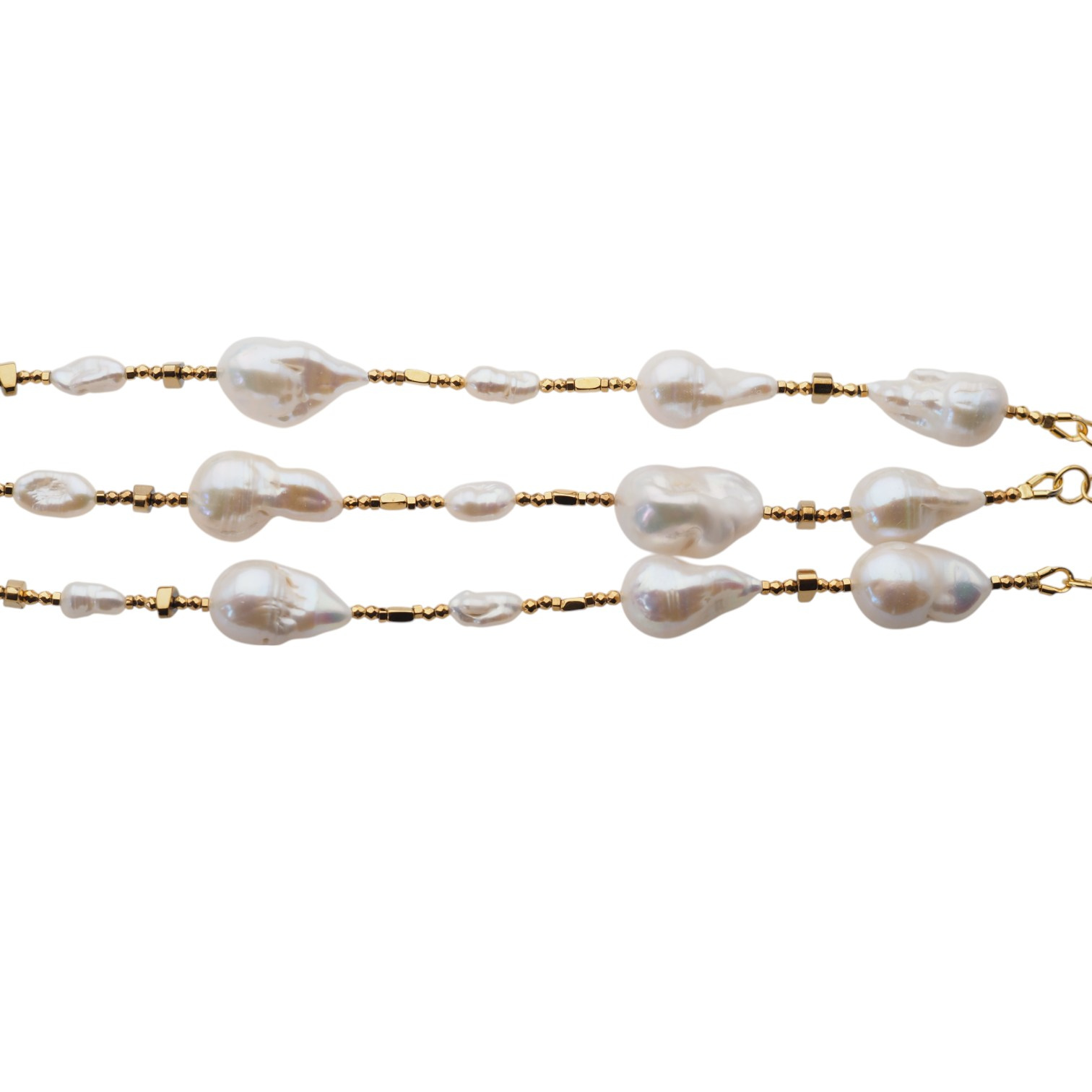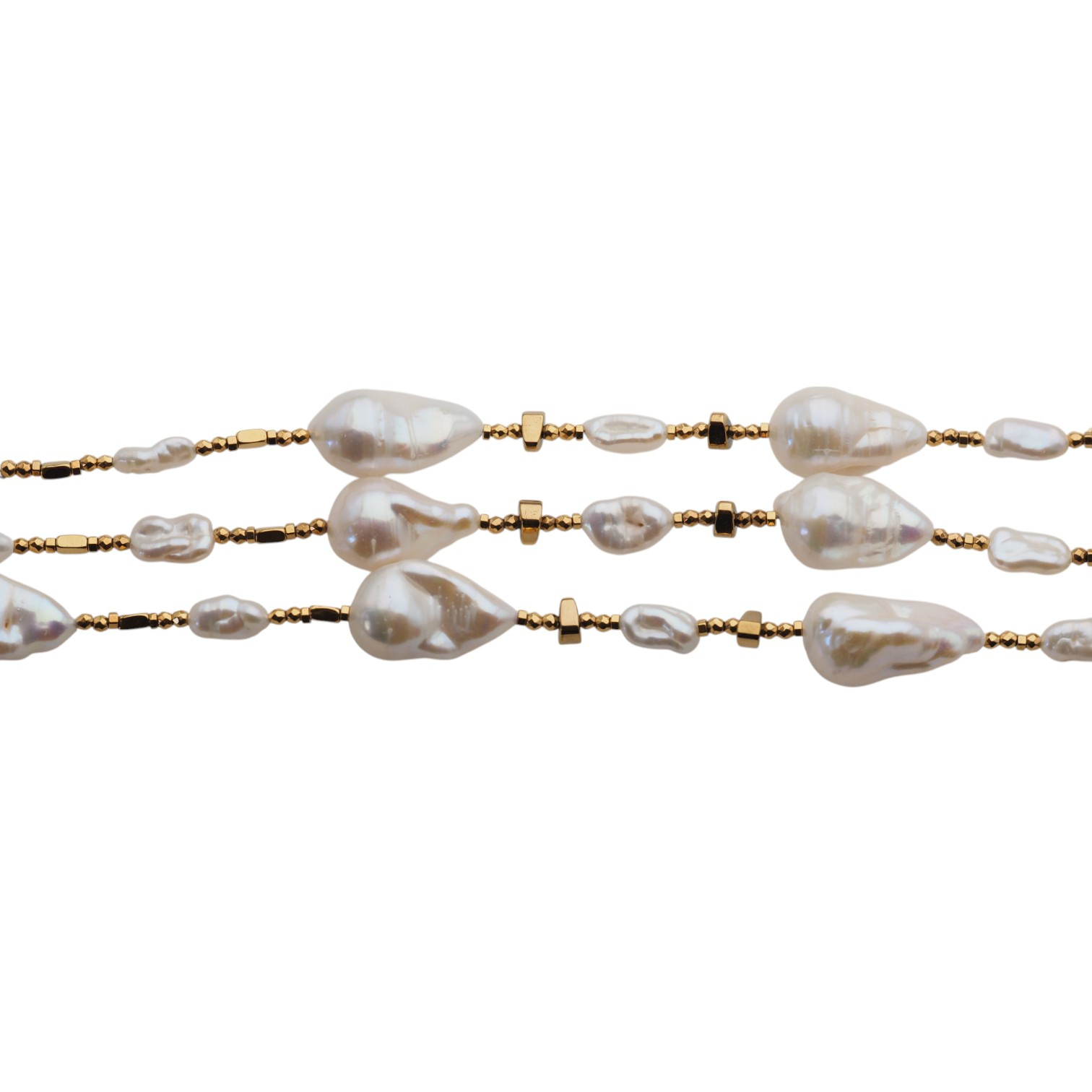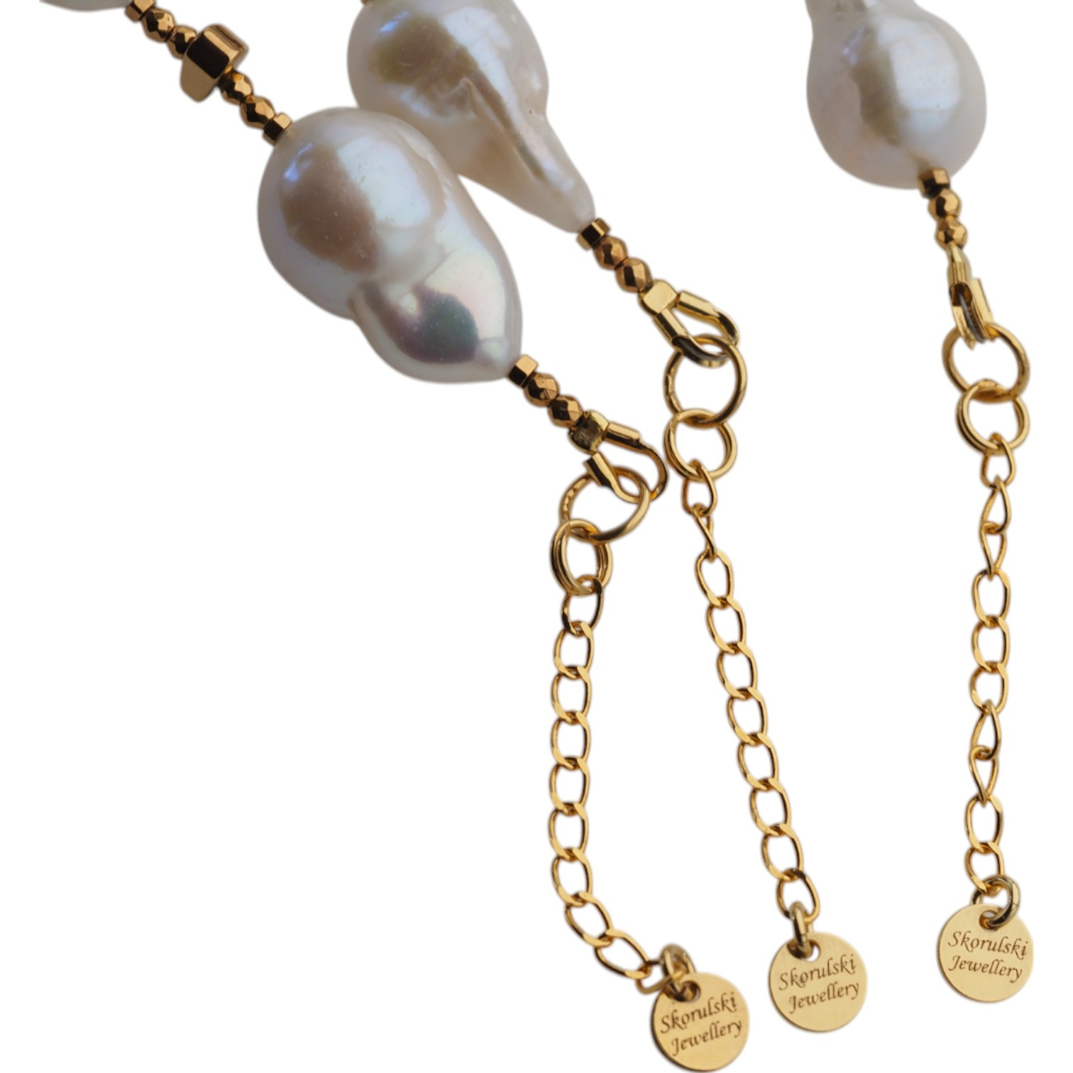 Naturalne hodowane perły słodkowodne barokowe, złoty hematyt.