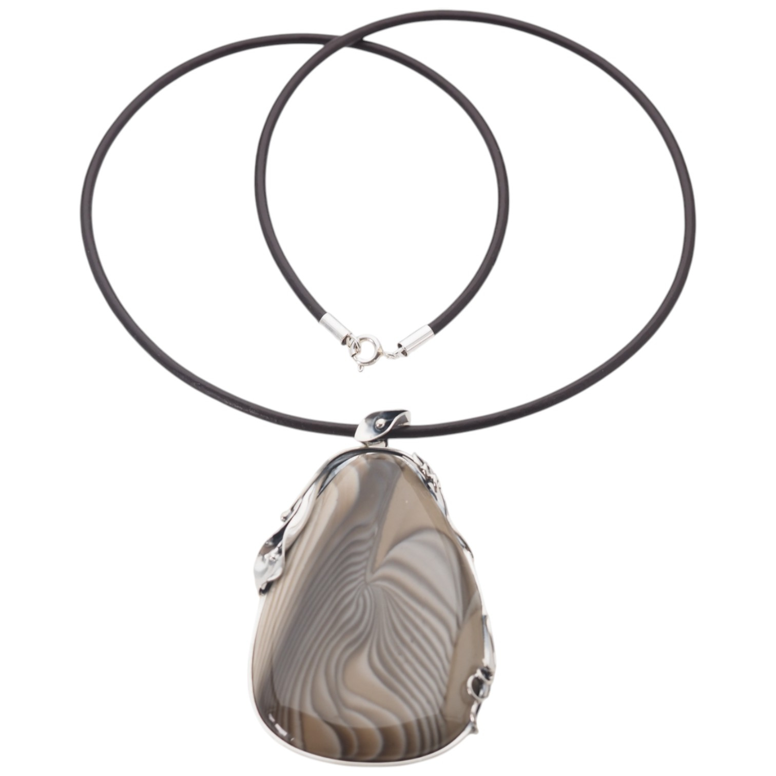 Naszyjnik z Krzemieniem Pasiastym na rzemieniu – srebro oksydowane 925