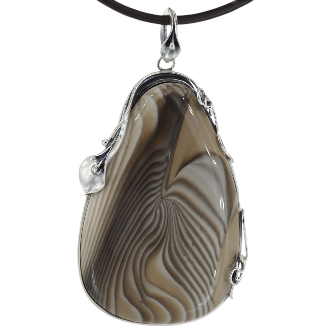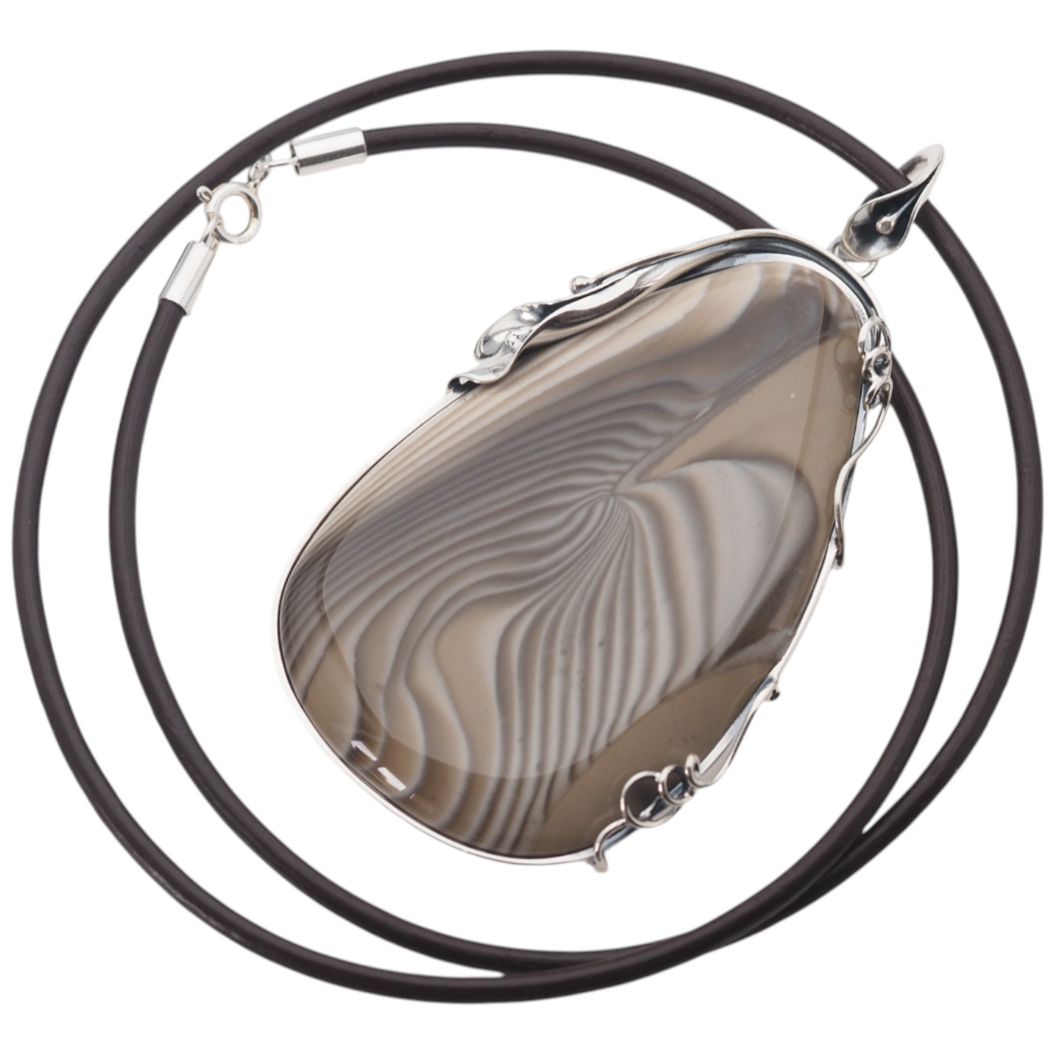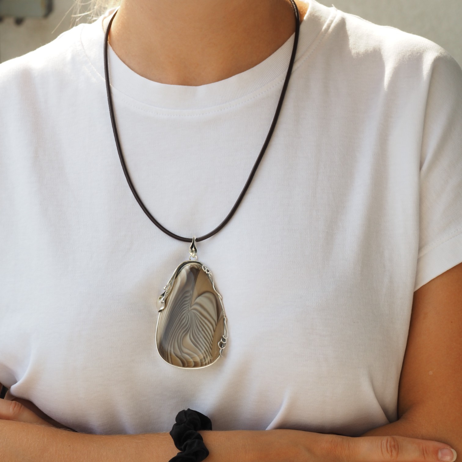 Naszyjnik z Krzemieniem Pasiastym na rzemieniu – ręcznie wykonany, srebro oksydowane 925