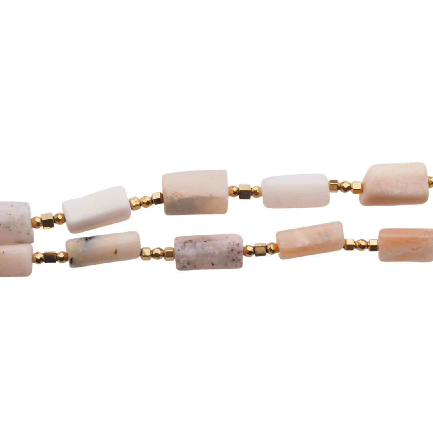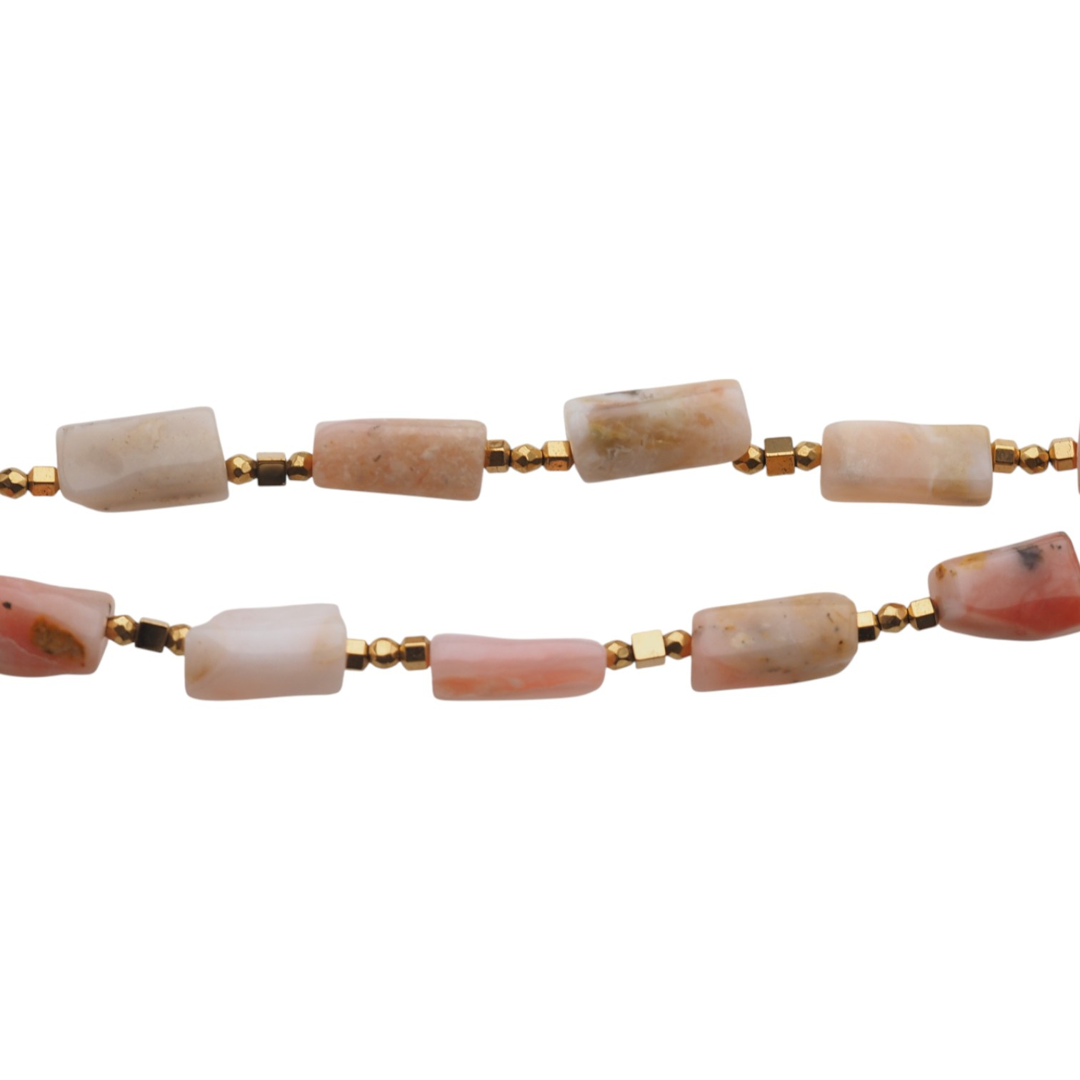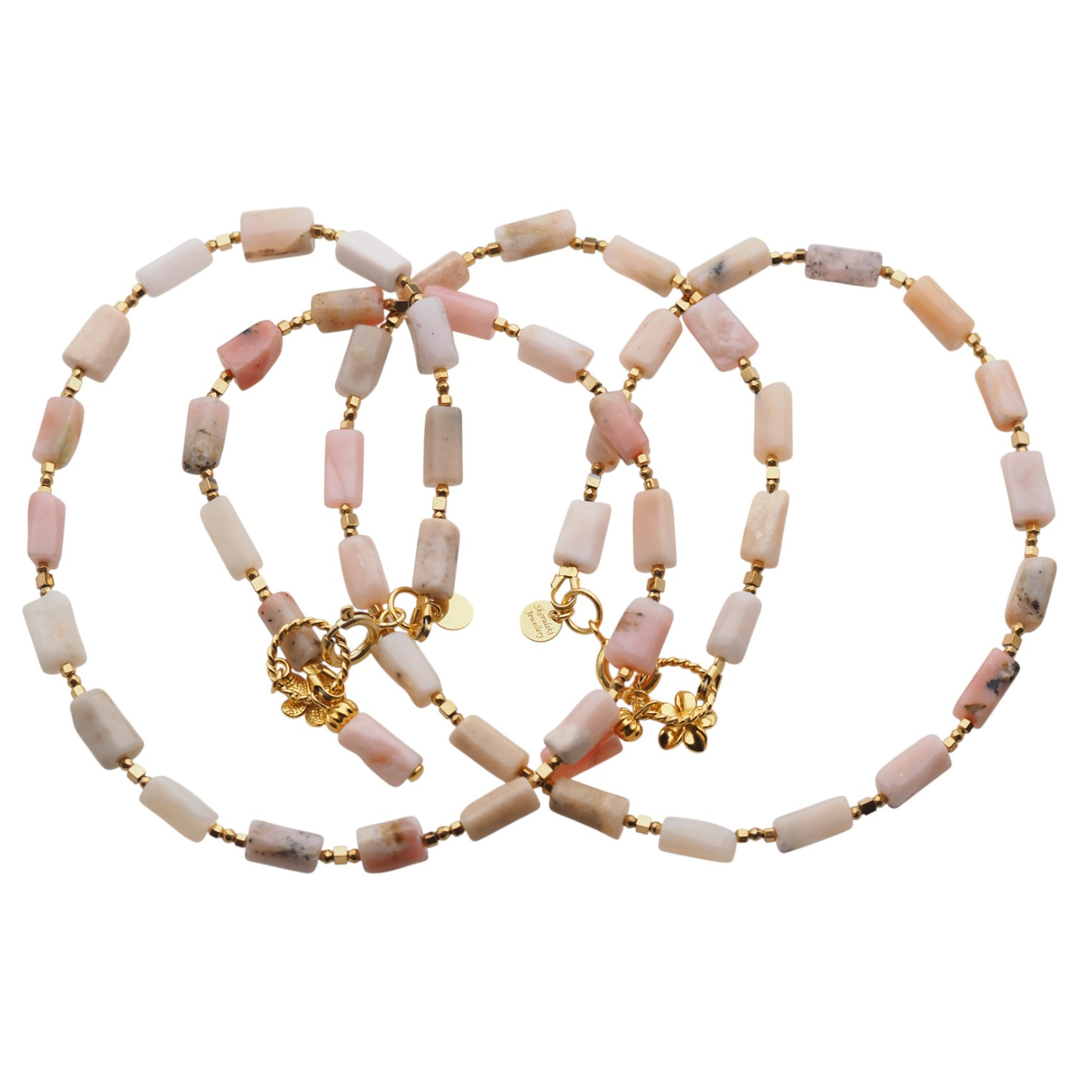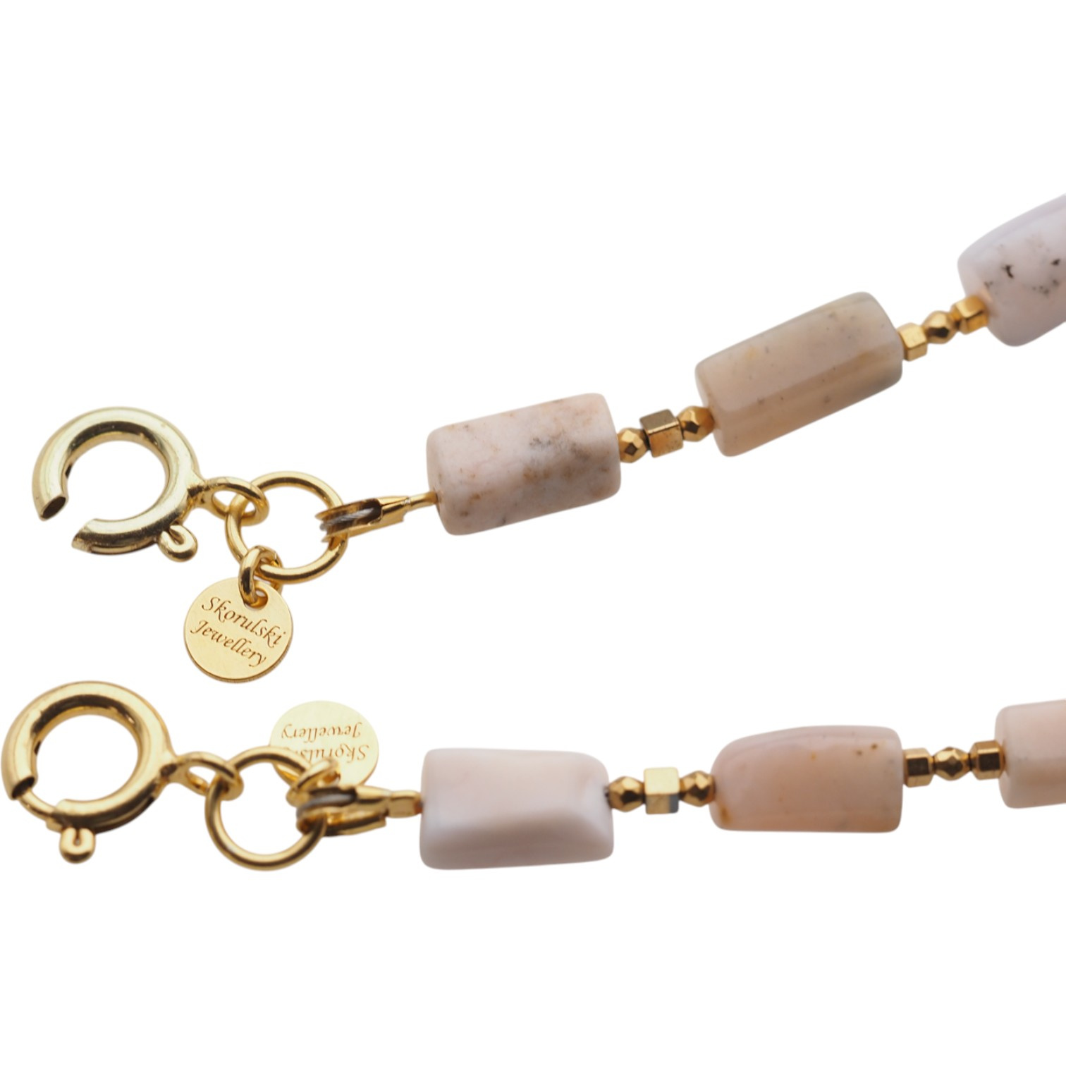 Naszyjnik z Opalem Różowym i srebrem złoconym został wykonany ręcznie na lince stalowej.