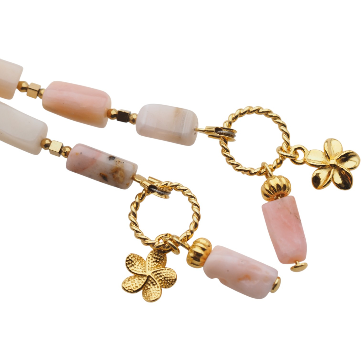 Naszyjnik z kwiatem - Opal Różowy i srebro złocone