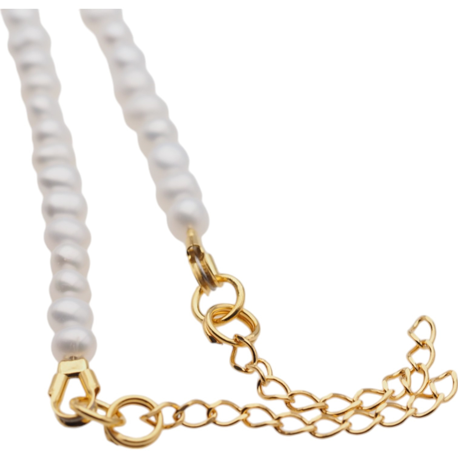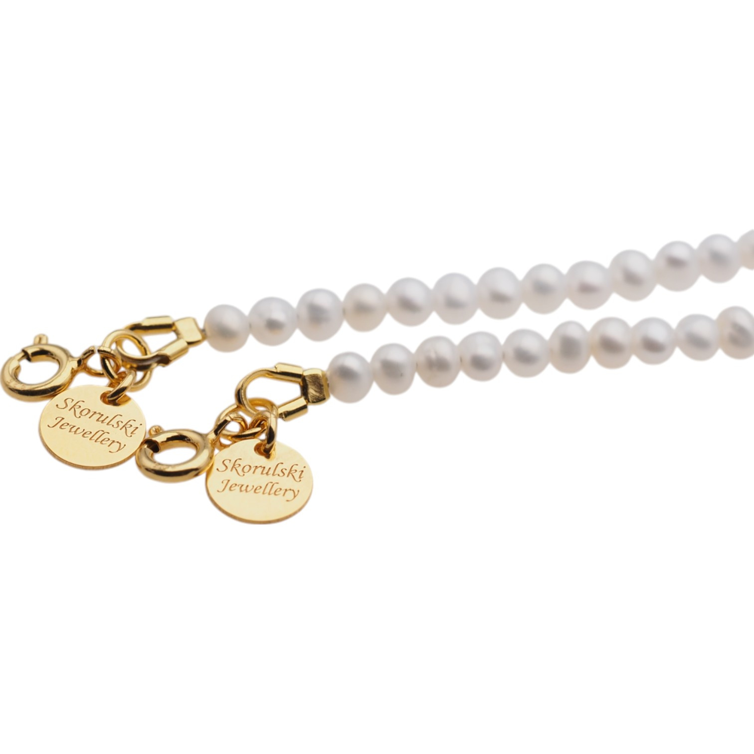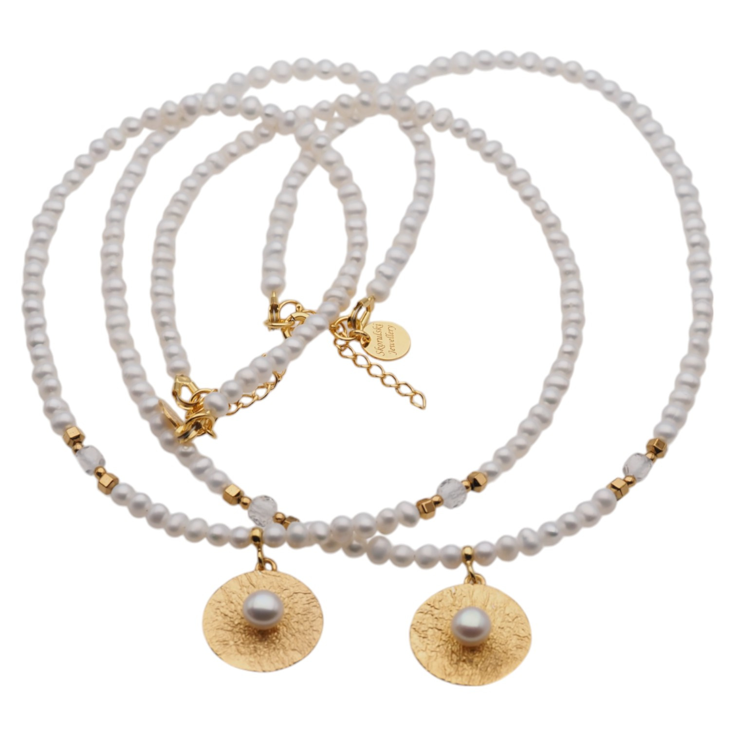 Naszyjnik z młotkowaną blaszką- Białe Perły hodowane i srebro złocone