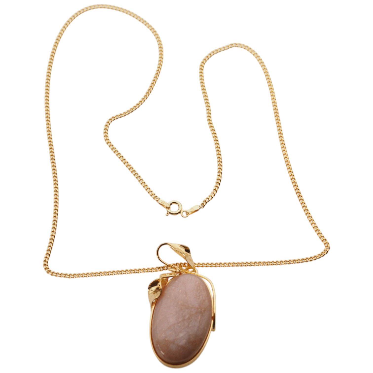 Pozłacany srebrny naszyjnik z Kamieniem Słonecznym – ręcznie wykonany, artystyczna oprawa z motywem liścia