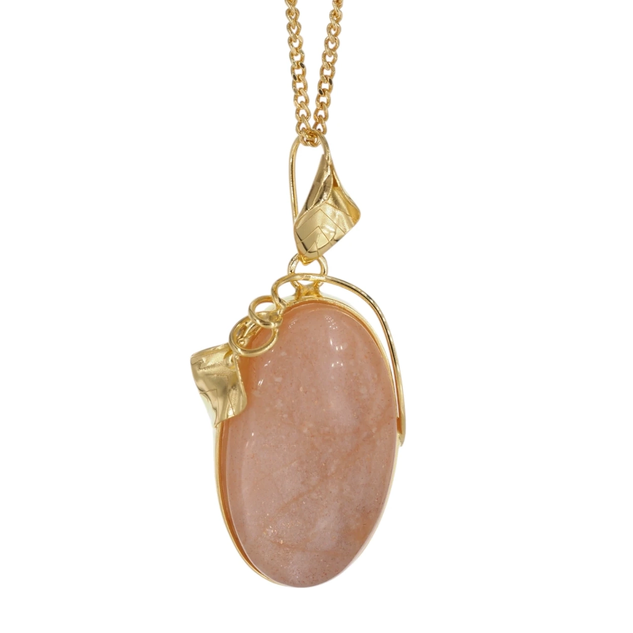 Ten wyjątkowy naszyjnik łączy w sobie naturalne piękno Kamienia Słonecznego z misternie wykonaną, pozłacaną oprawą ze srebra próby 925. Całość została stworzona ręcznie przez jubilera, co gwarantuje unikalność i dbałość o każdy detal.