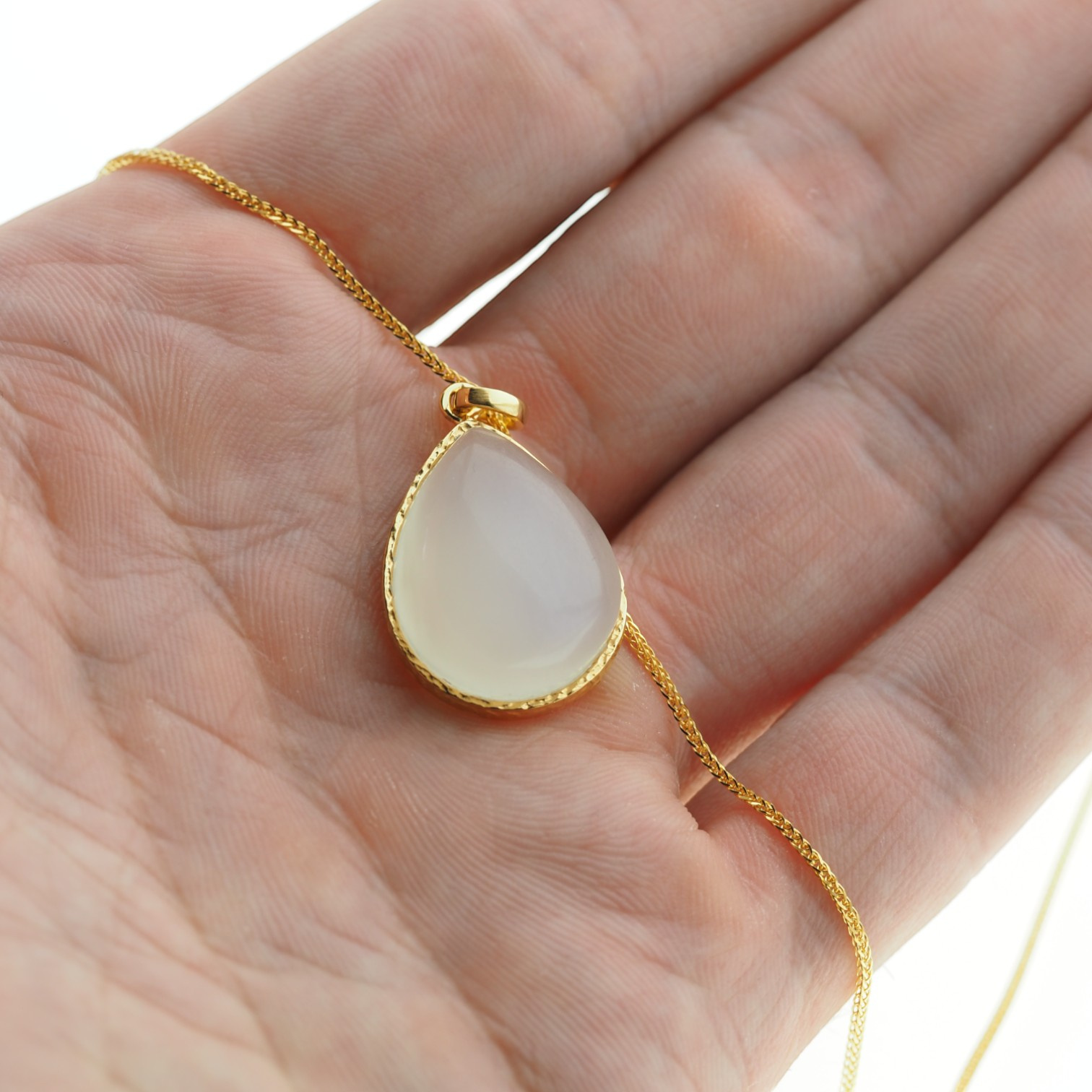 Naszyjnik - Zawieszka z Kamieniem Księżycowym w srebrze złoconym na łacuszku