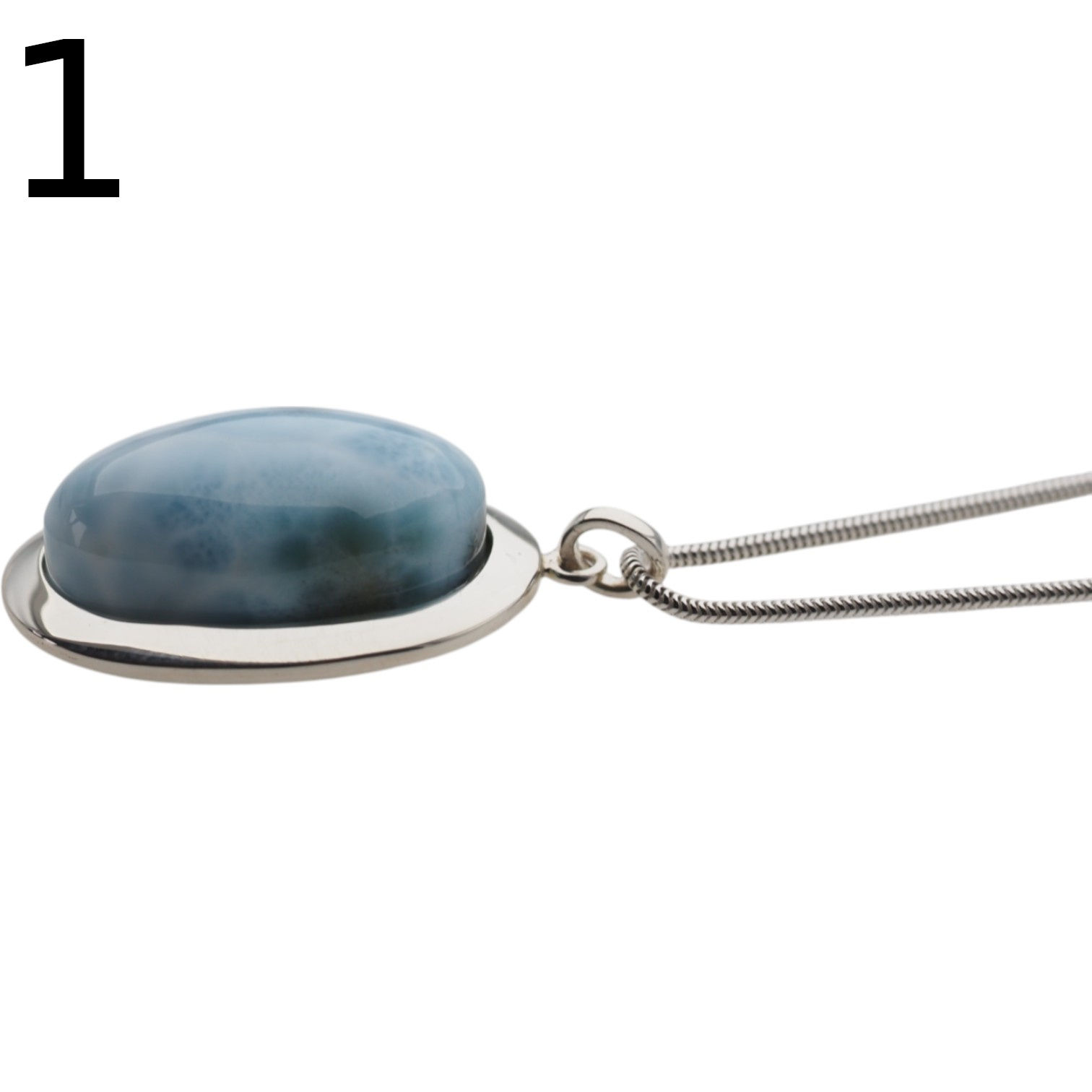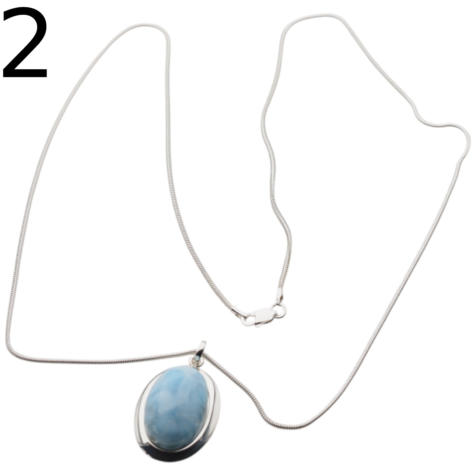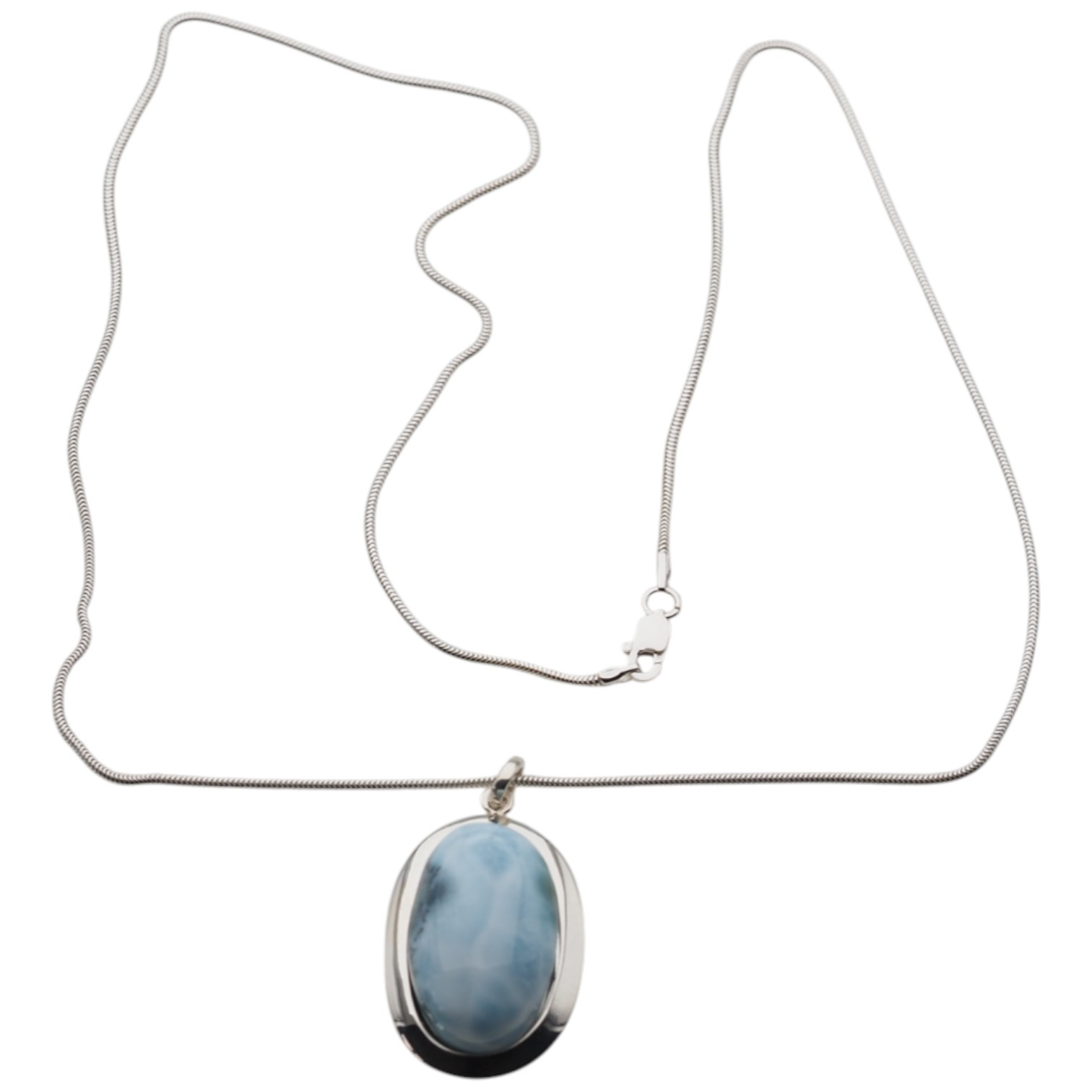 Naszyjnik - Zawieszka z larimarem owalnym na łańcuszku