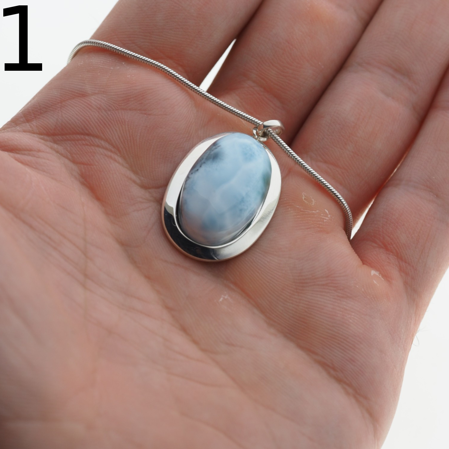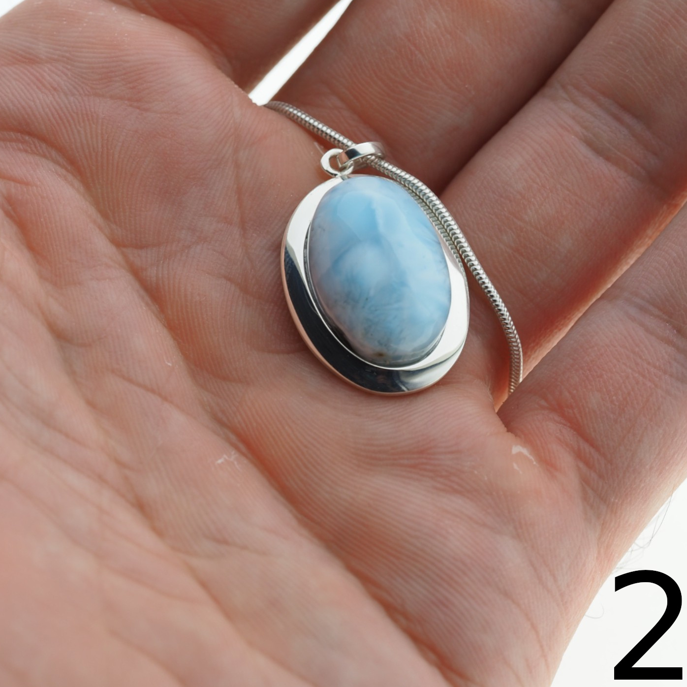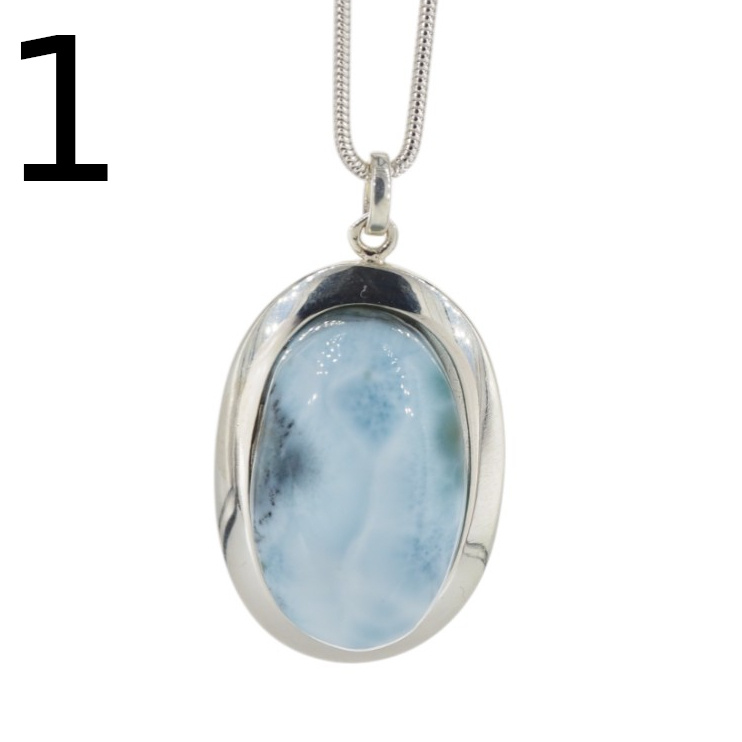 Naszyjnik - Zawieszka z larimarem owalnym na łańcuszku