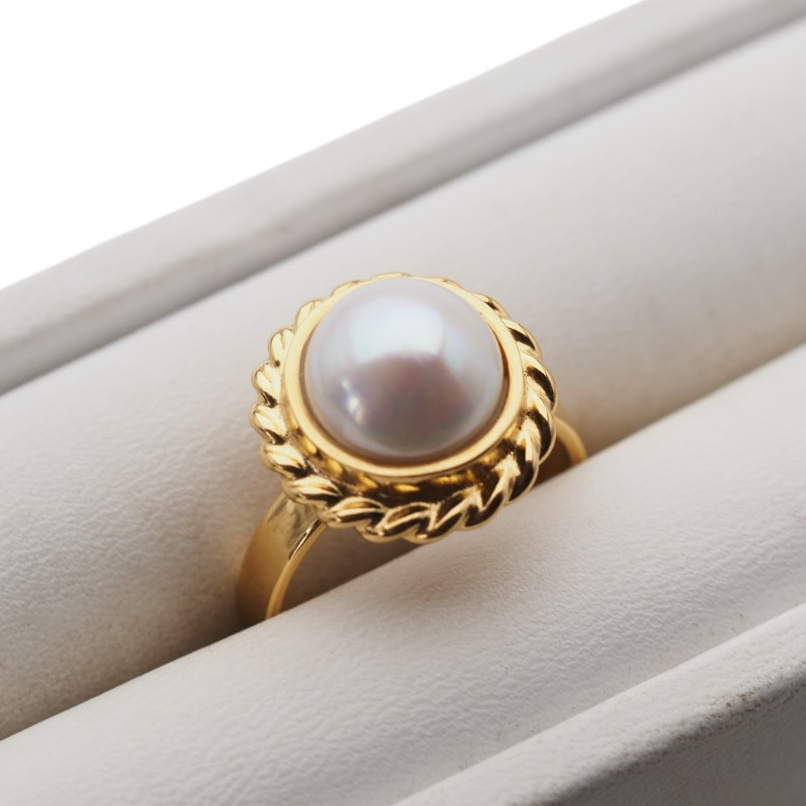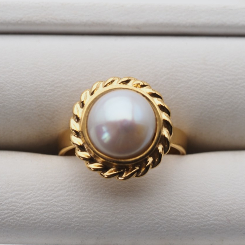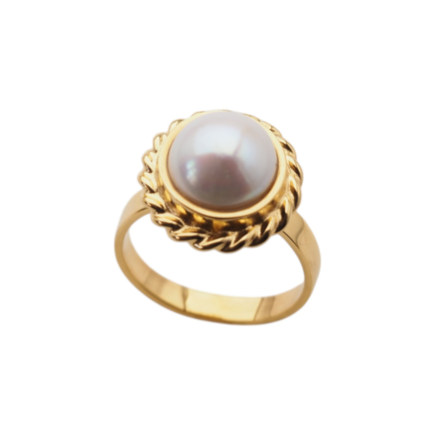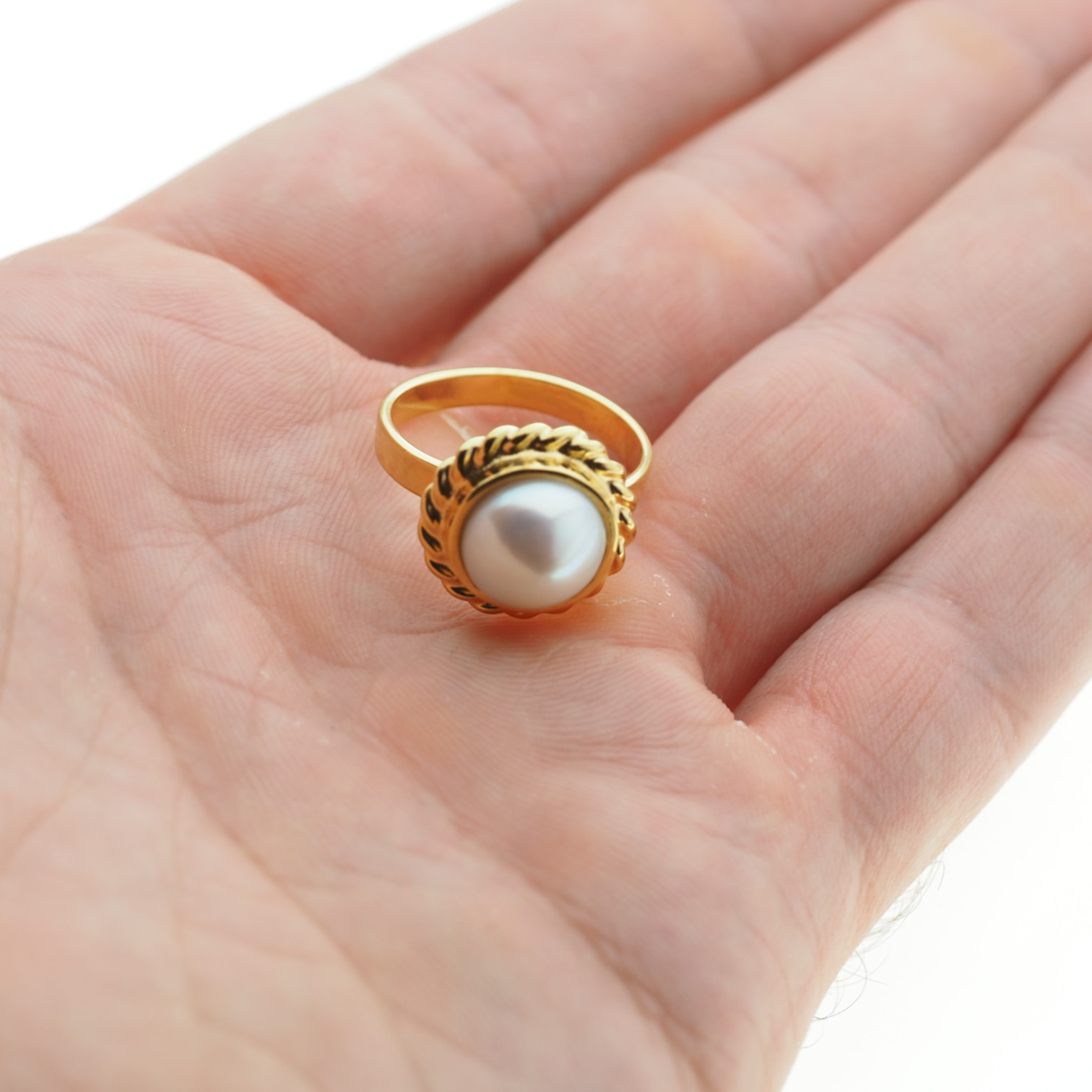 Pierścionek z białą perłą – srebro pozłacane 24K, ręczne wykonanie