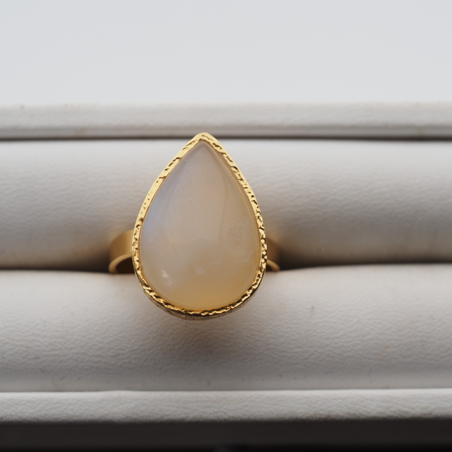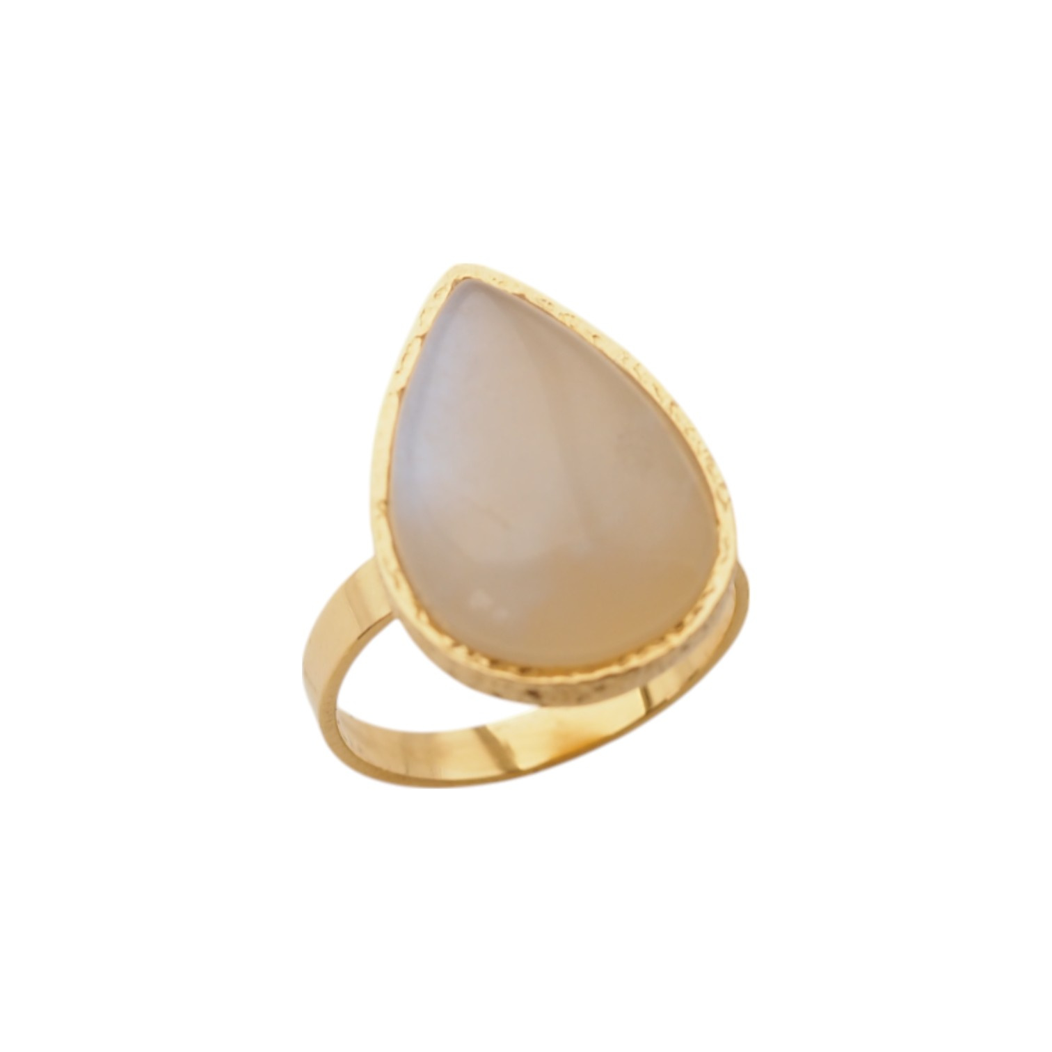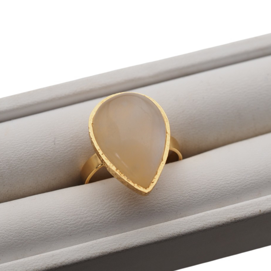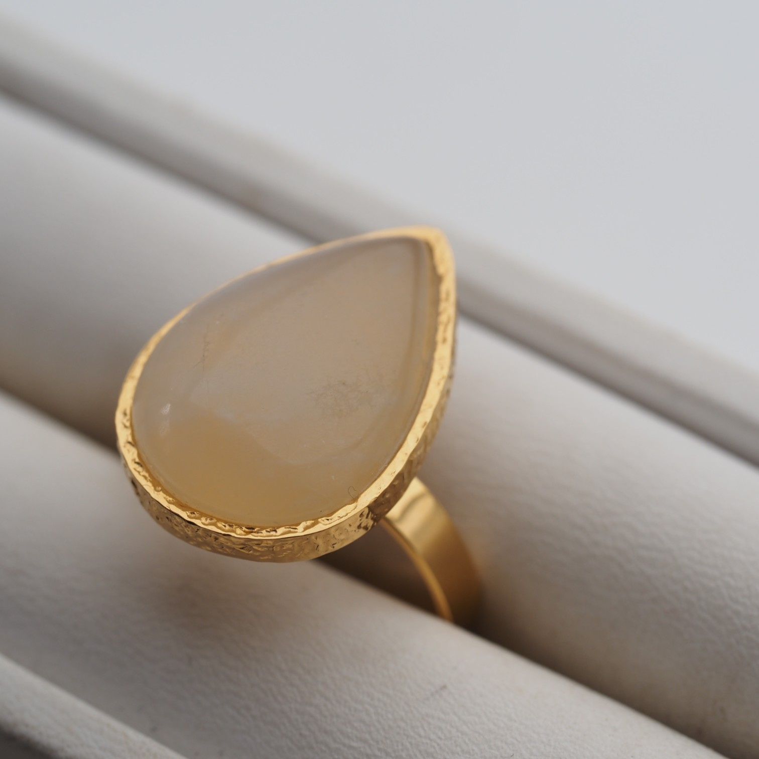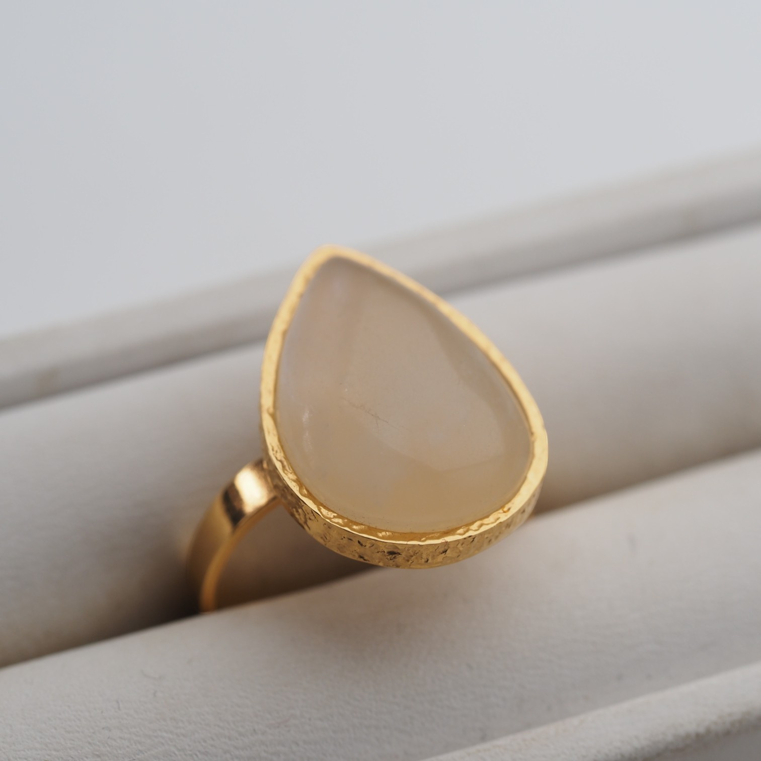 Pierścionek - Kamień Księżycowy łza i srebro złocone, młotkowane