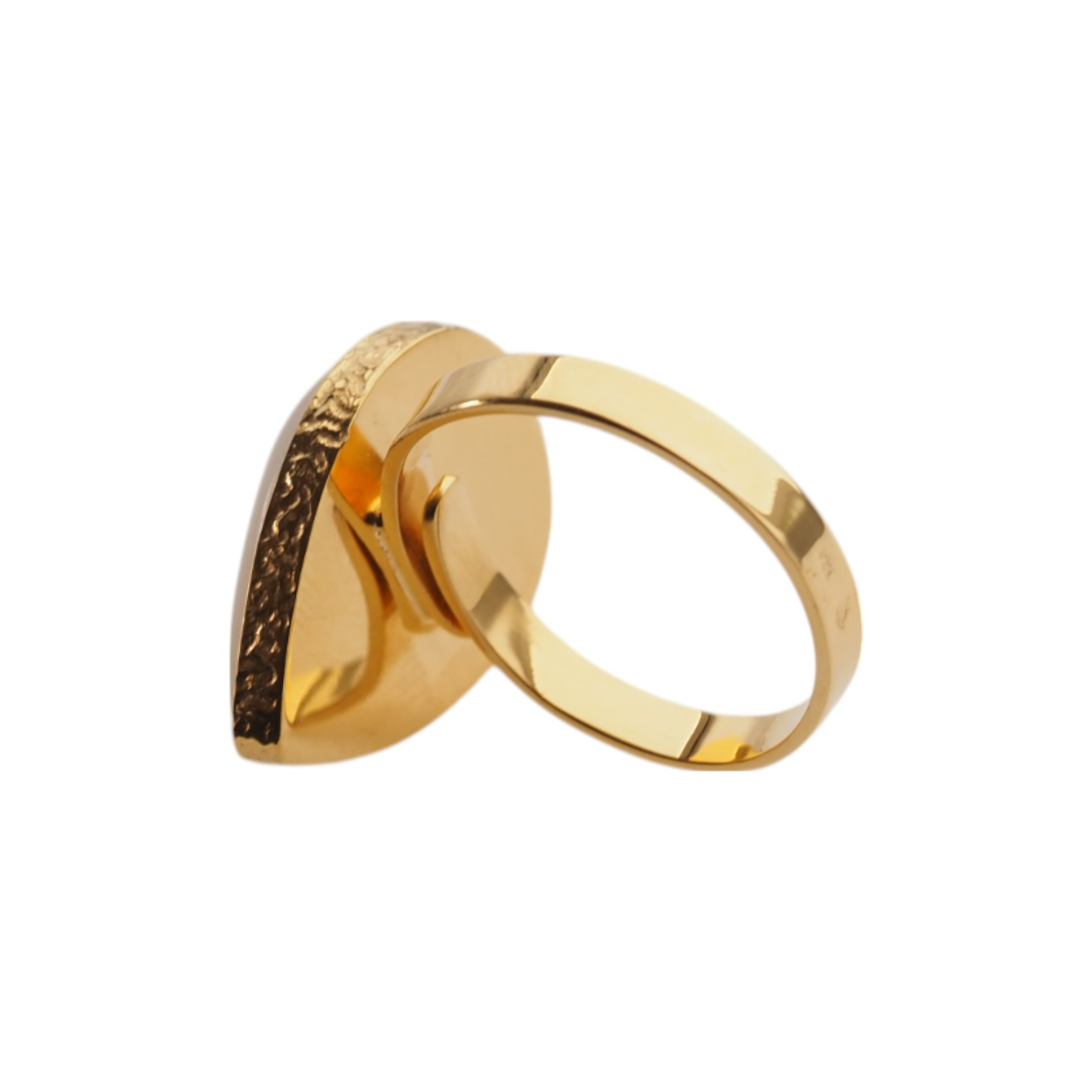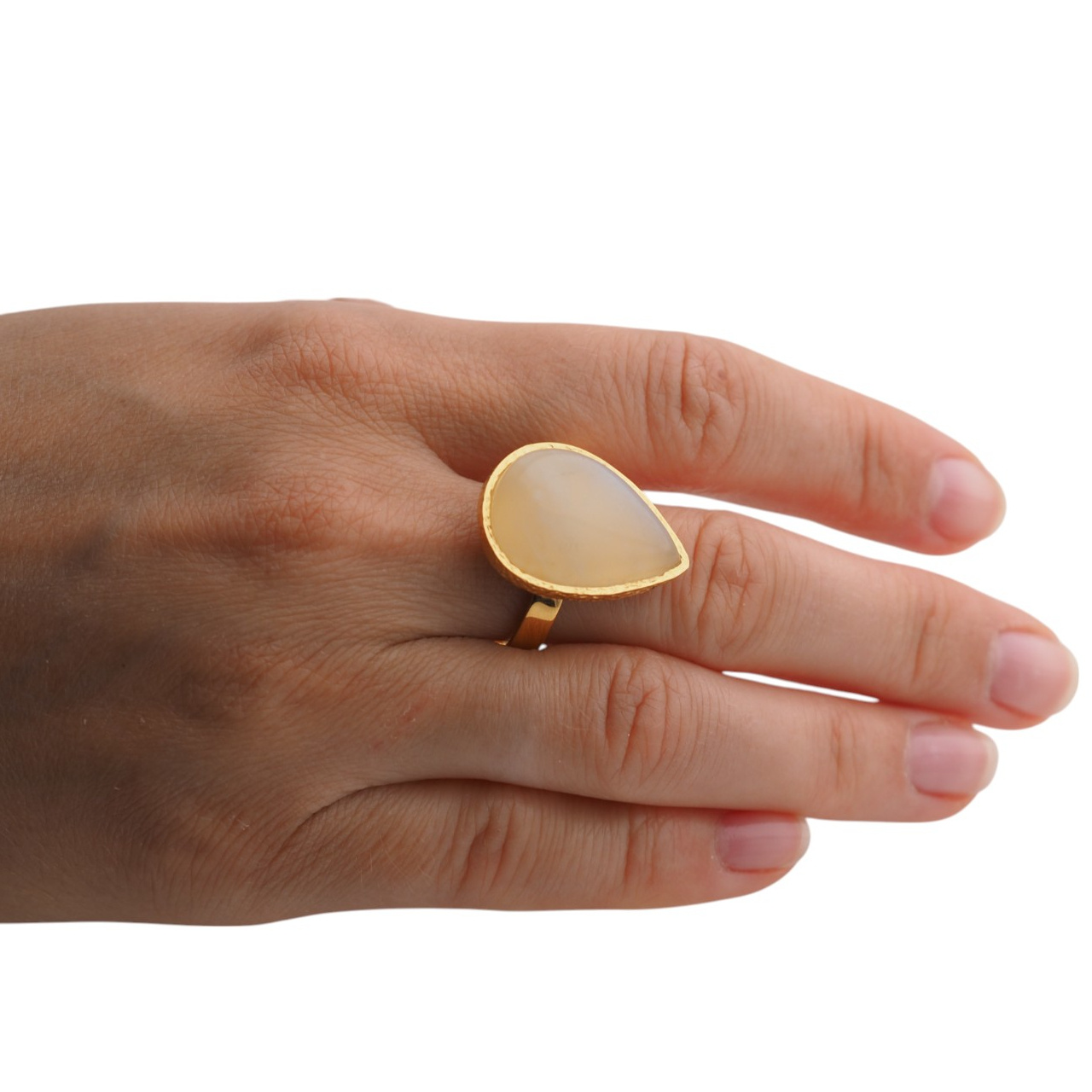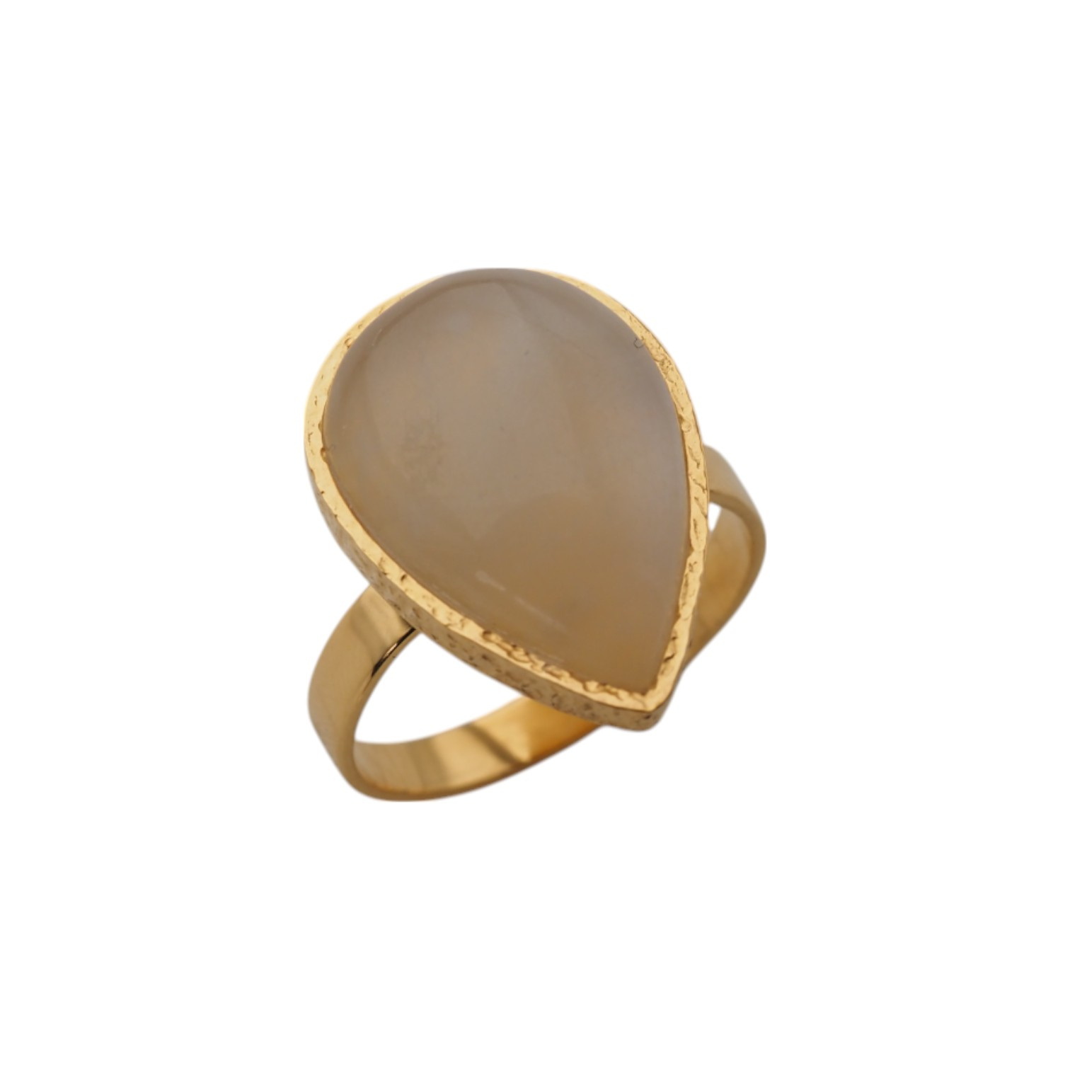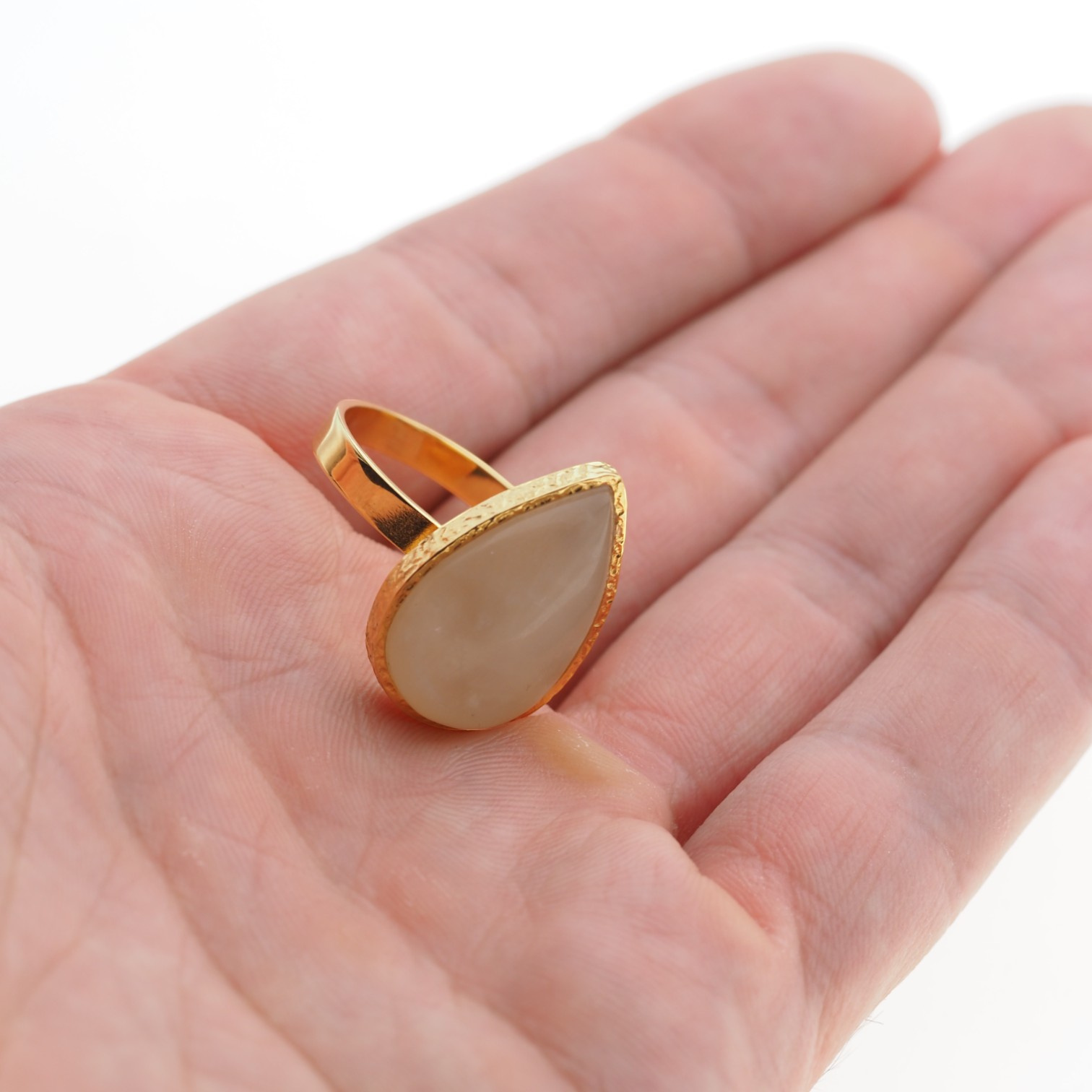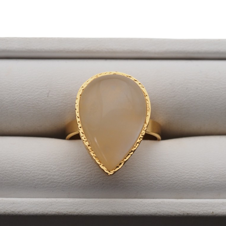 Pierścionek - Kamień Księżycowy łza i srebro złocone, młotkowane