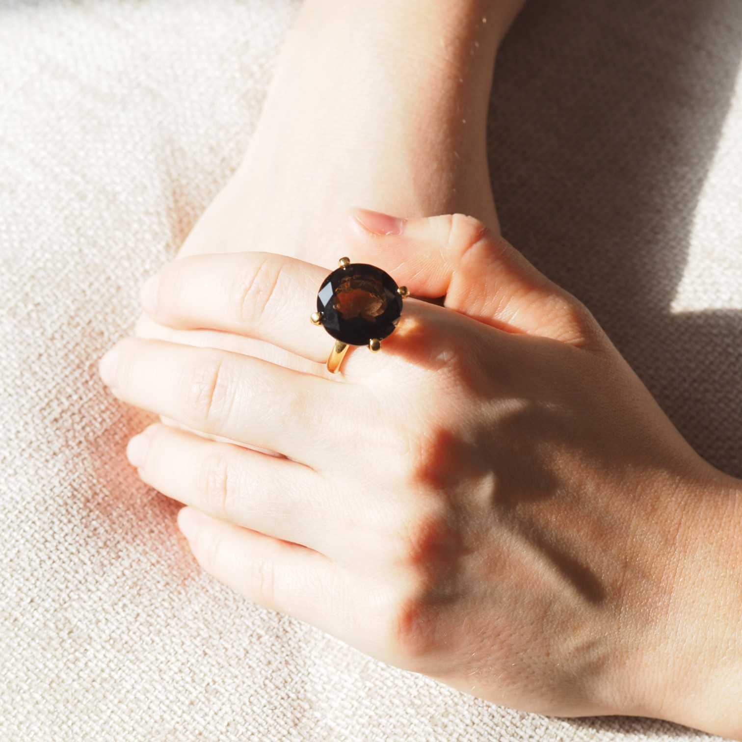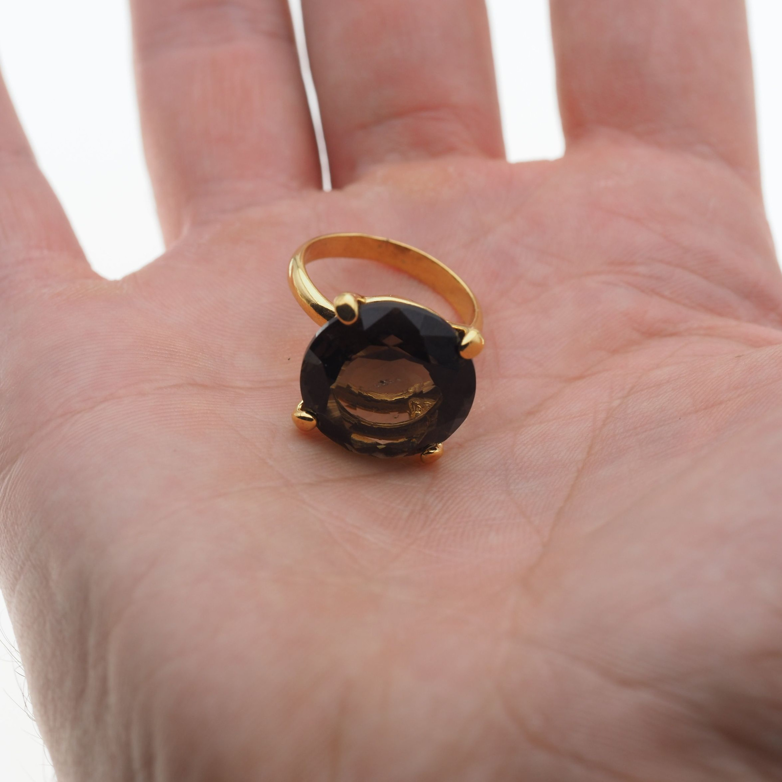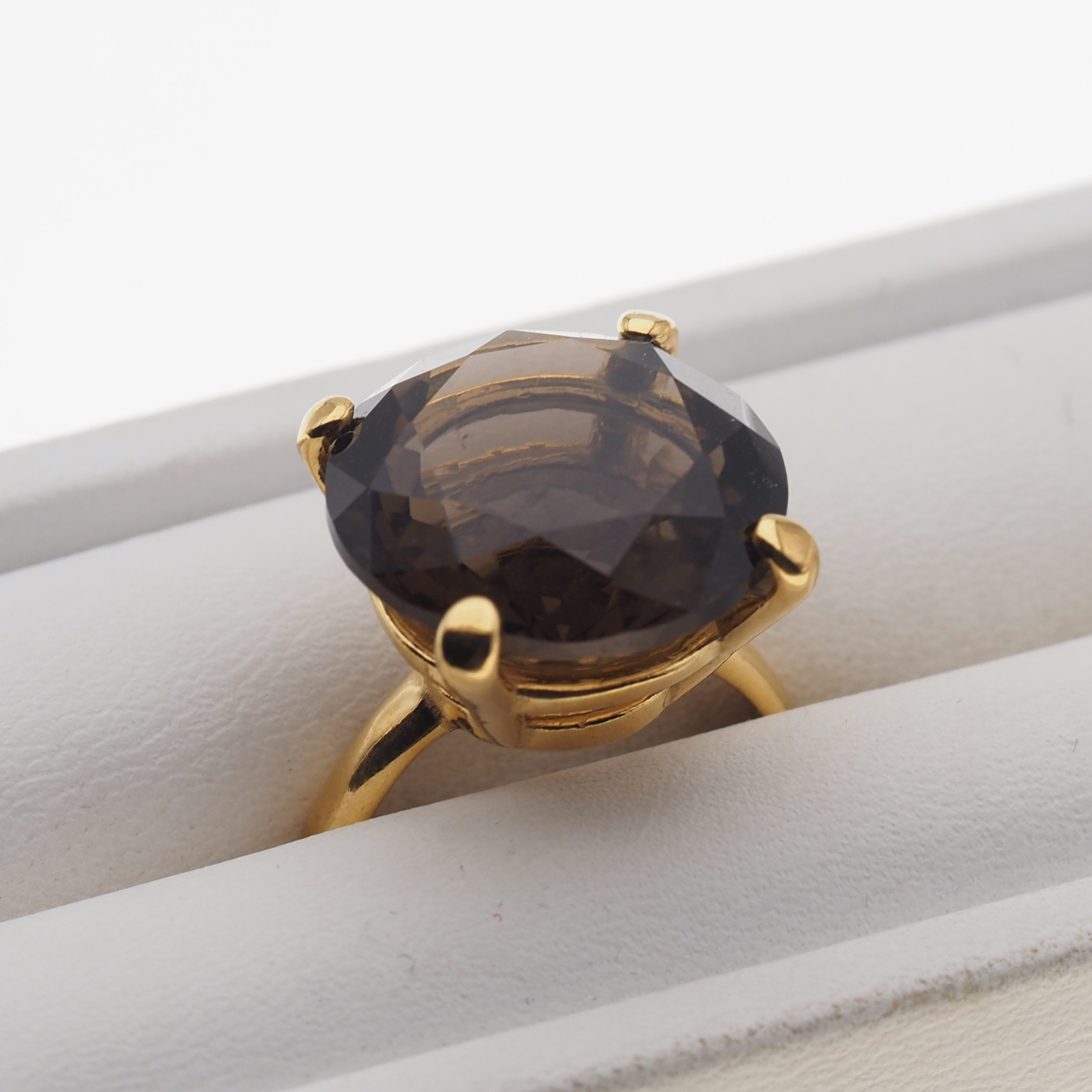 Srebrny, złocony pierścionek z Kwarcem Dymnym został zrobiony ręcznie.