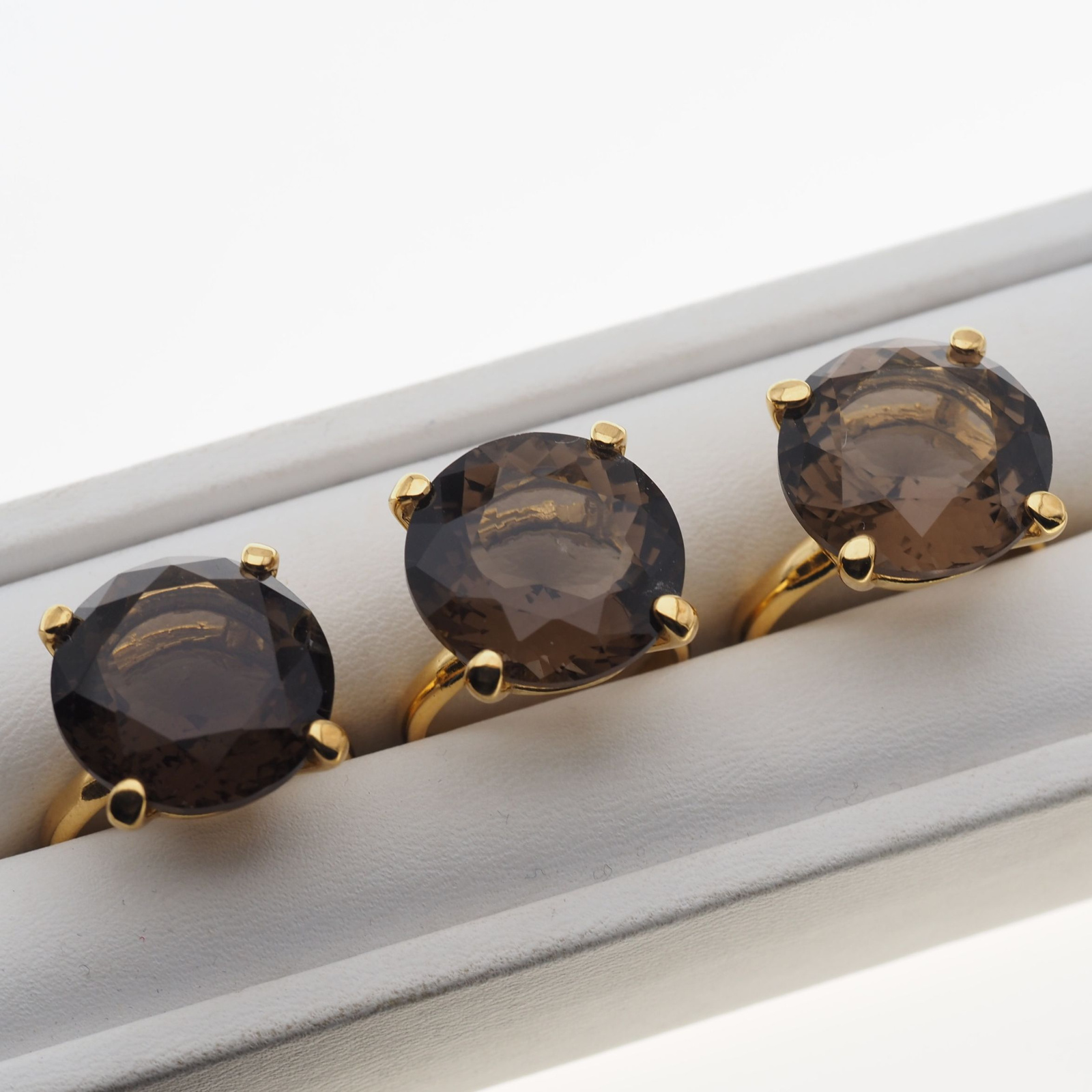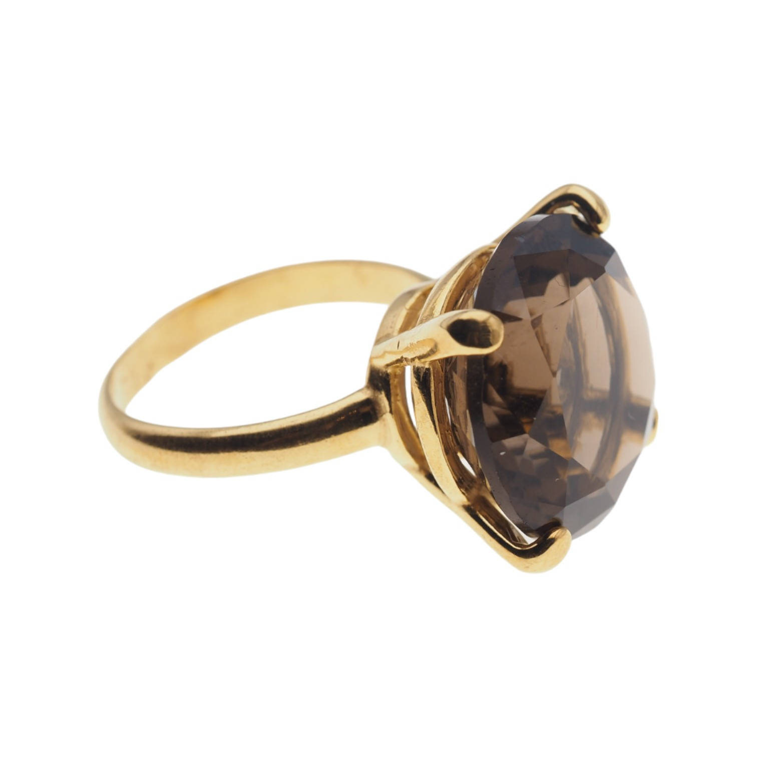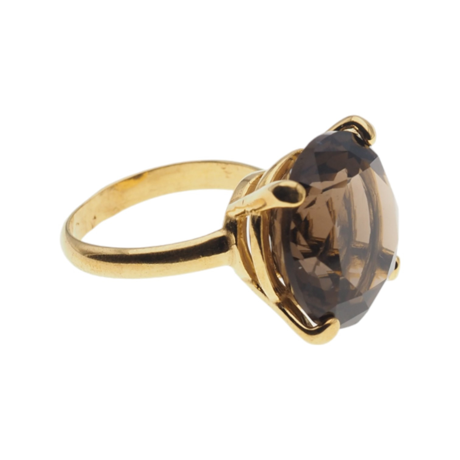 Srebrny, złocony pierścionek z Kwarcem Dymnym został zrobiony ręcznie.