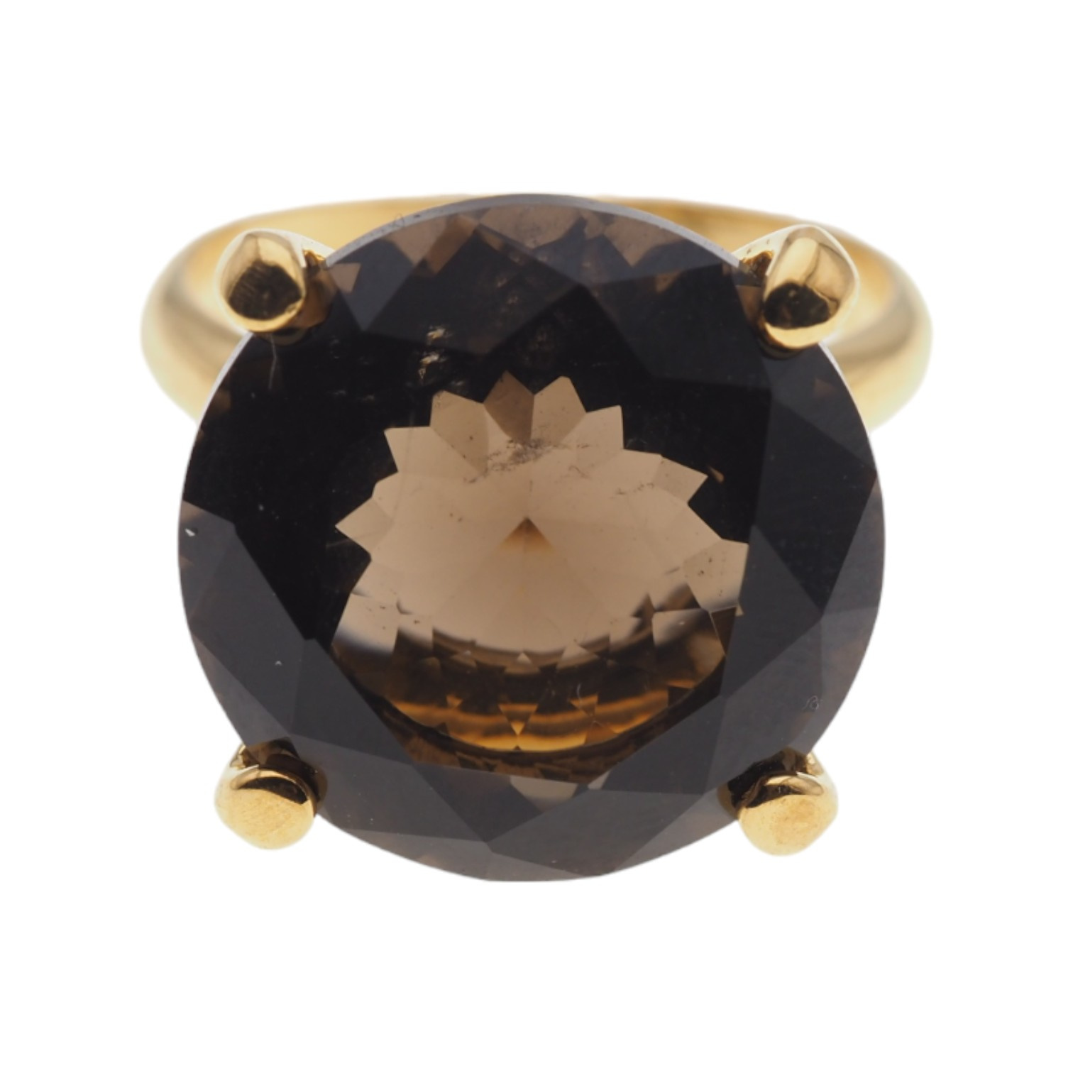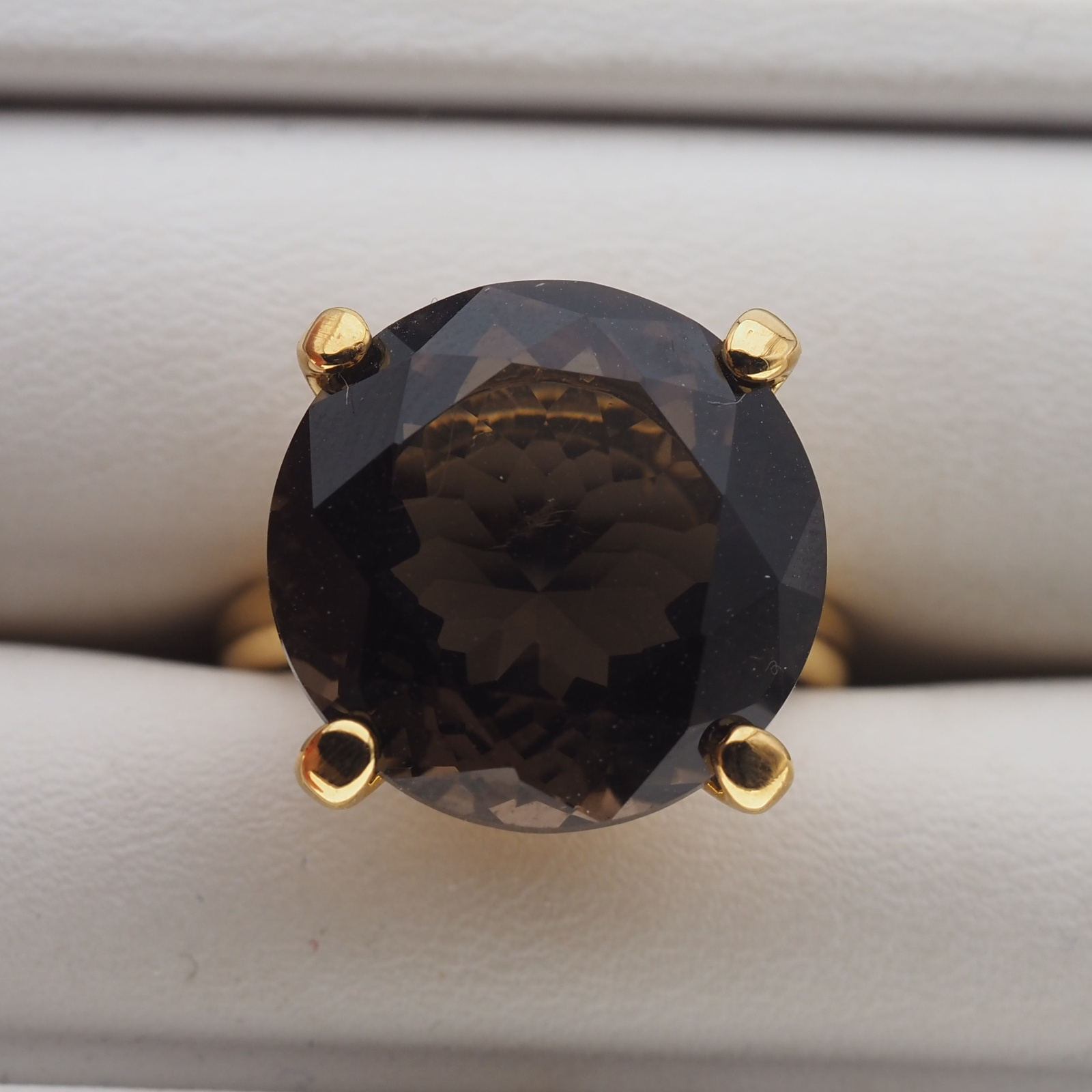 Pierścionek - Kwarc dymny okrągły (szlif diamentowy) w srebrze złoconym