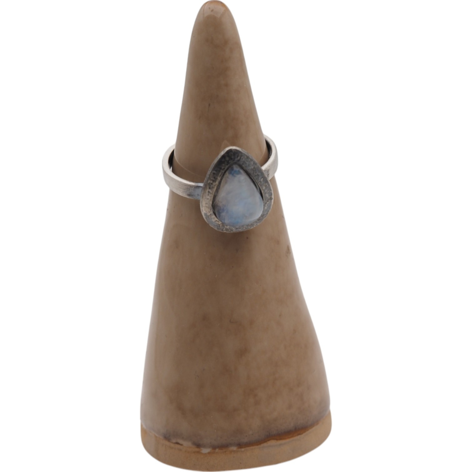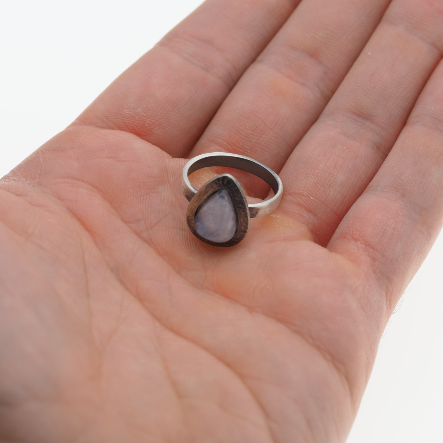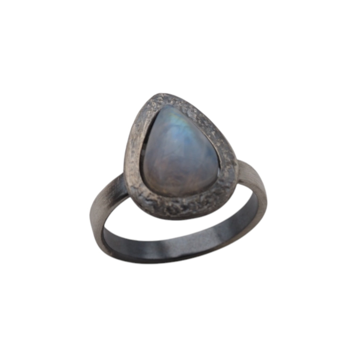 Pierścionek regulowany - Kamień Księżycowy łza i srebro oksydowane