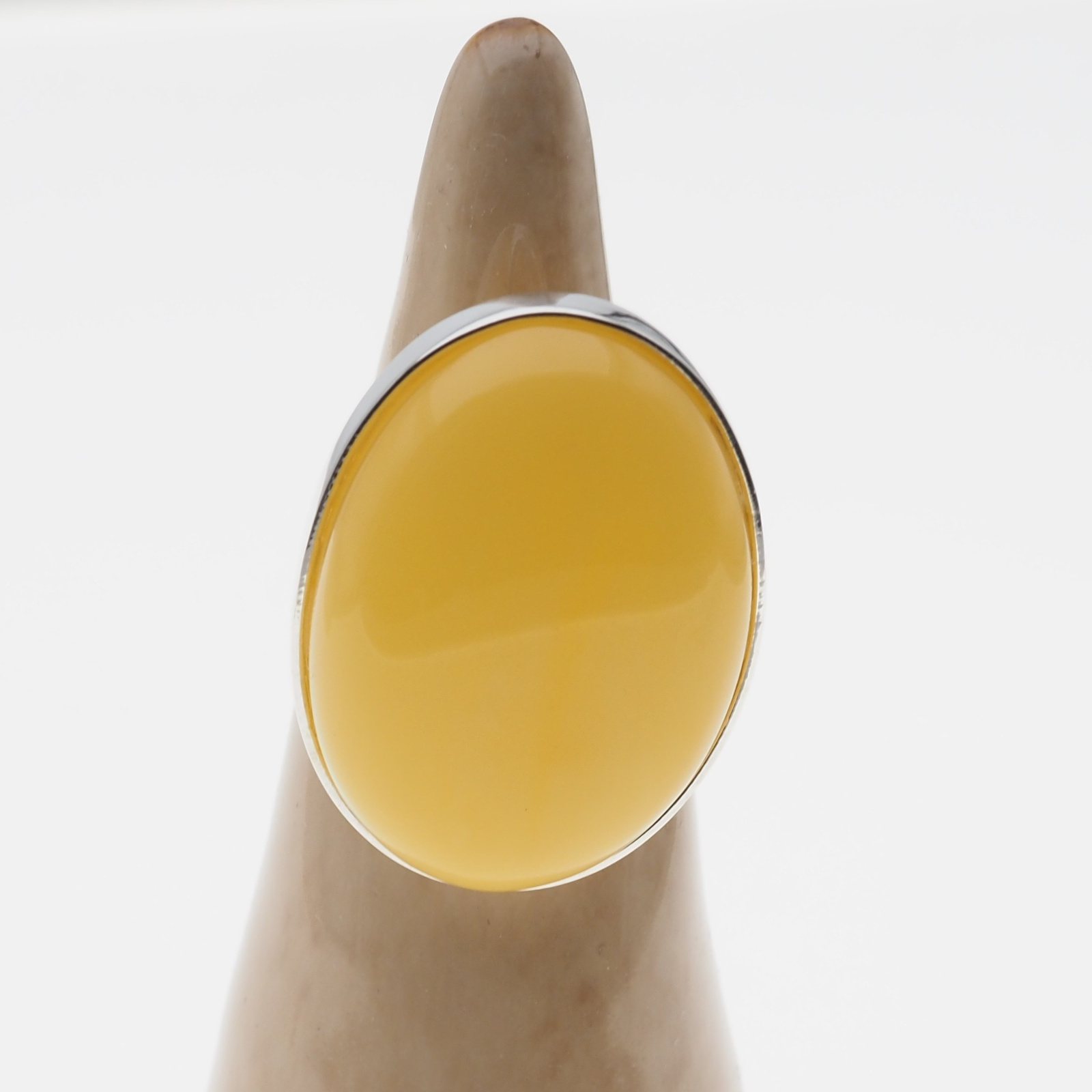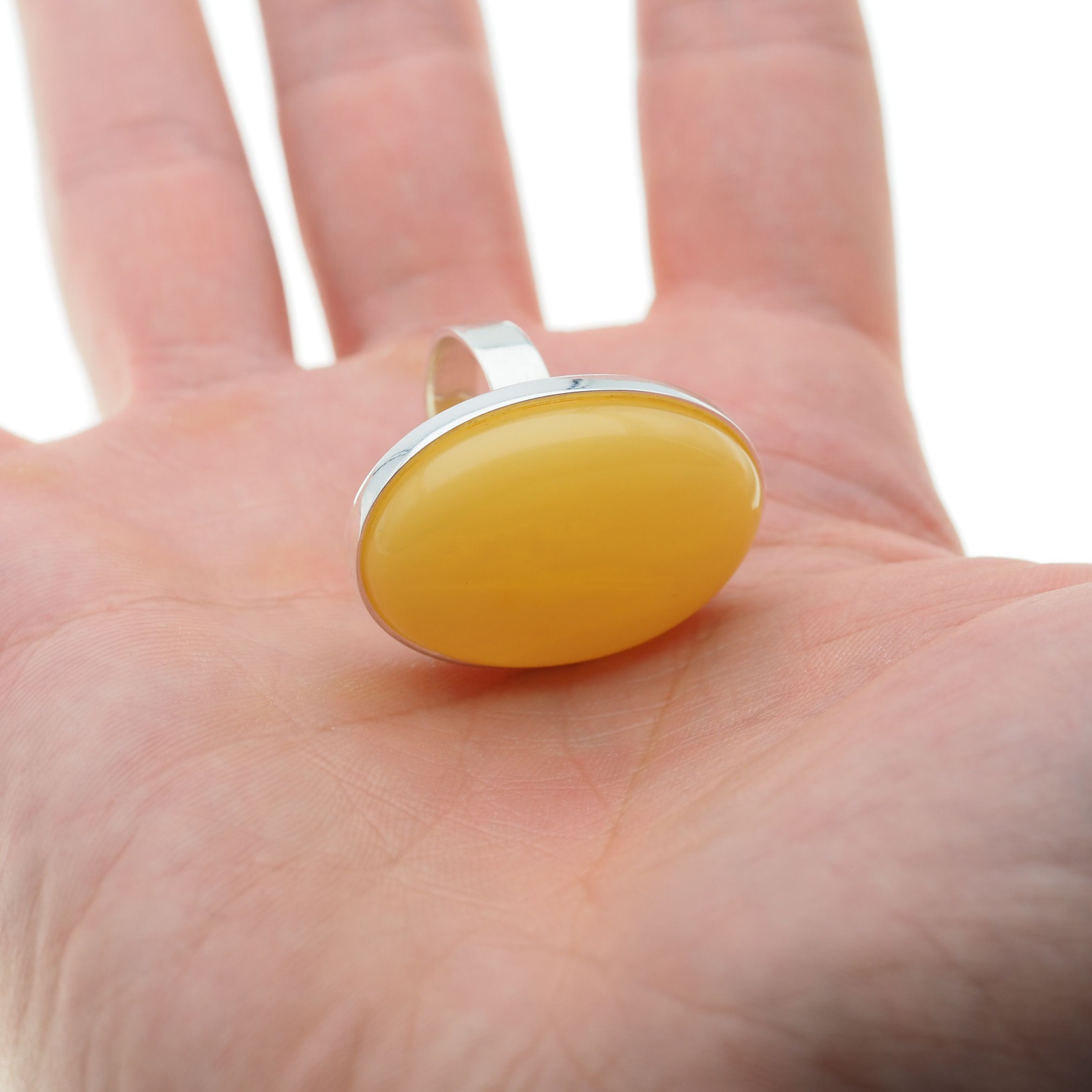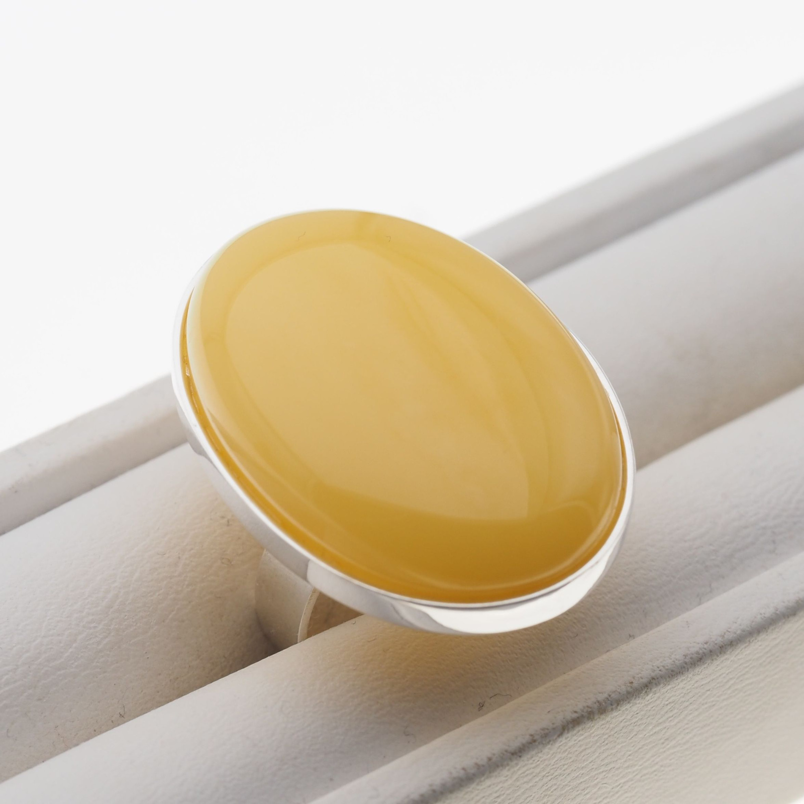 Pierścionek regulowany - Mleczny Bursztyn owal w srebrze