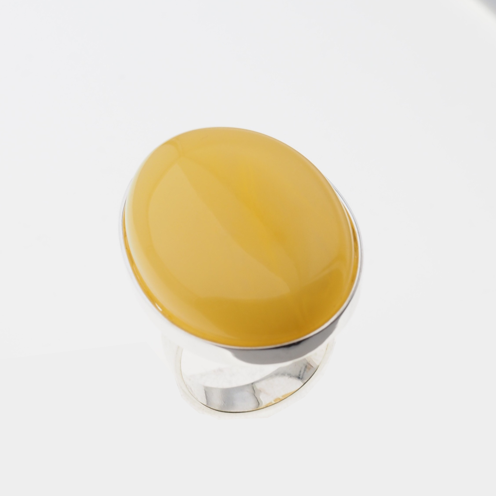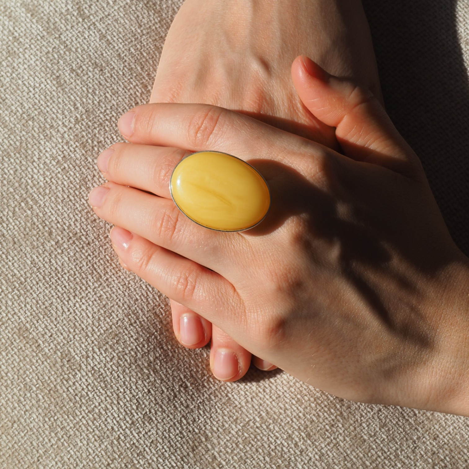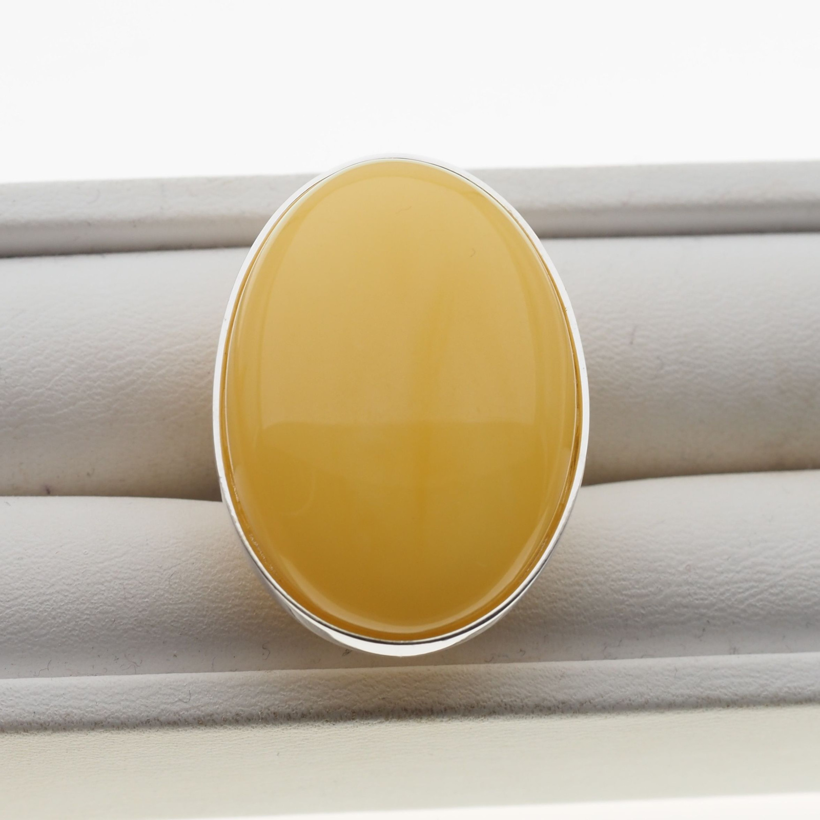 Srebrny pierścionek z mlecznym Bursztynem bałtyckim został wykonany ręcznie.