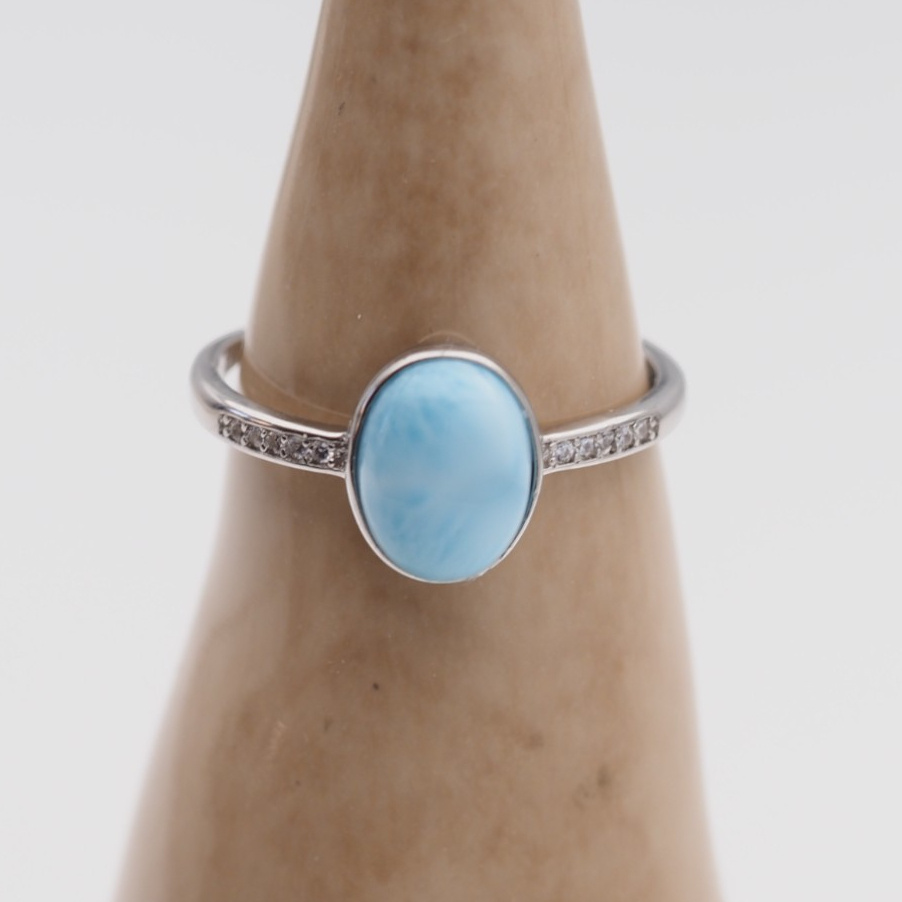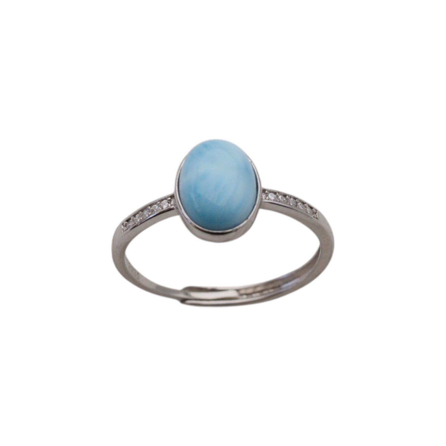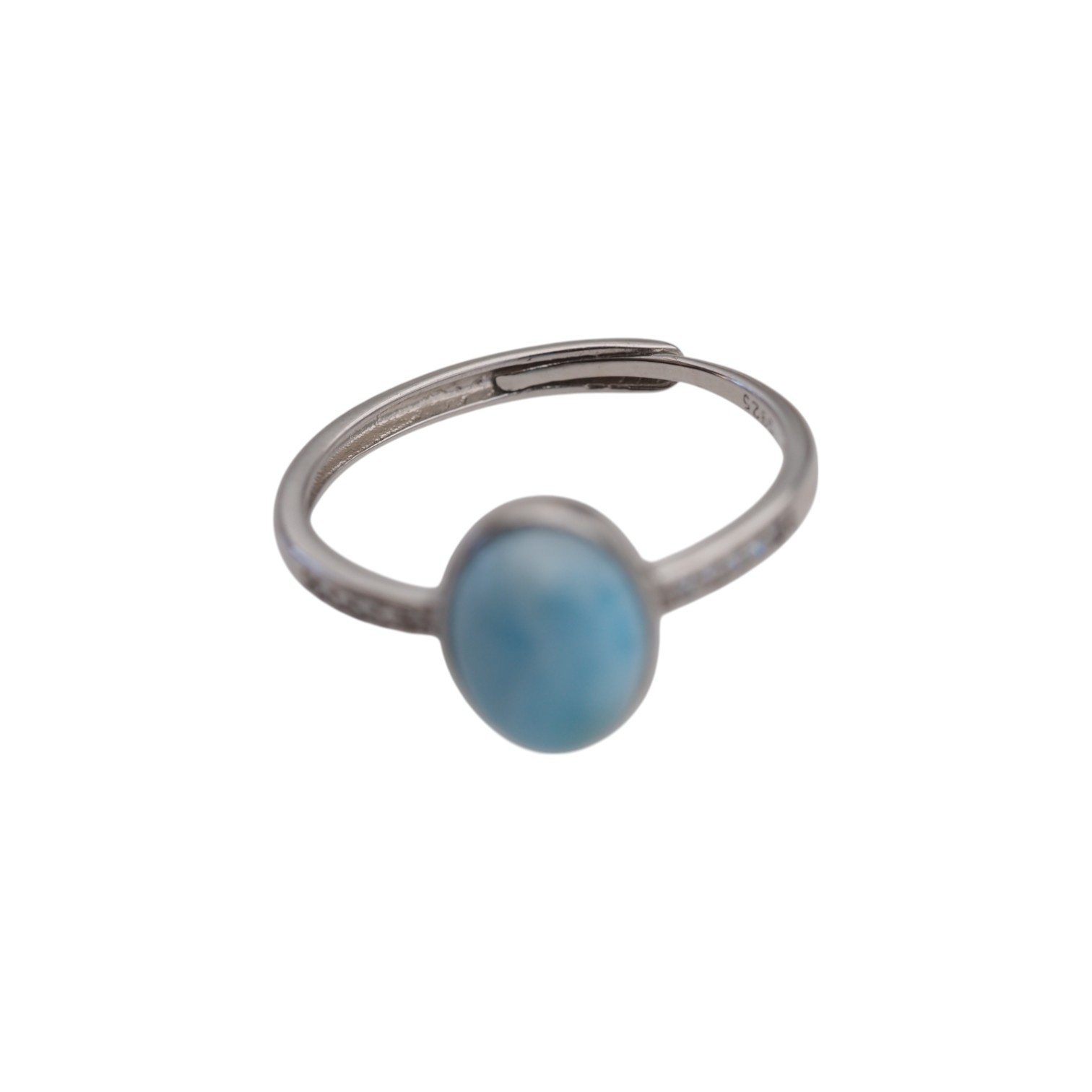 Pierścionek regulowany - owalny Larimar i cyrkonie w srebrze rodowanym