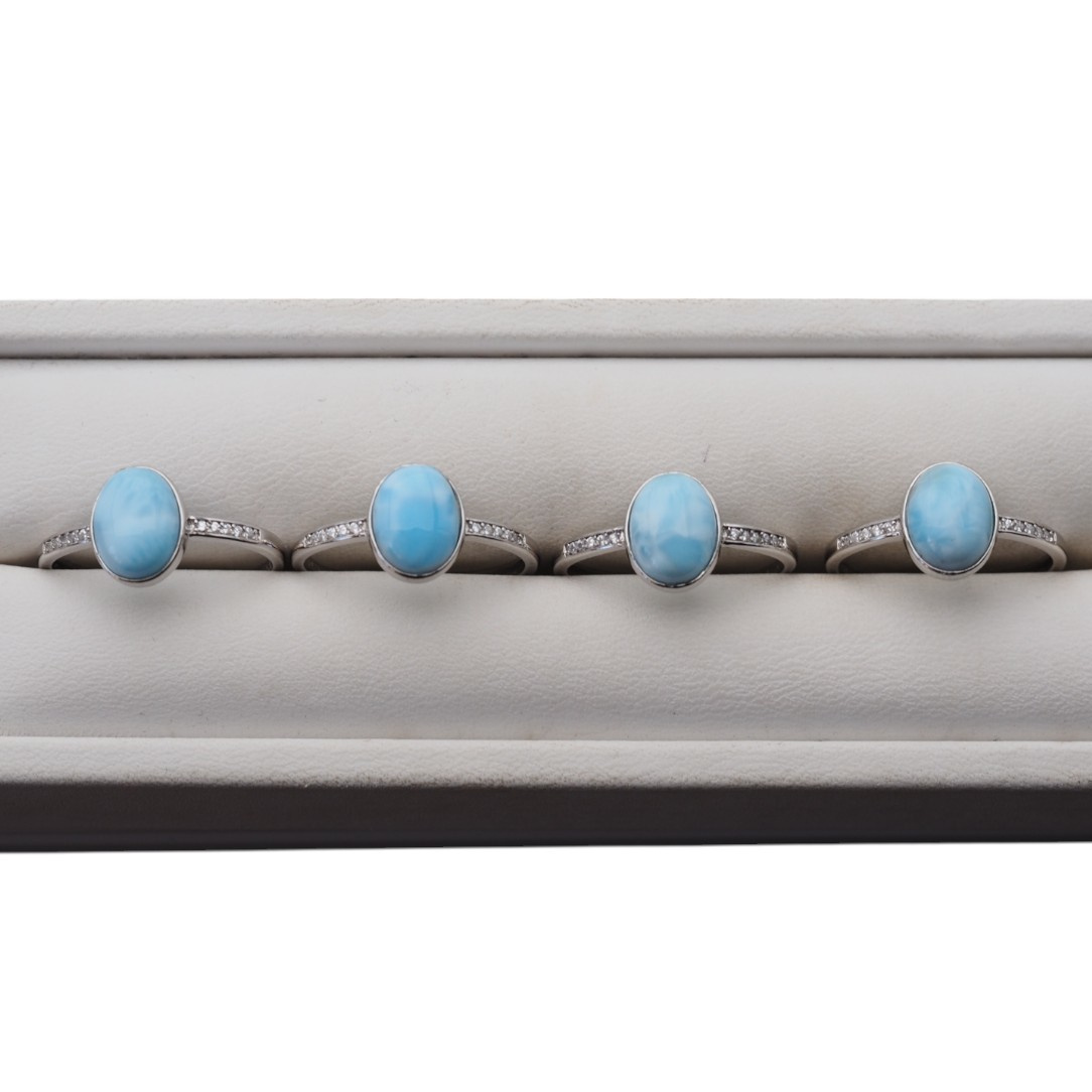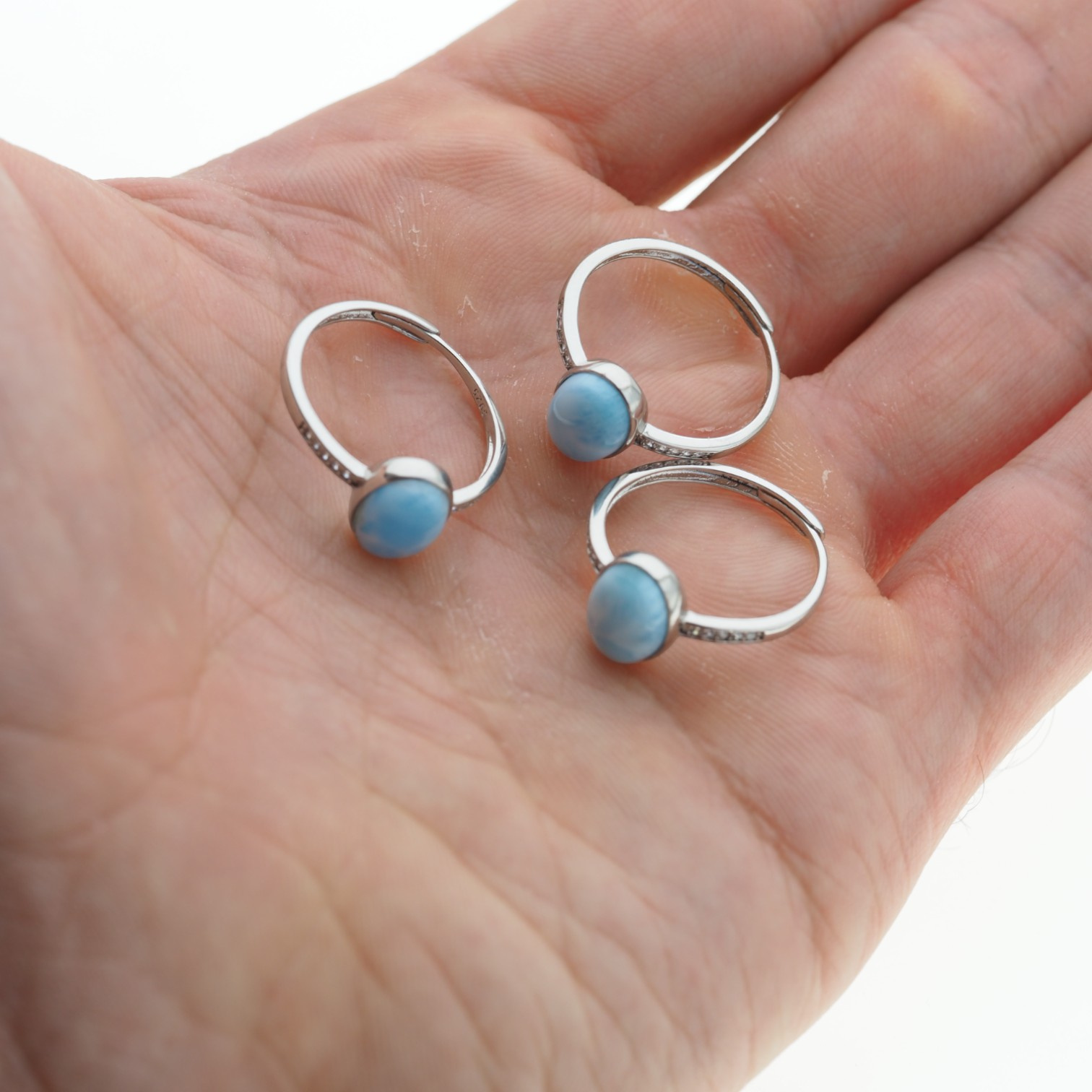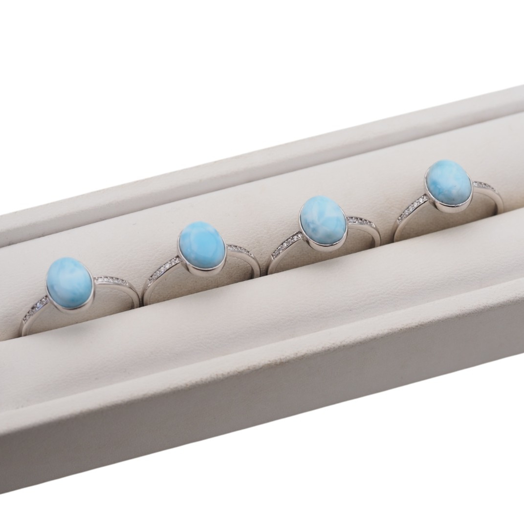 Pierścionek regulowany - owalny Larimar i cyrkonie w srebrze rodowanym