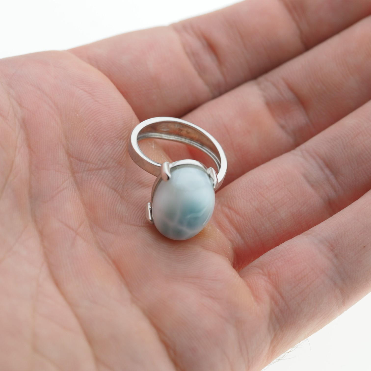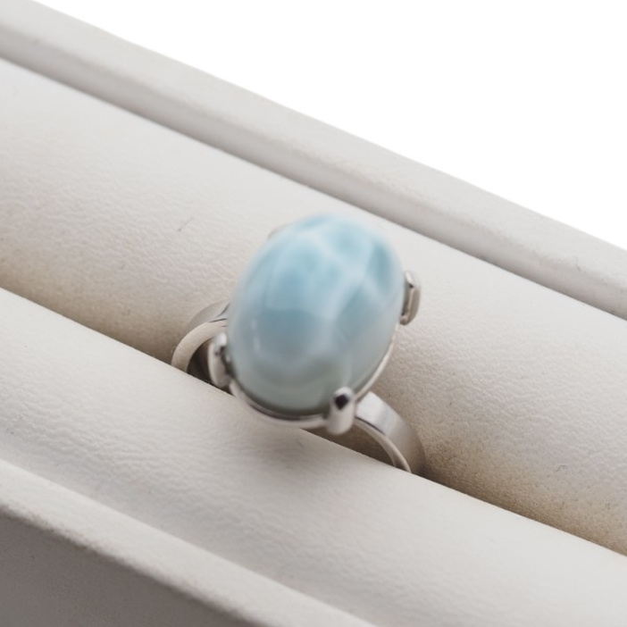 Srebrny pierścionek z Larimarem został wykonany ręcznie.