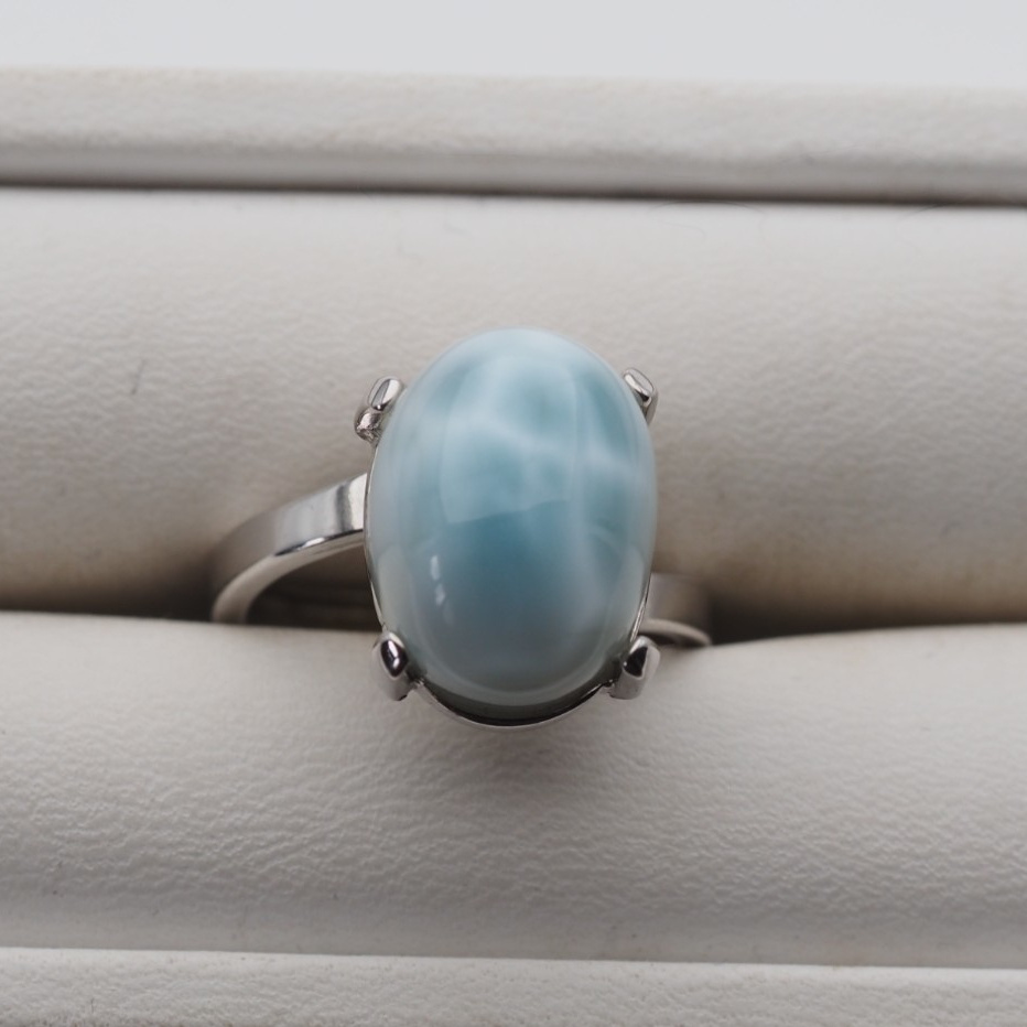 Pierścionek regulowany - owalny Larimar w srebrze rodowanym