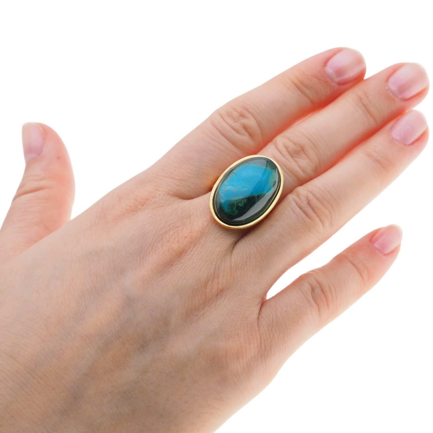 Pierścionek regulowany - Turkus z malachitem owalny w złoconym srebrze młotkowanym