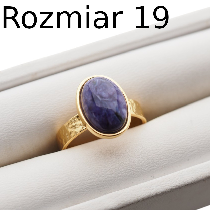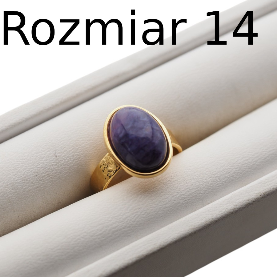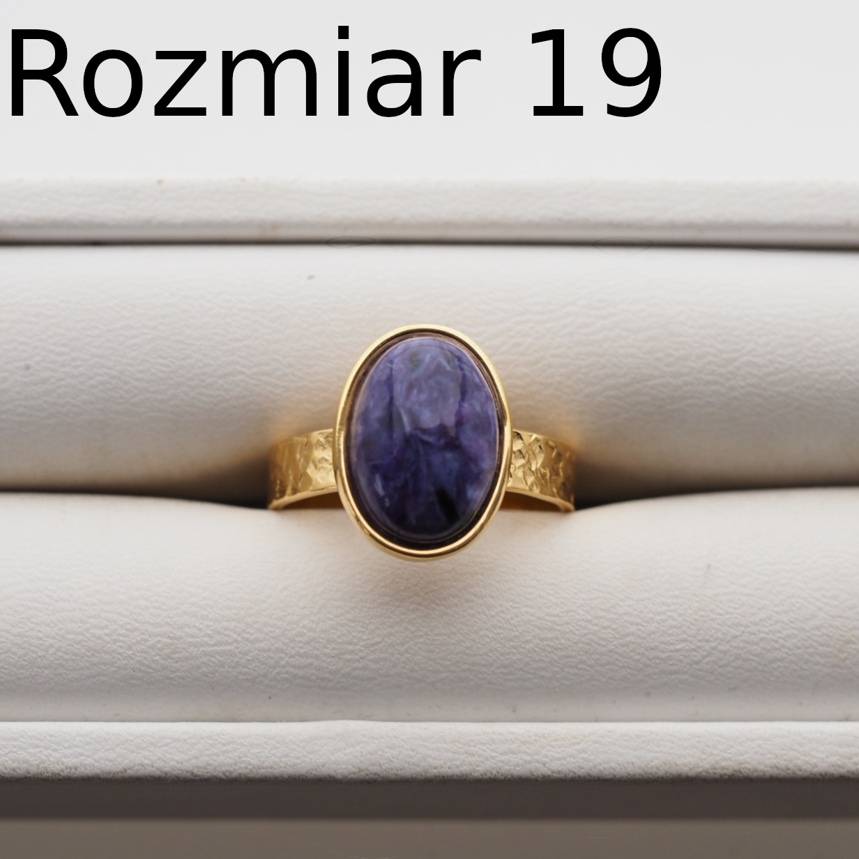 Pierścionek z Czaroitem w srebrze złoconym został zrobiony ręcznie.