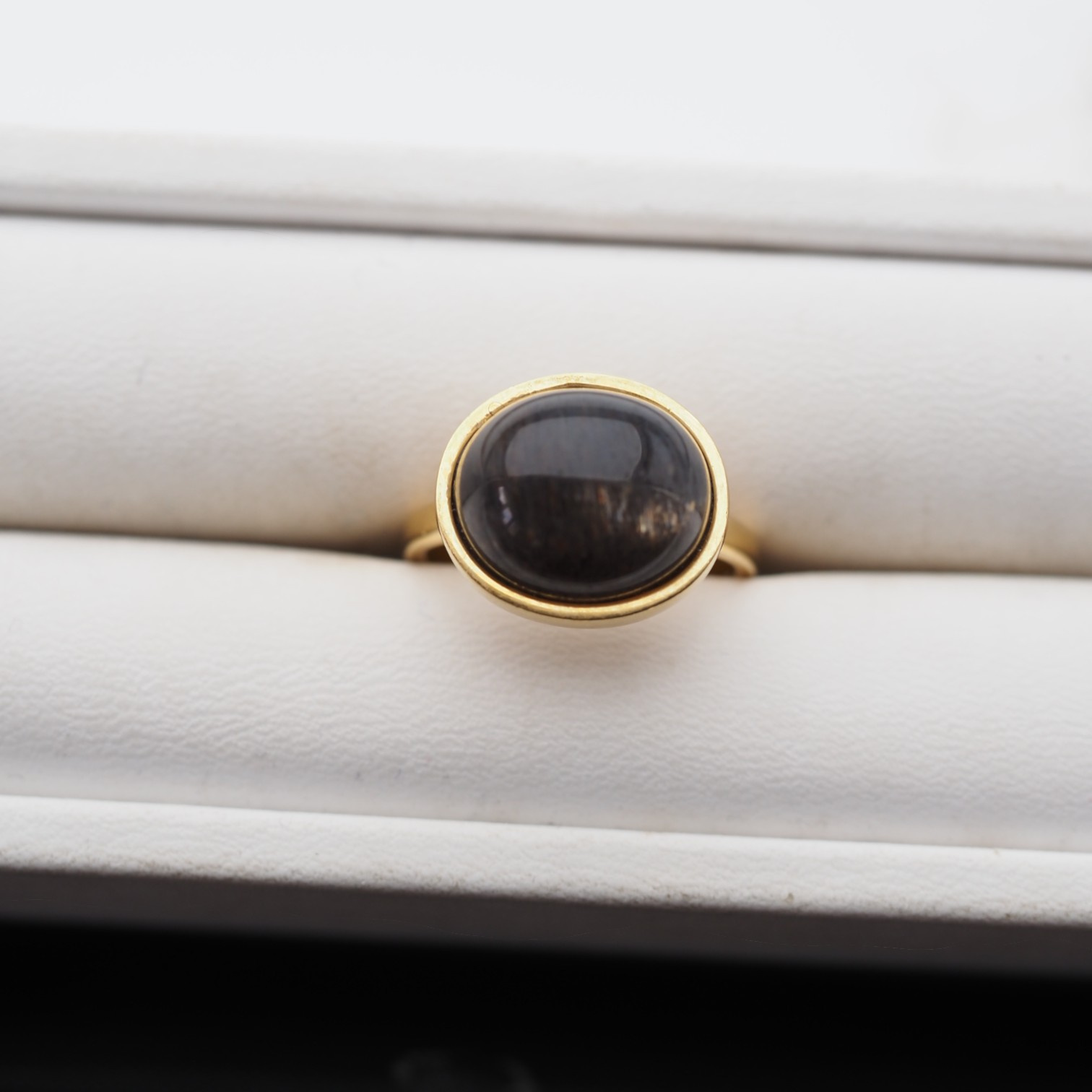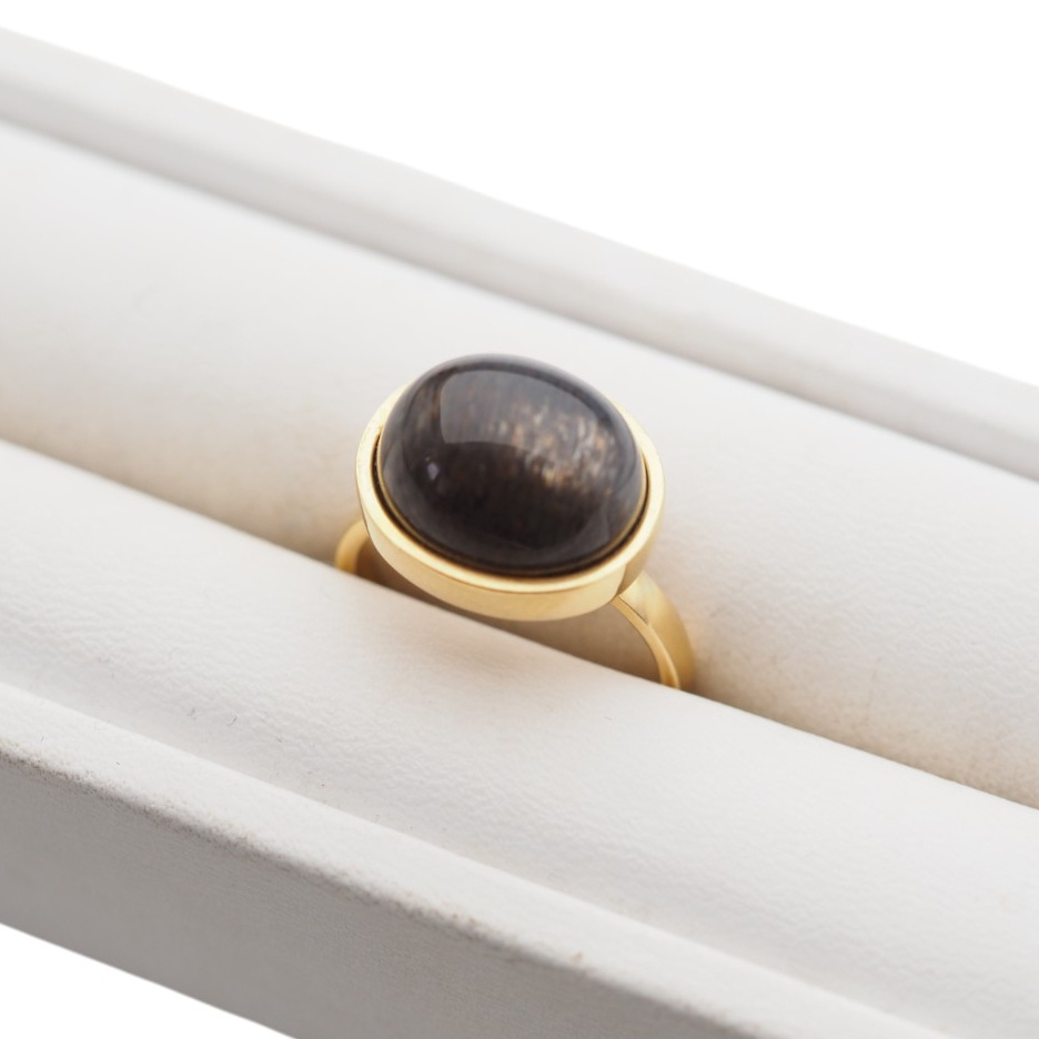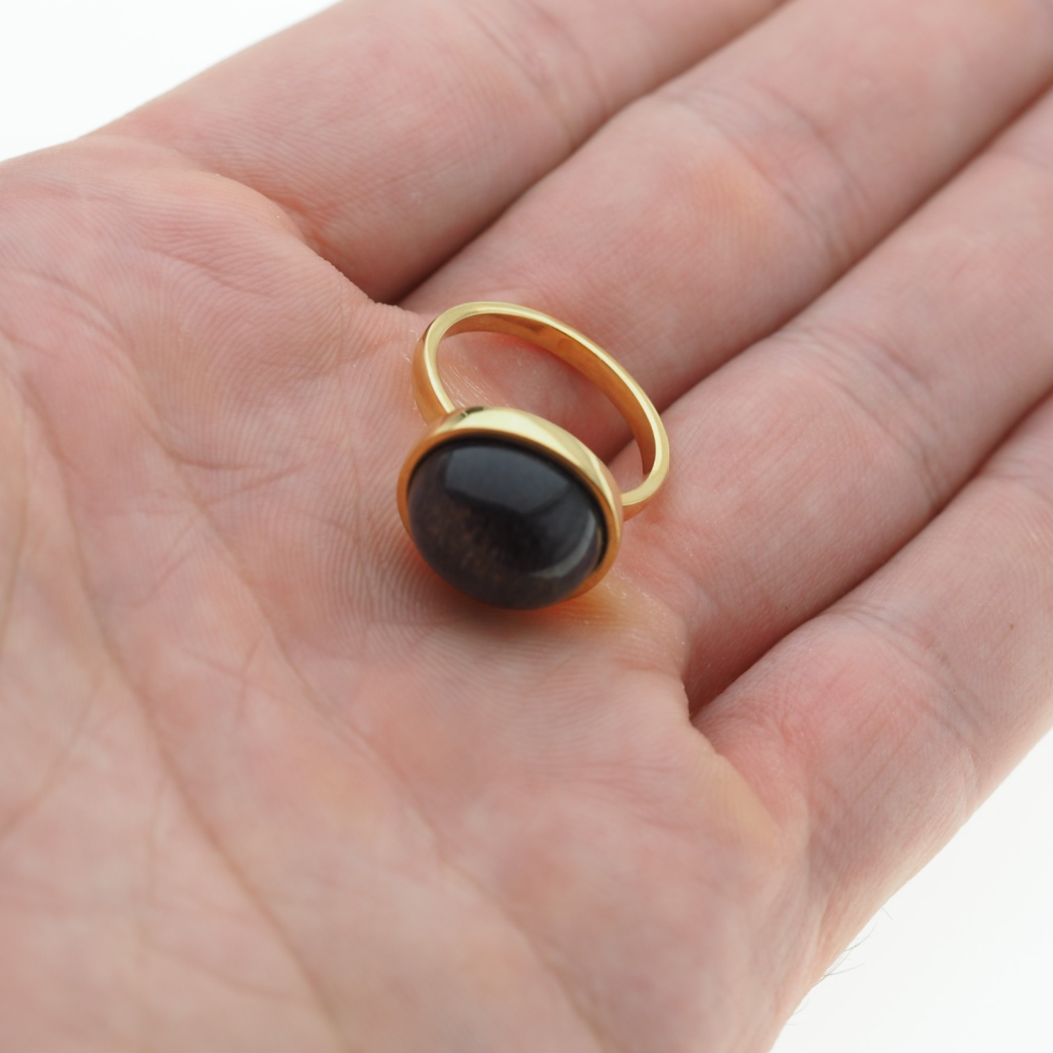 Pierścionek z owalnym Kamieniem Słonecznym w srebrze złoconym